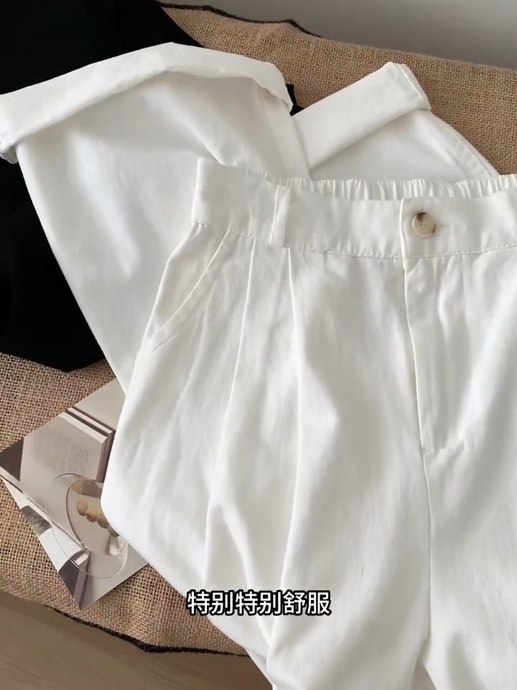 거대한 가랑이 커버 슬림 ~ 한국 패션 하이 허리 화이트 캐주얼 바지 여성 여름 디자인 감각 작은 스트레이트 와이드 다리 바지스토어 가기