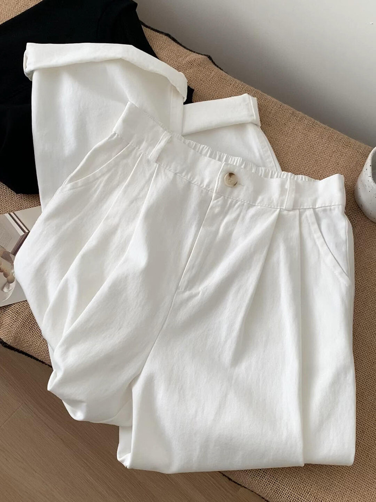 거대한 가랑이 커버 슬림 ~ 한국 패션 하이 허리 화이트 캐주얼 바지 여성 여름 디자인 감각 작은 스트레이트 와이드 다리 바지