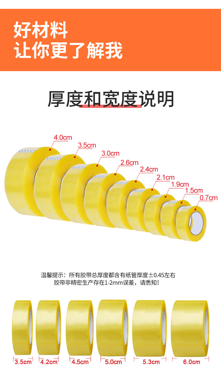 • 투명 노란색, 폭 4.3cm*2.4 [48롤 한 박스] 길이 130