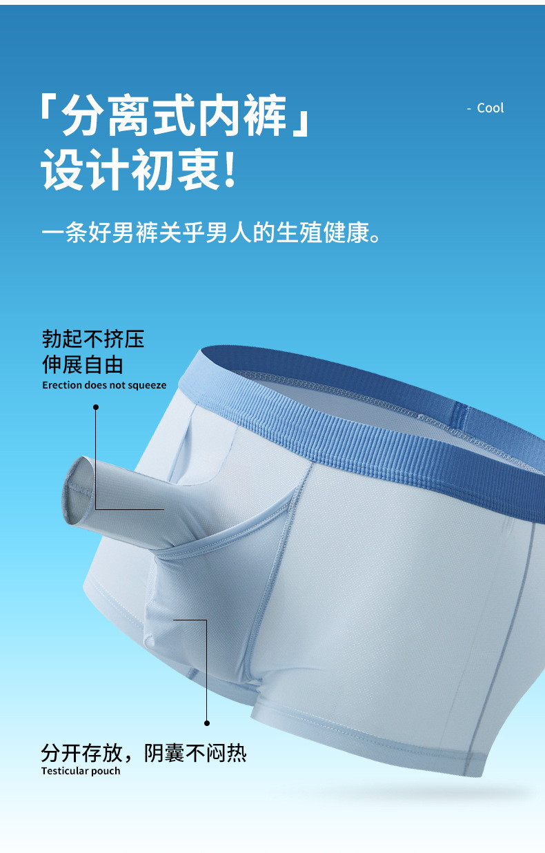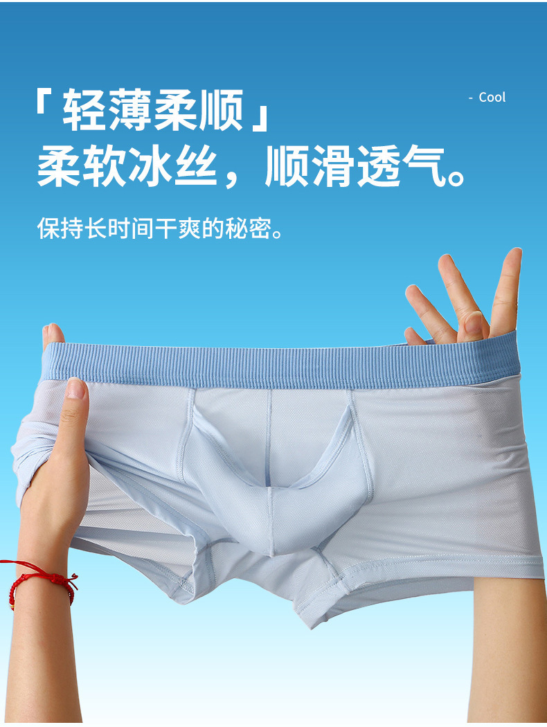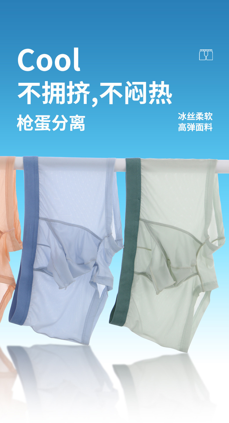 속옷 남자의 여름 얼음 실크 메쉬 얇은 통기성 총 달걀 분리 오프닝 섹시한 소년 복서 속옷 도매스토어 가기