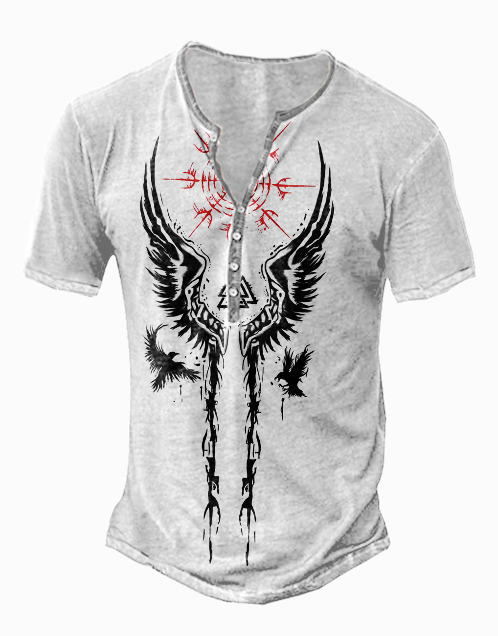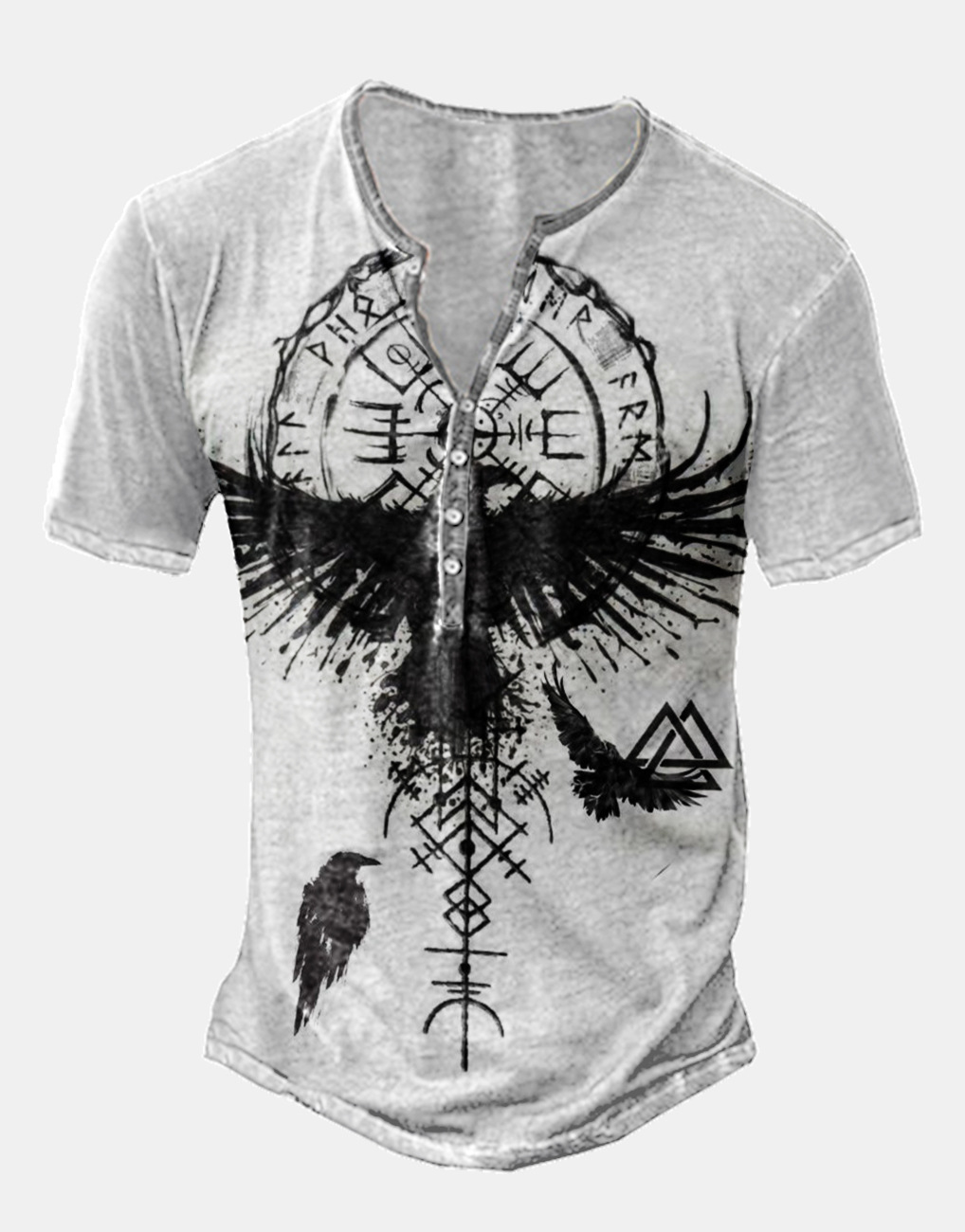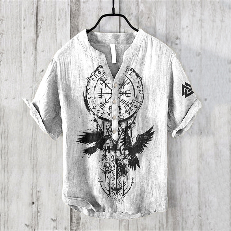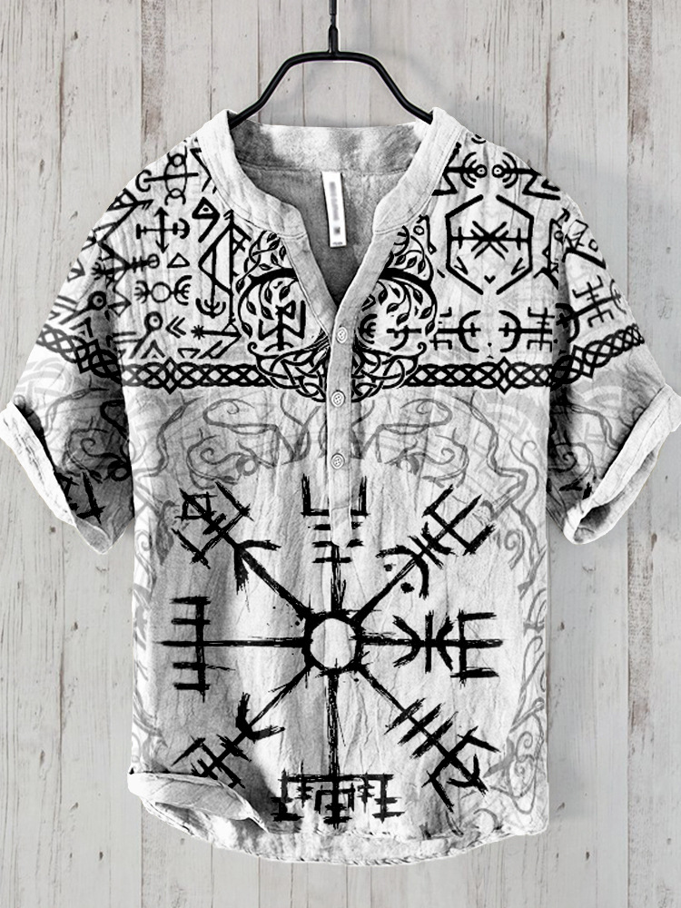 24 여름 유럽과 미국의 국경 독립 역 남성 디지털 인쇄 5 버튼 헨리 셔츠 반팔 크루 넥 캐주얼 플러스 사이즈 T