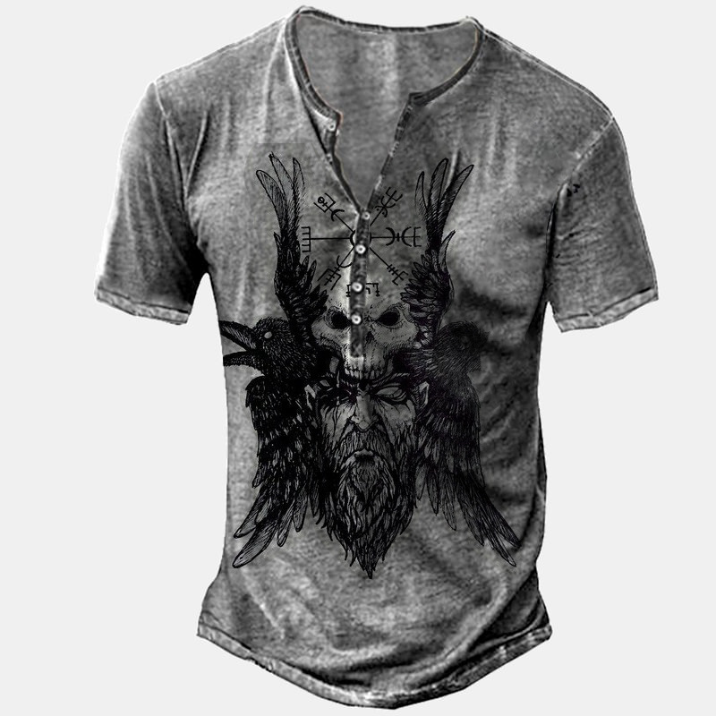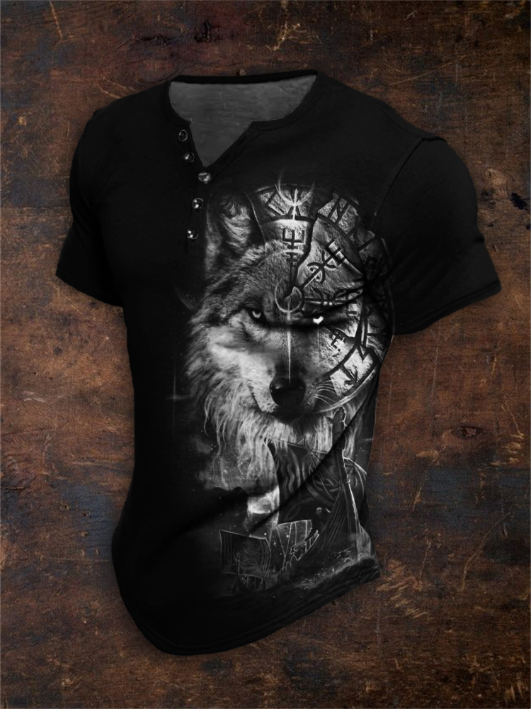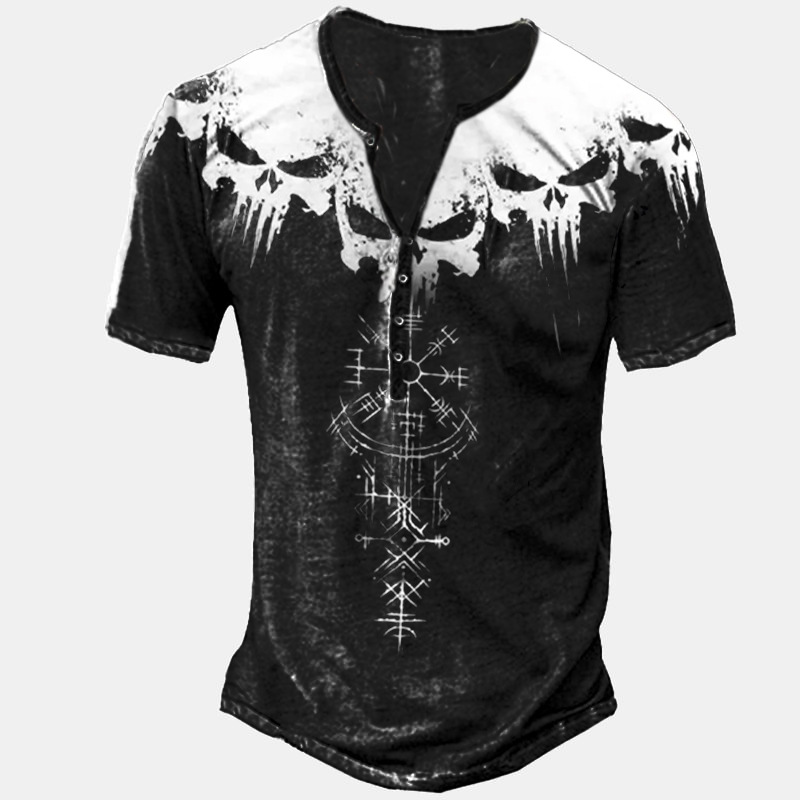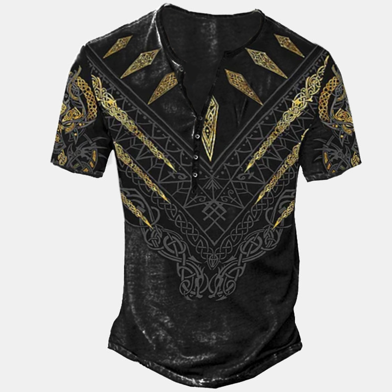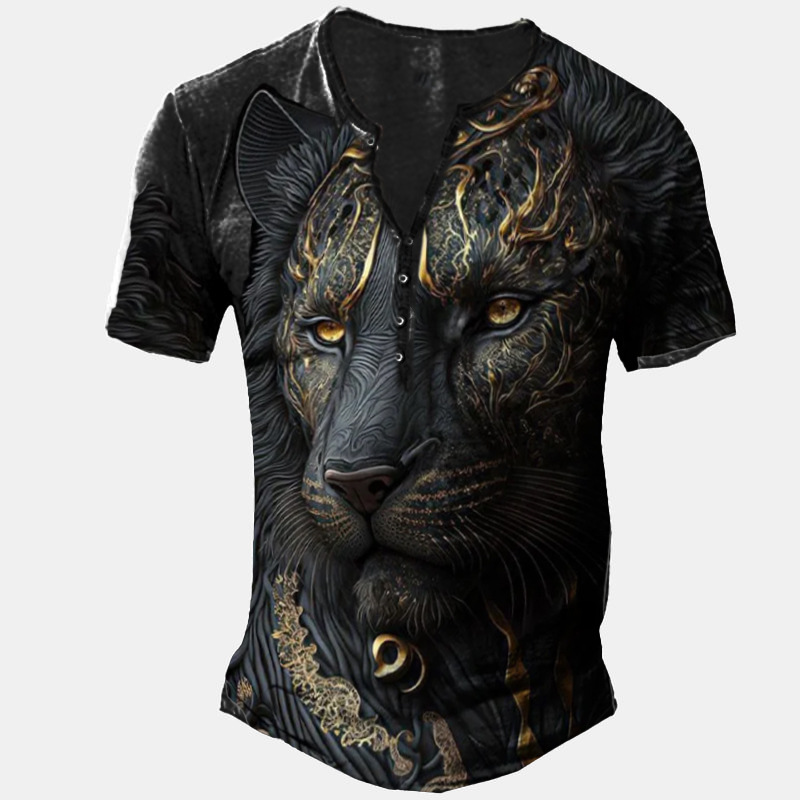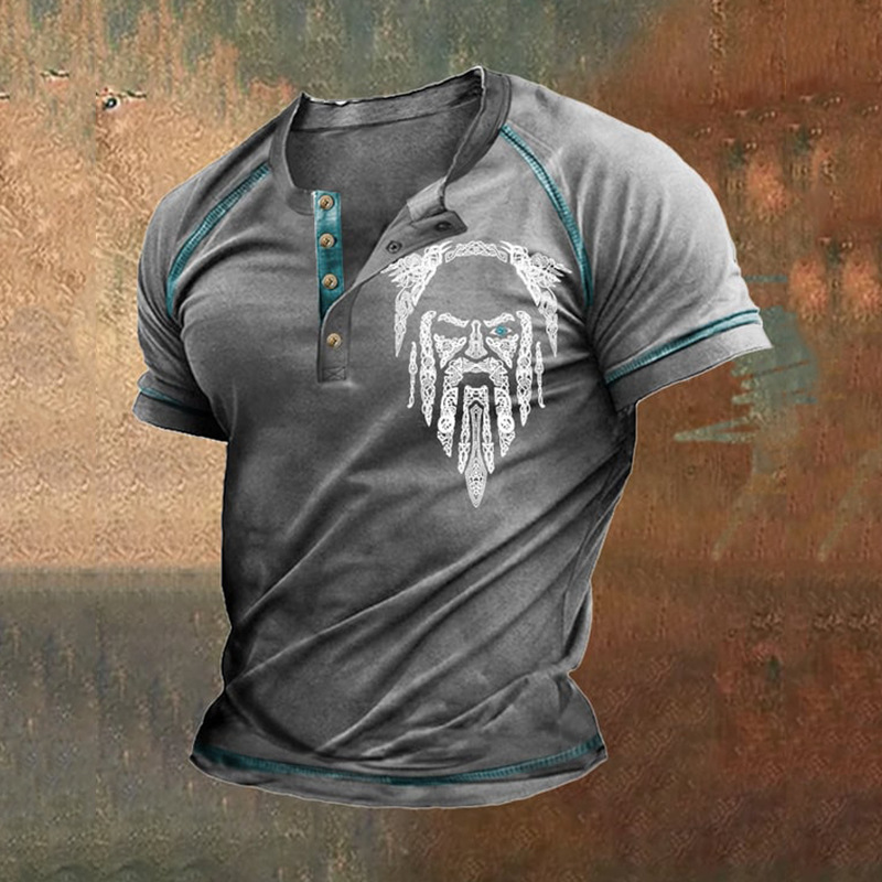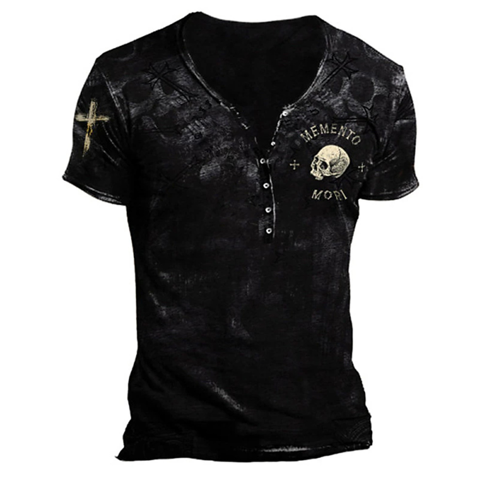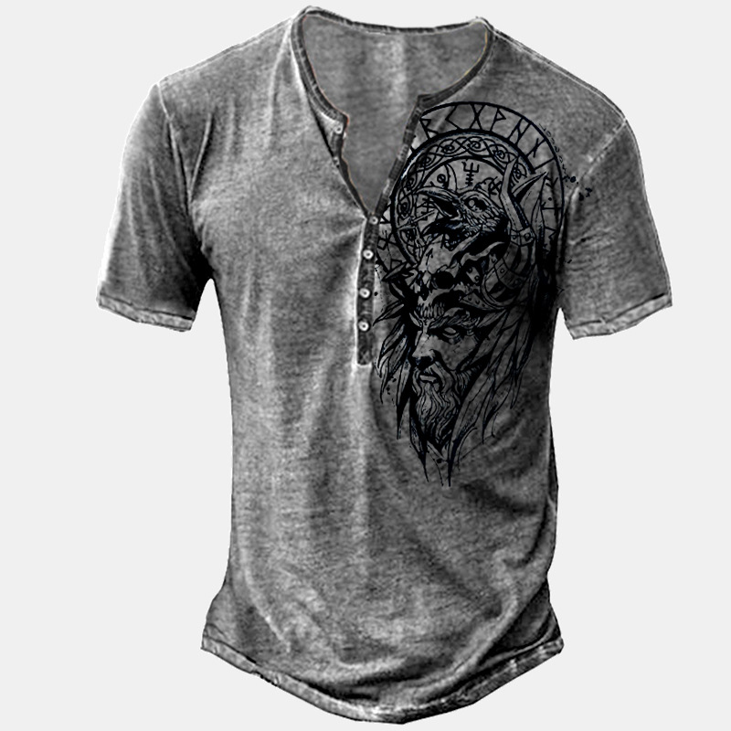 24 여름 유럽과 미국의 국경 독립 역 남성 디지털 인쇄 5 버튼 헨리 셔츠 반팔 크루 넥 캐주얼 플러스 사이즈 T스토어 가기