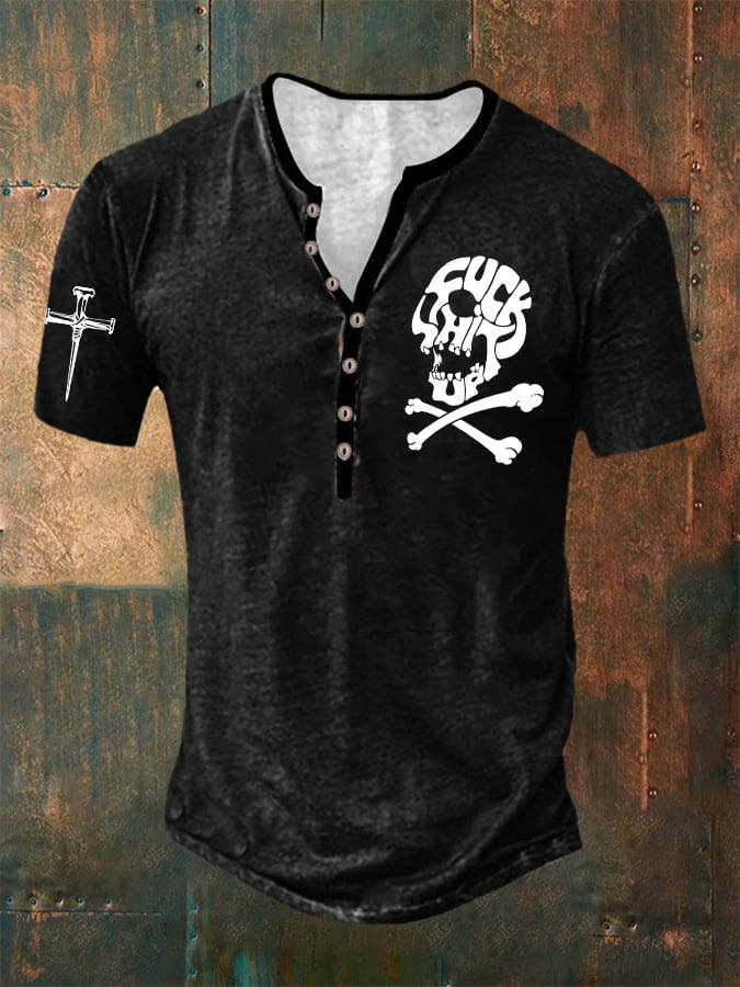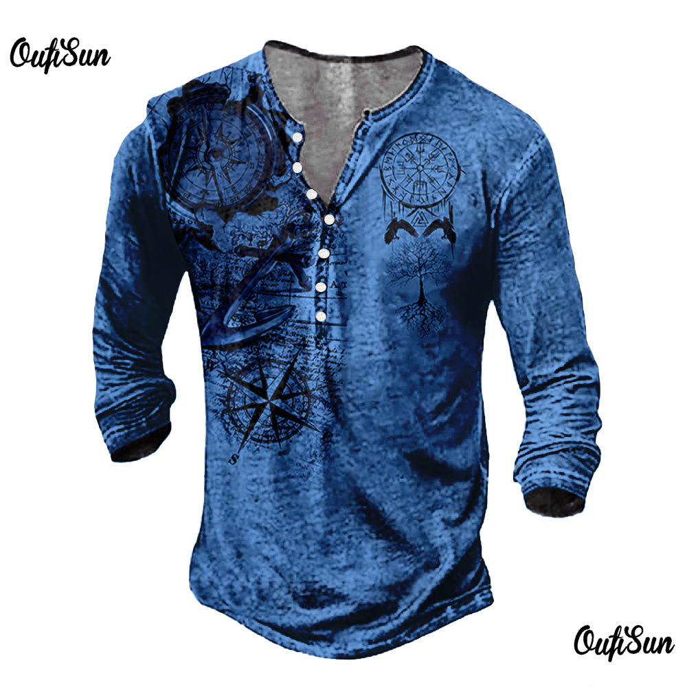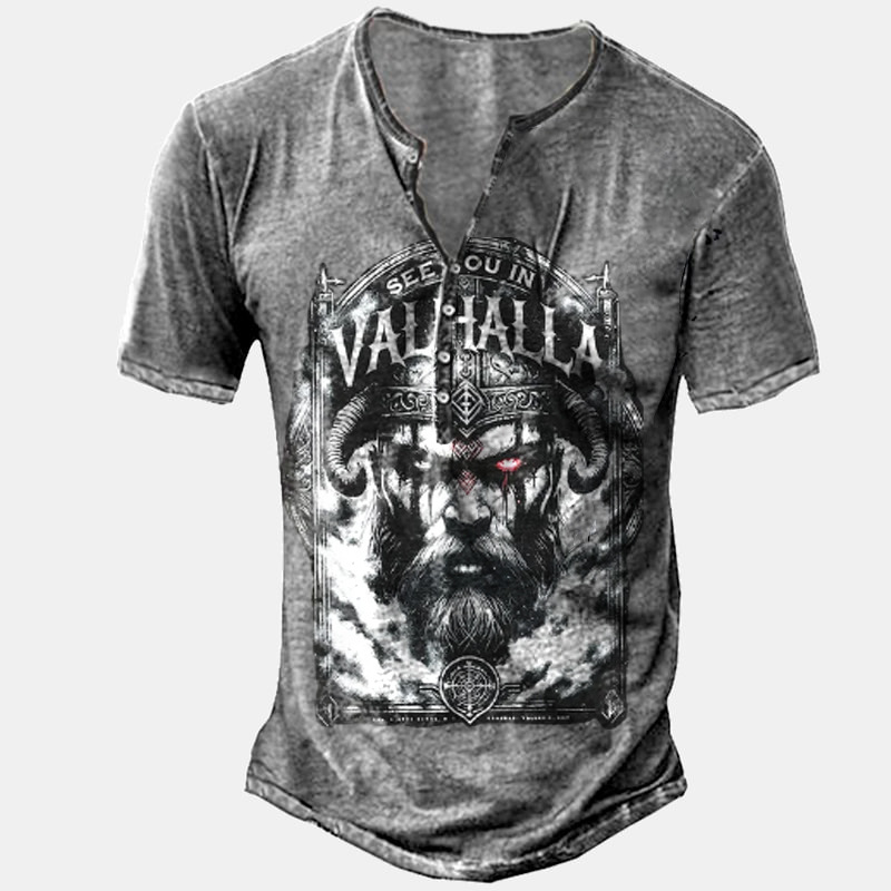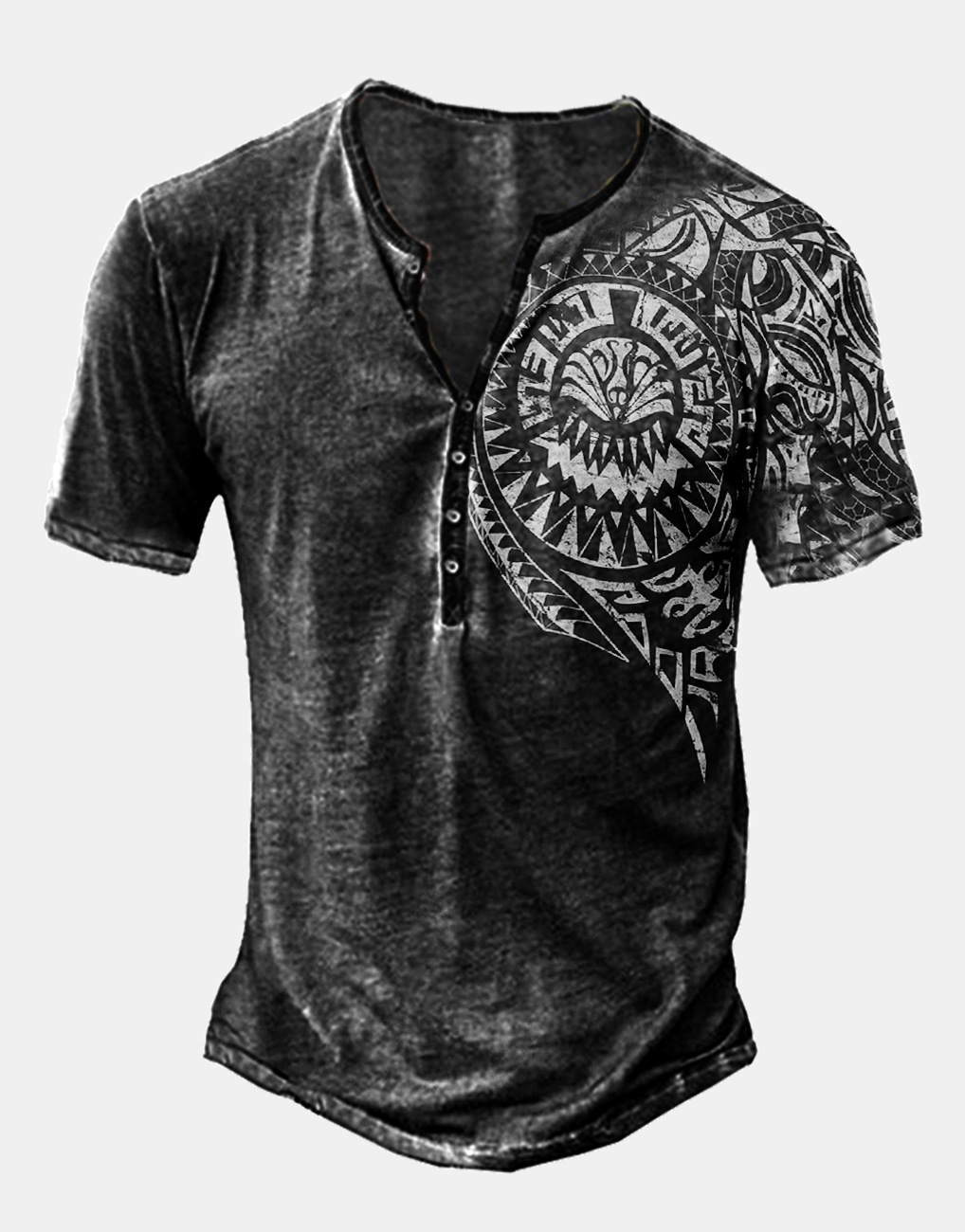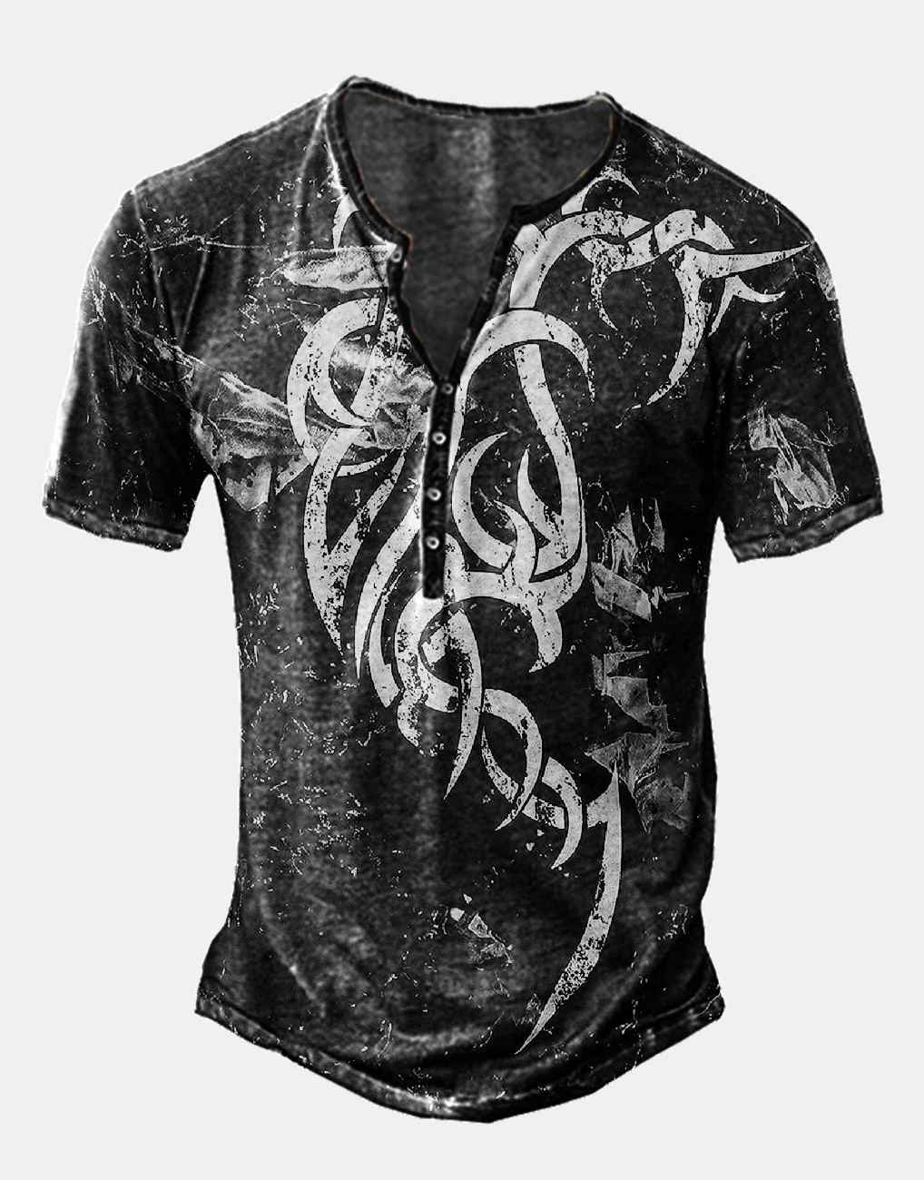 24 여름 유럽과 미국의 국경 독립 역 남성 디지털 인쇄 5 버튼 헨리 셔츠 반팔 크루 넥 캐주얼 플러스 사이즈 T스토어 가기