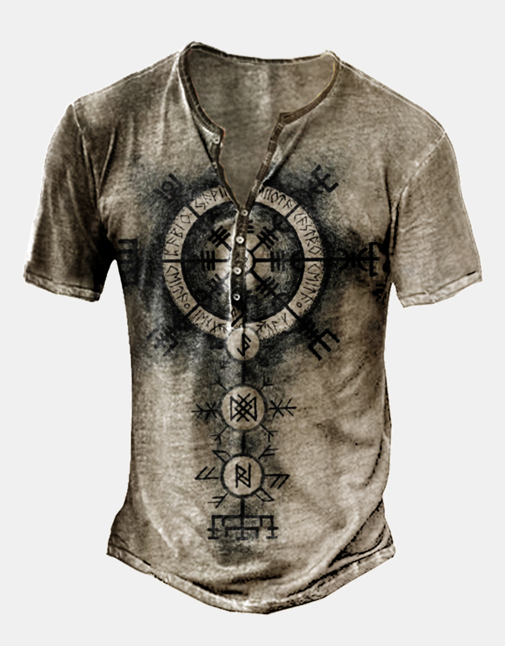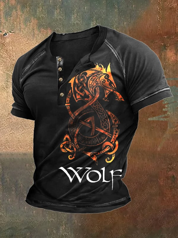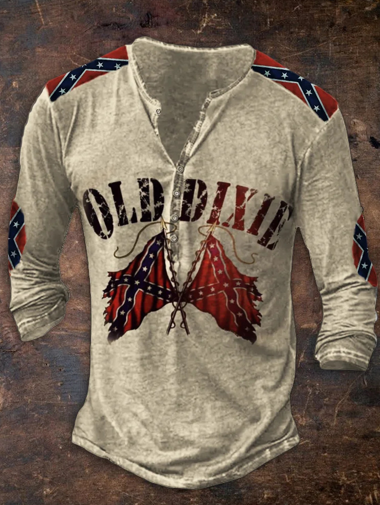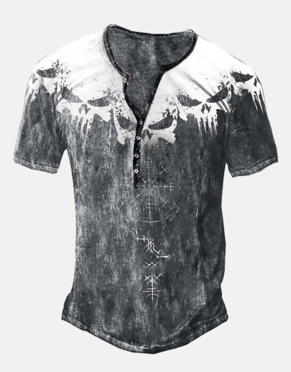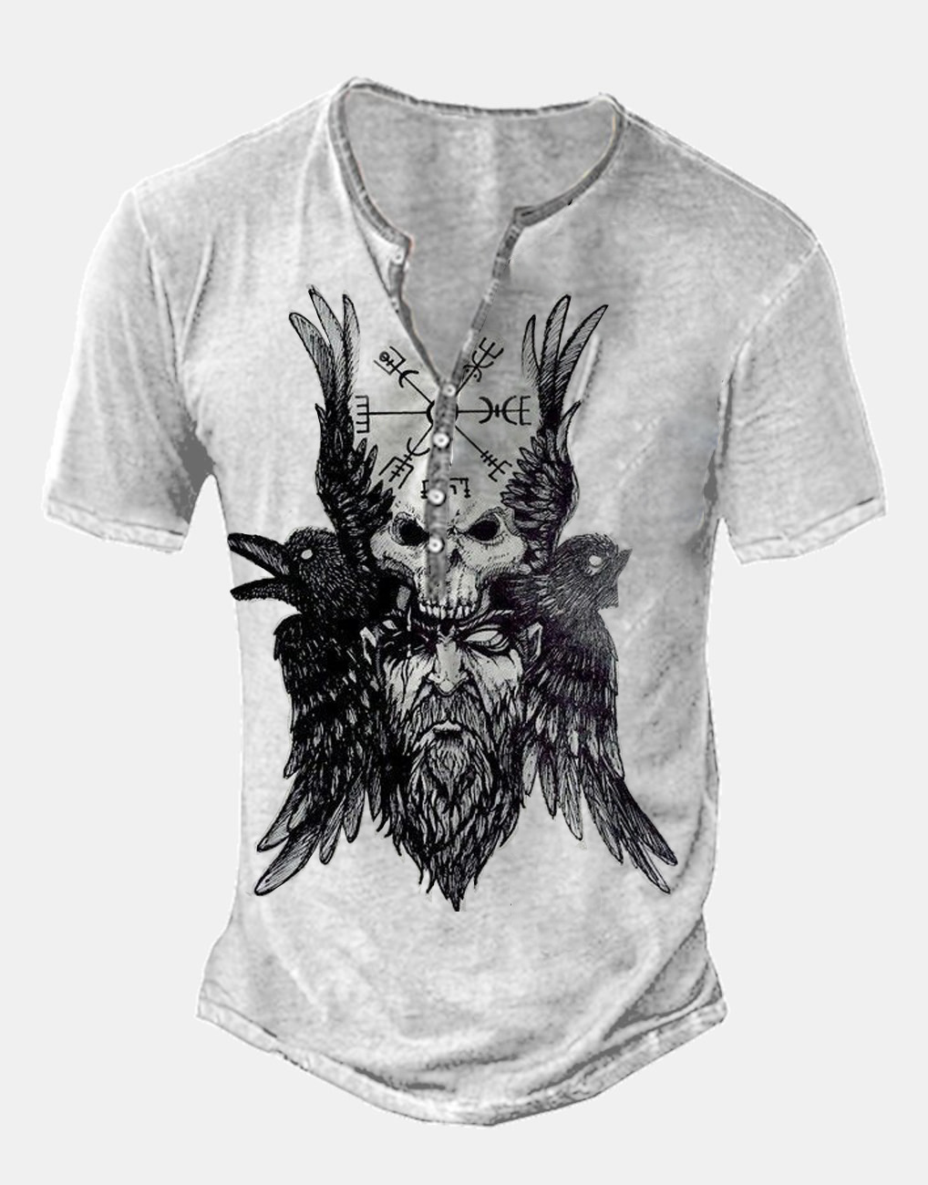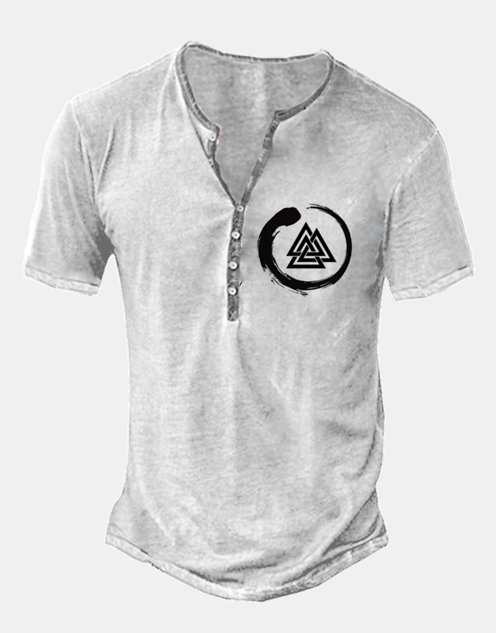 24 여름 유럽과 미국의 국경 독립 역 남성 디지털 인쇄 5 버튼 헨리 셔츠 반팔 크루 넥 캐주얼 플러스 사이즈 T스토어 가기