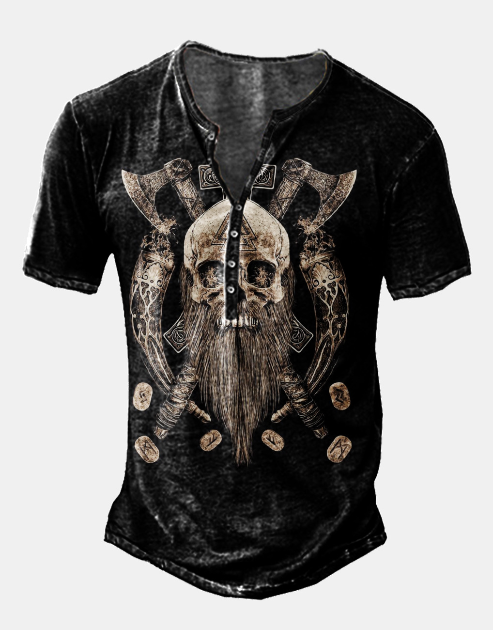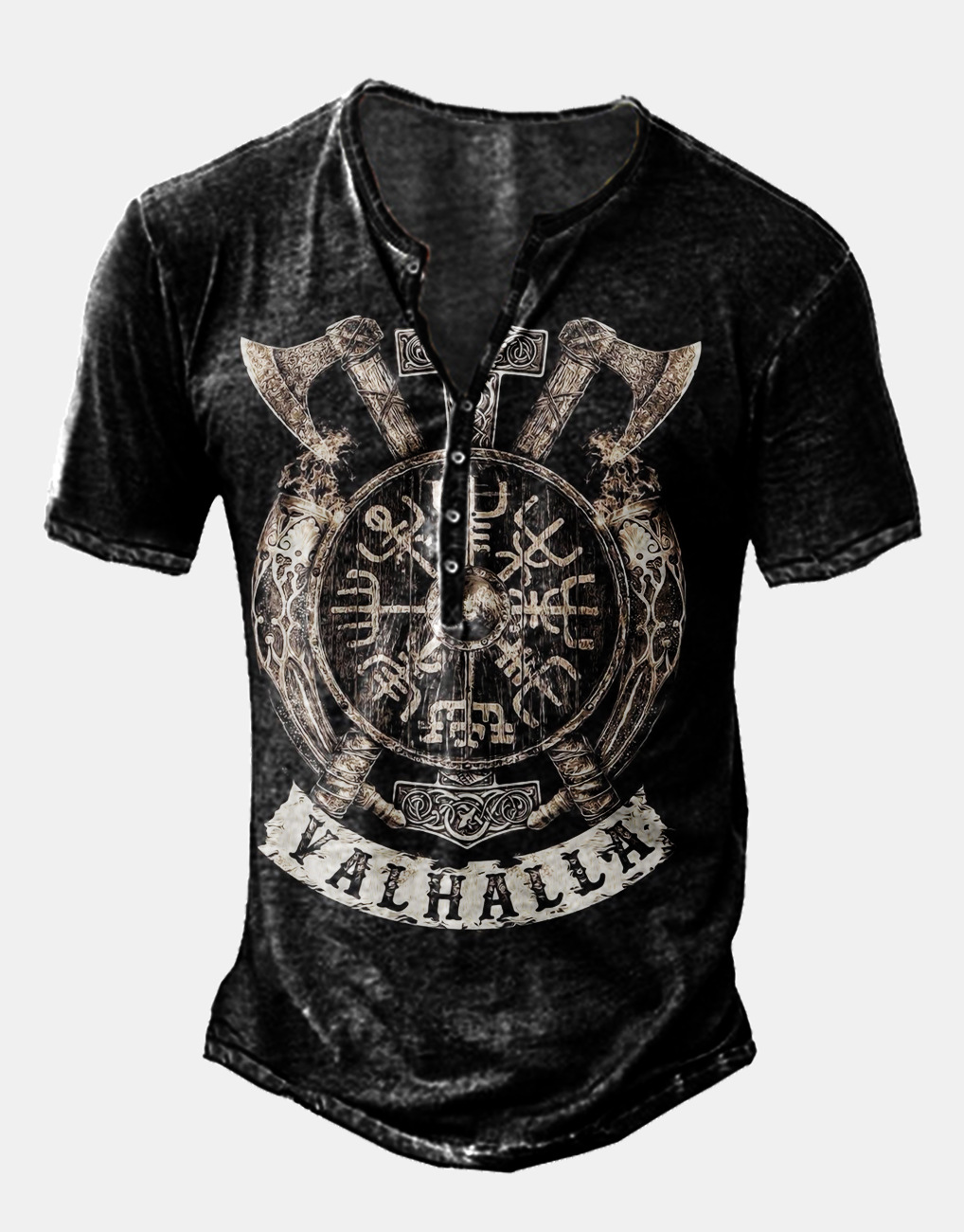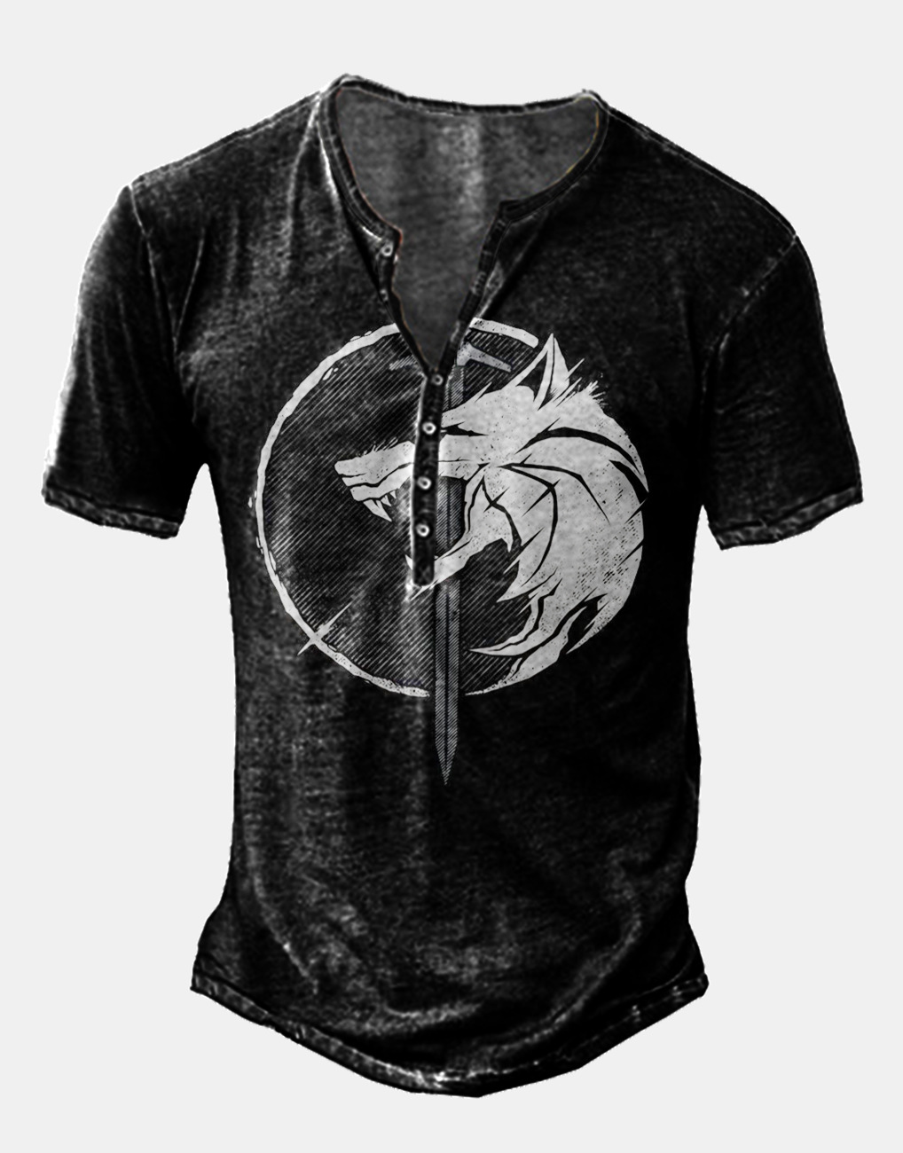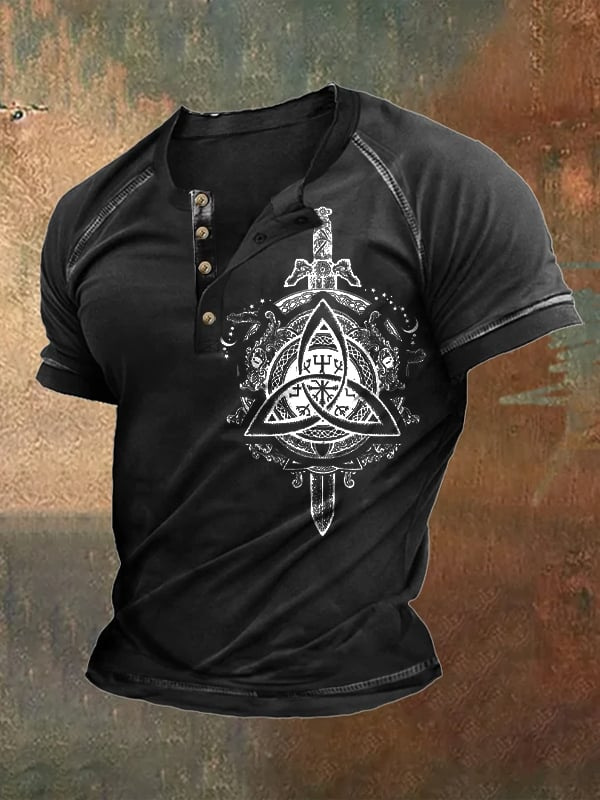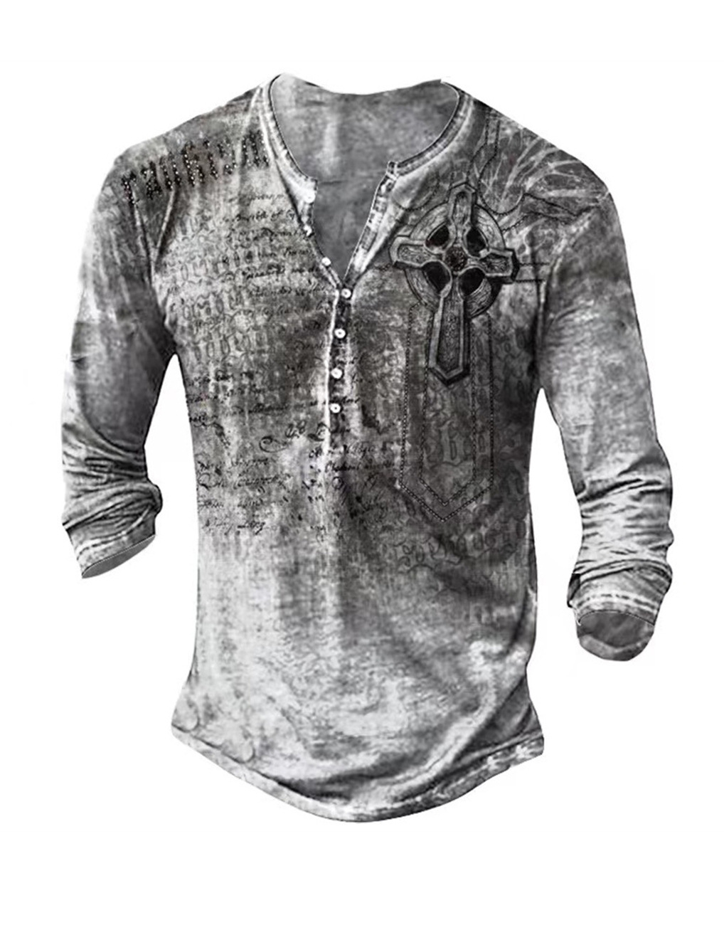 24 여름 유럽과 미국의 국경 독립 역 남성 디지털 인쇄 5 버튼 헨리 셔츠 반팔 크루 넥 캐주얼 플러스 사이즈 T스토어 가기