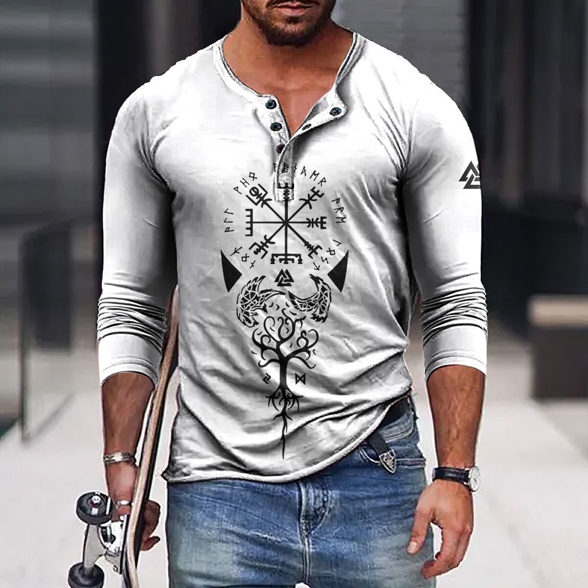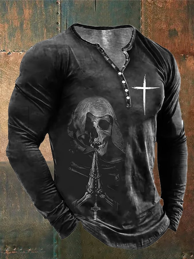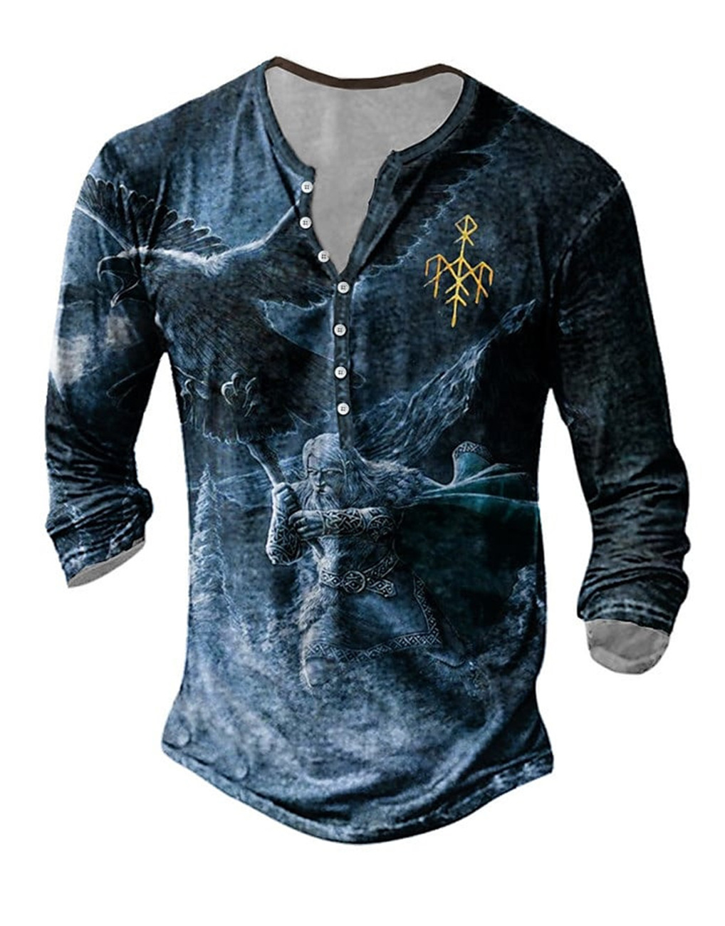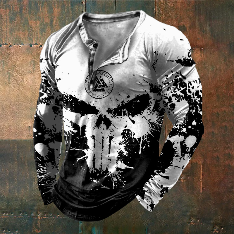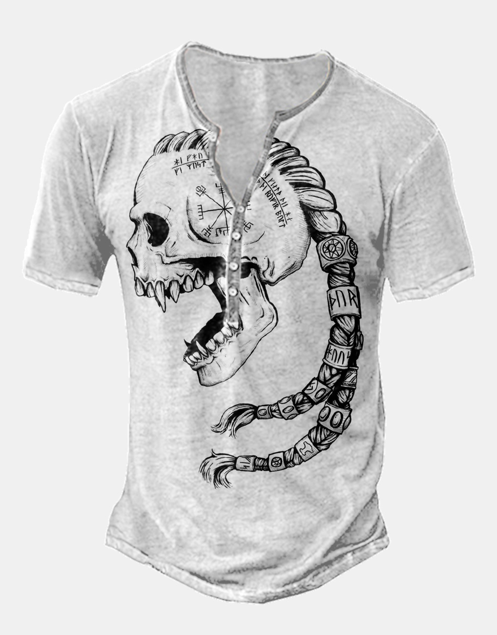 24 여름 유럽과 미국의 국경 독립 역 남성 디지털 인쇄 5 버튼 헨리 셔츠 반팔 크루 넥 캐주얼 플러스 사이즈 T스토어 가기