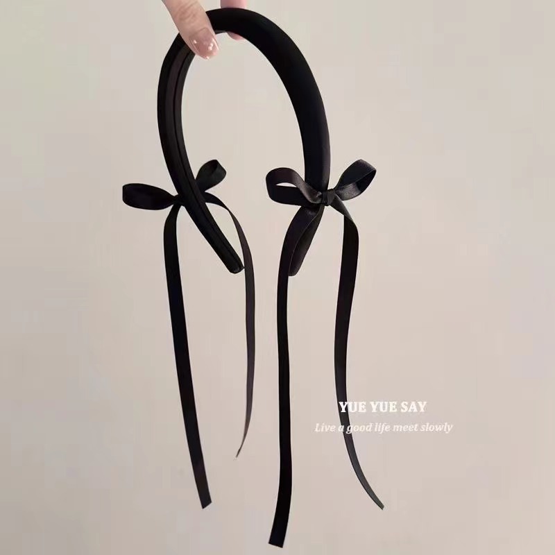 리즈 디너 하이 센스 블랙 양자 활 리본 머리띠 우아한 프랑스 스타일 하이 크랜얼 탑 머리띠스토어 가기