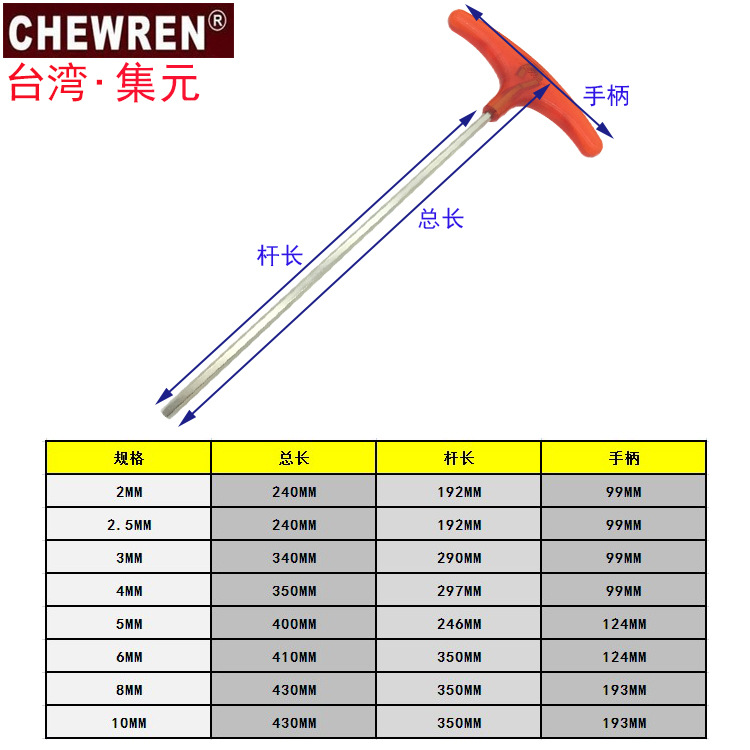 대만 Jiyuan 길어진 T 핸들 Allen 렌치 수입 T 자형 내부 육각형 스크루 드라이버 2.5 3 4 5 6 8mm스토어 가기
