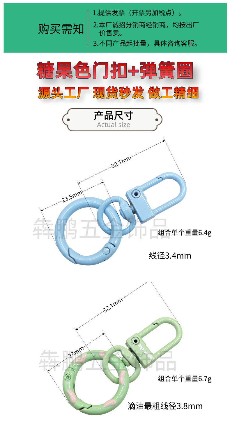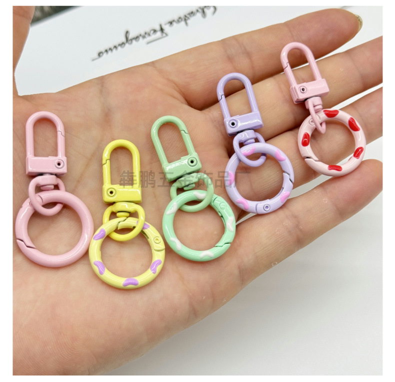 컬러 페인트 스프링 링 플러스 도어 버클 조합 캔디 컬러 키 링 개 버클 DIY 쥬얼리 액세서리 인형 펜던트스토어 가기