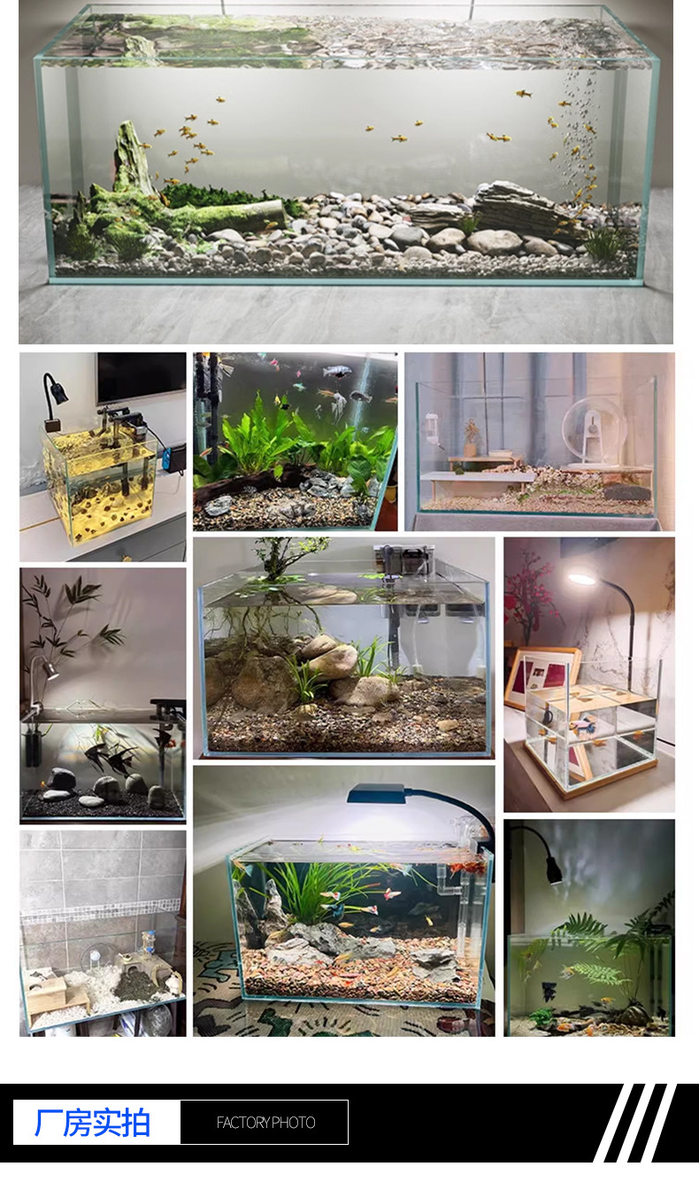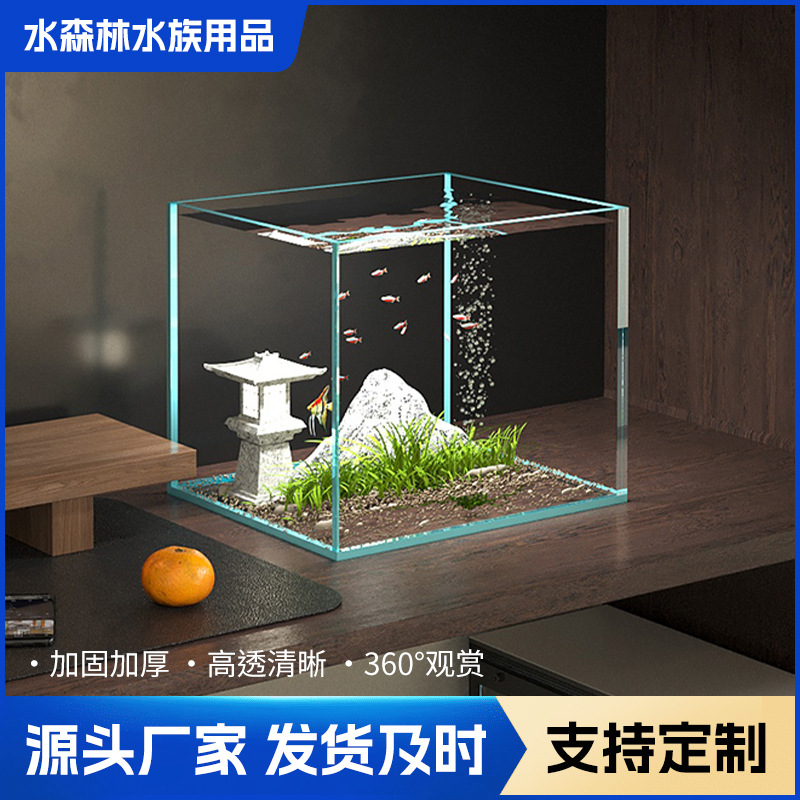 오피스 호텔 로비 전망 물고기 탱크 황금 크리스탈 슈퍼 화이트 유리 물고기 탱크 데스크탑 생태 물고기 유리 탱크스토어 가기