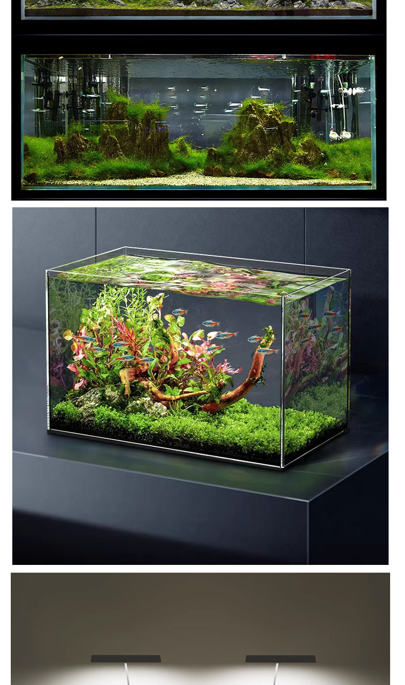 오피스 호텔 로비 전망 물고기 탱크 황금 크리스탈 슈퍼 화이트 유리 물고기 탱크 데스크탑 생태 물고기 유리 탱크