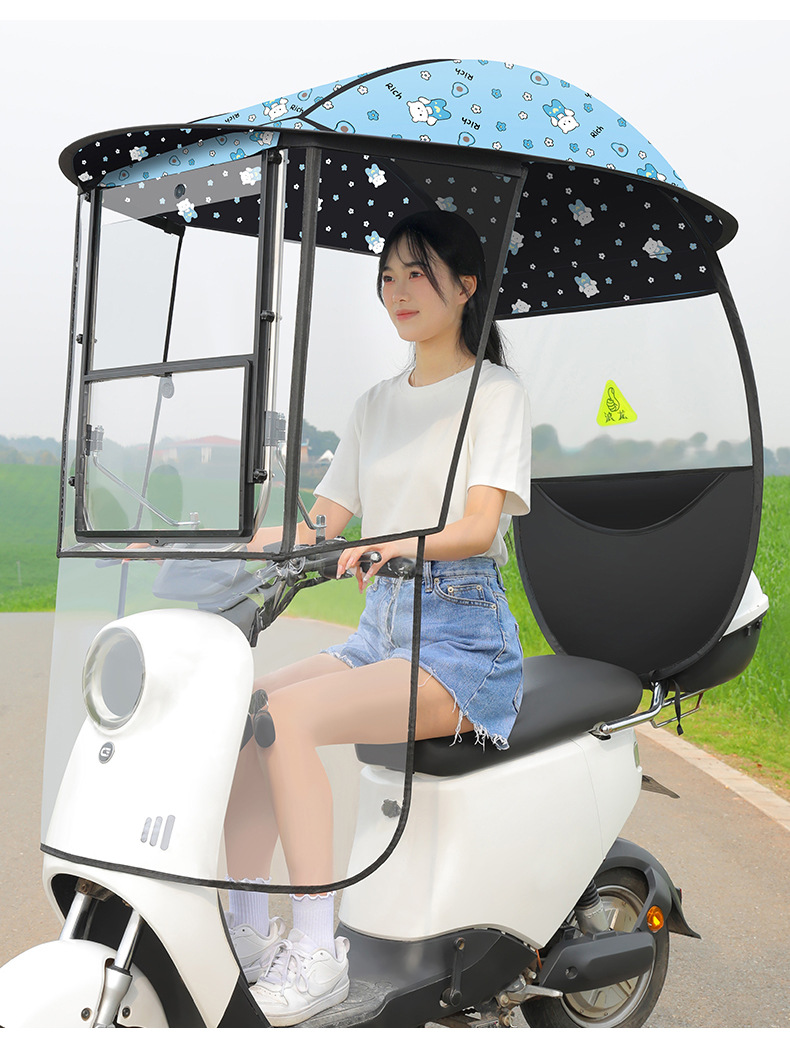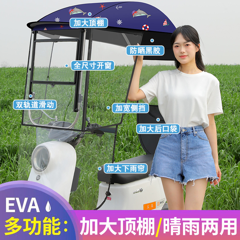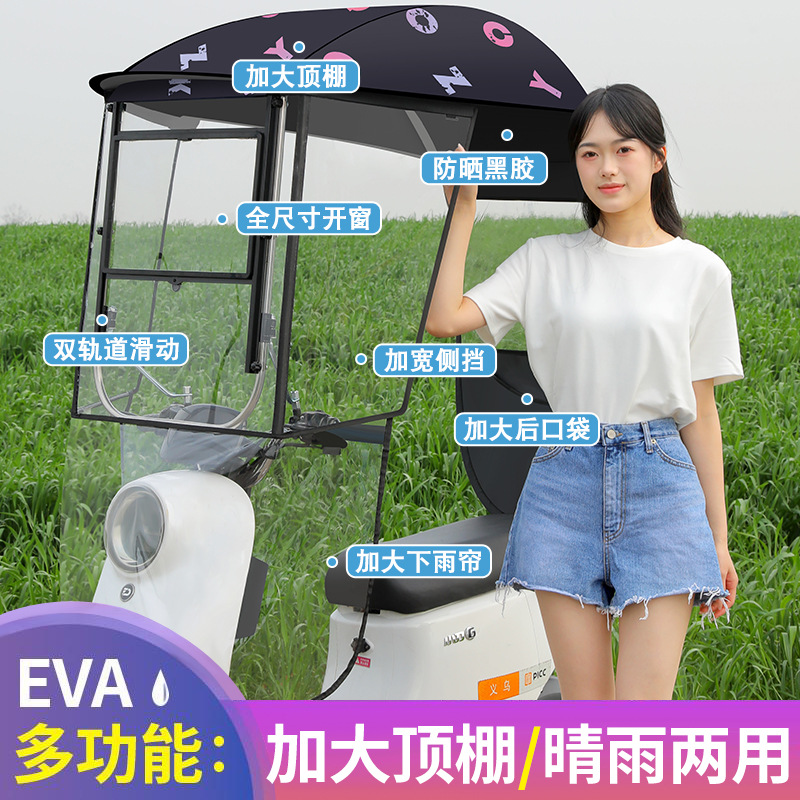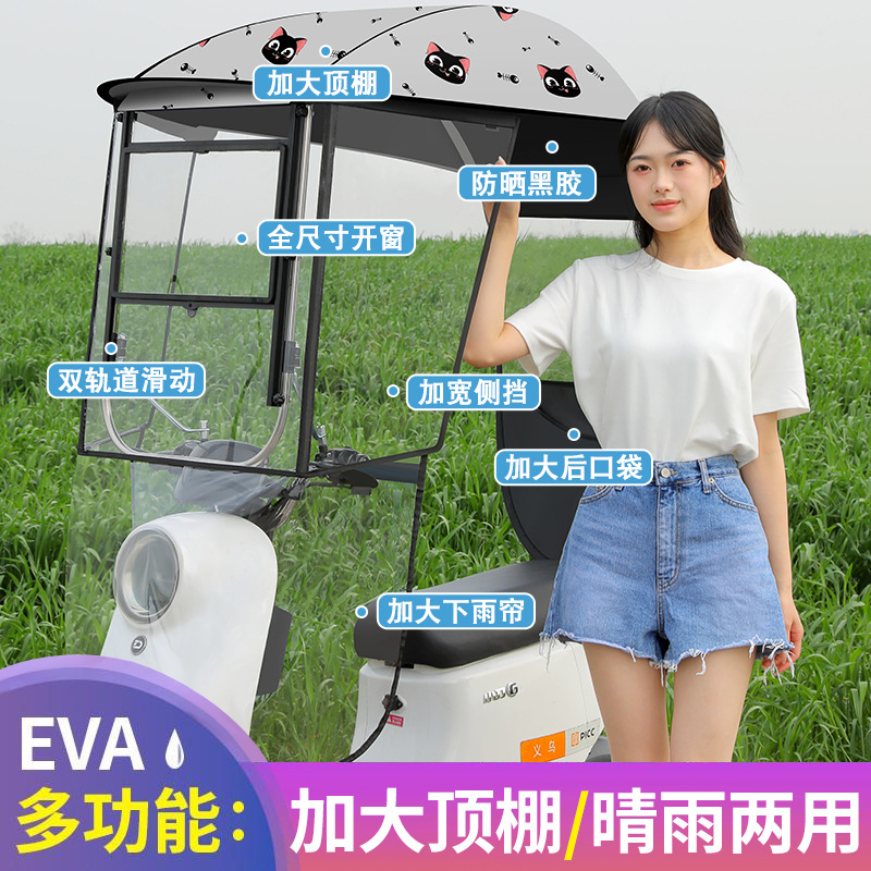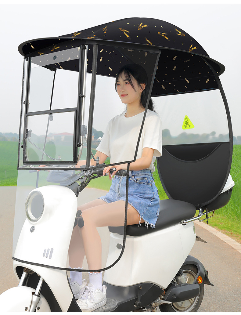새로운 전기 자동차 캐노피 캐노피 블랙 고무 두꺼운 그늘 비 방지 선 스크린 새로운 배터리 오토바이 앞 유리 커버스토어 가기