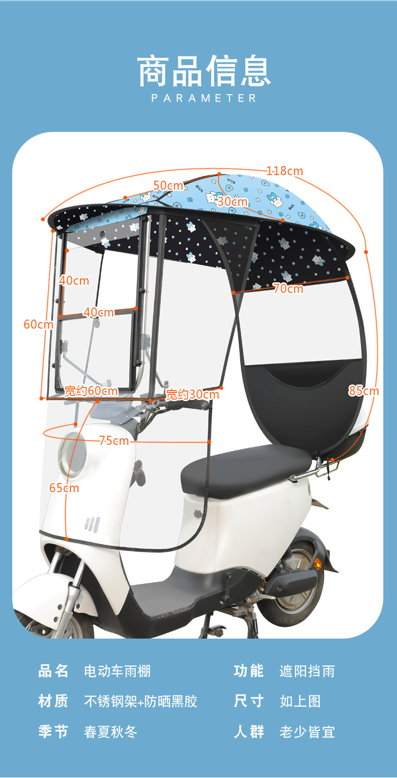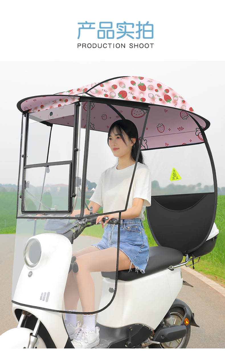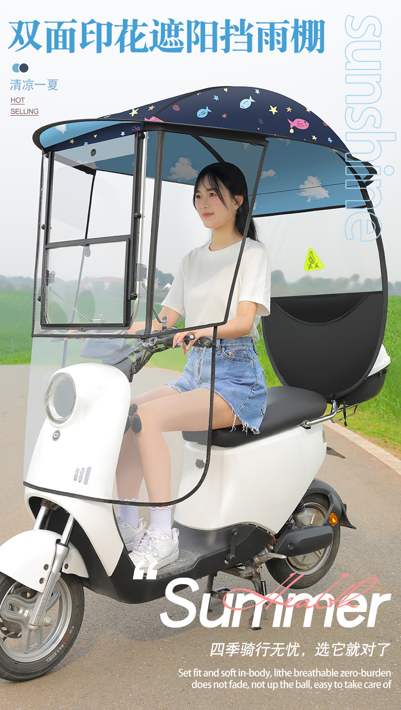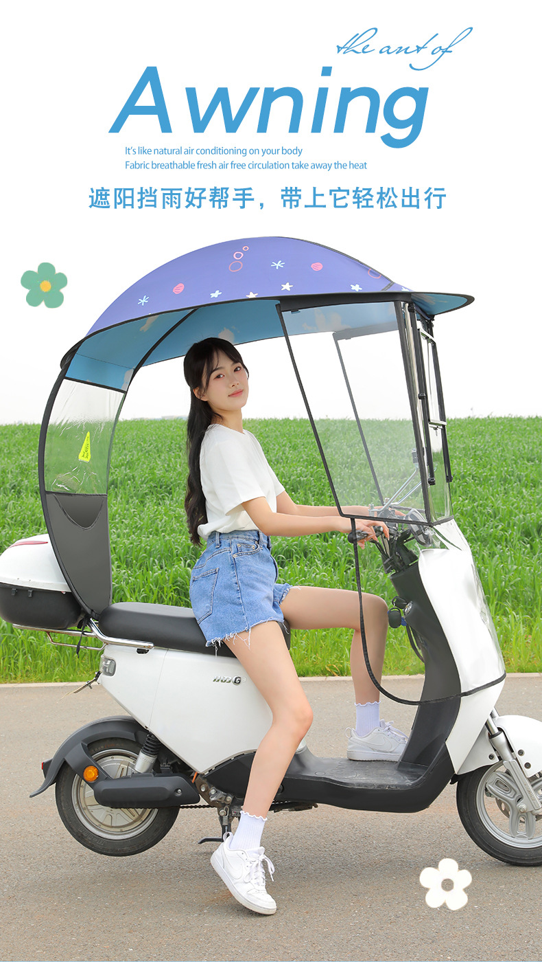 새로운 전기 자동차 캐노피 캐노피 블랙 고무 두꺼운 그늘 비 방지 선 스크린 새로운 배터리 오토바이 앞 유리 커버스토어 가기