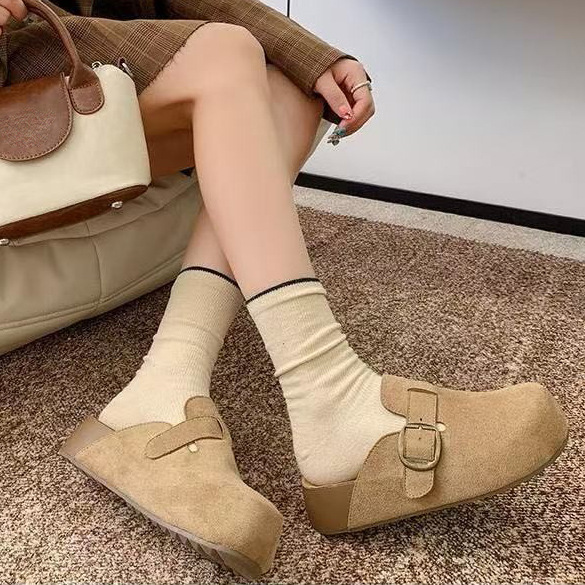 블랙 보드 신발 여성 2024 봄과 가을 새로운 홍콩 스타일 복고풍 학생 운동화 피곤하지 않은 발 두꺼운 밑창 캐주얼 신발스토어 가기