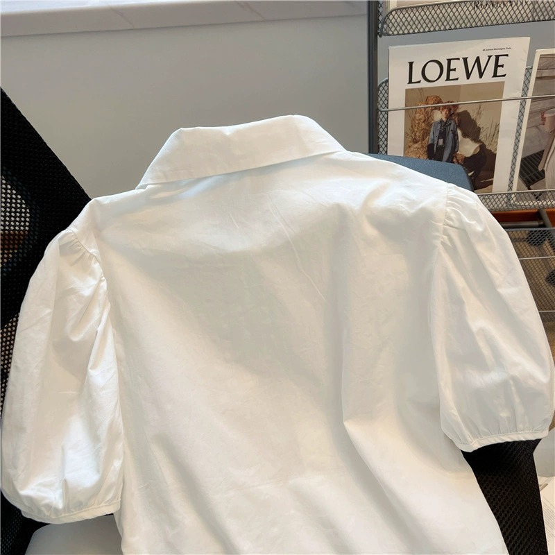 대외 무역 아동 의류 소녀 여름 반팔 셔츠 2025 여름 의류 아동 여름 순수 코튼 화이트 셔츠 탑 크로스 보더