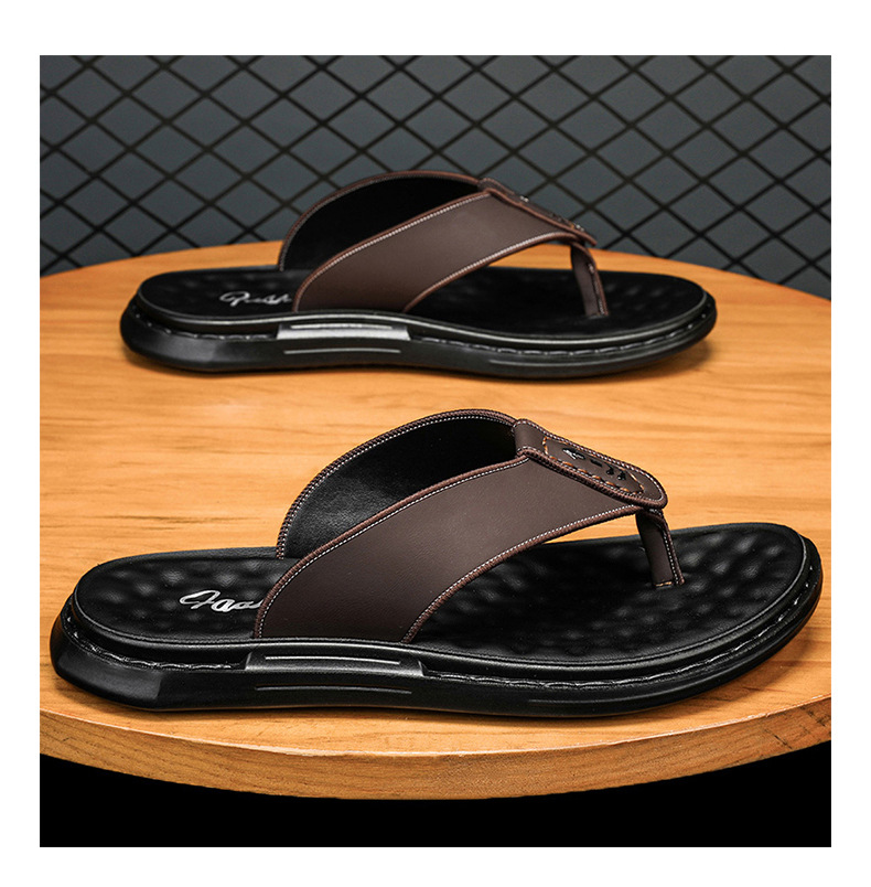 플립 플롭 남성용 여름 외부 착용 미끄럼 방지 소프트 하단 플립 플롭 플롭 야외 정품 가죽 스포츠 베트남 비치 샌들