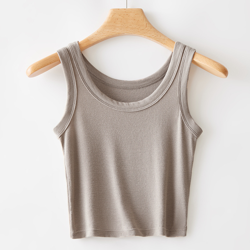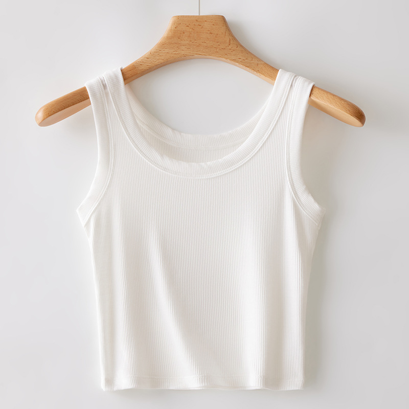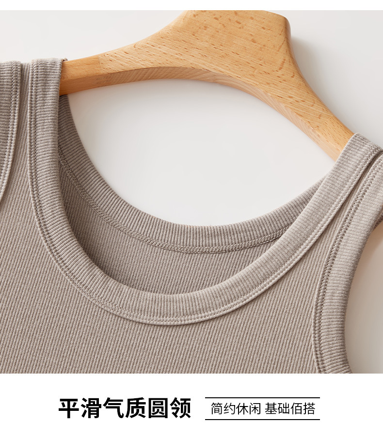 Solid Color Modal Threaded Sling Base Vest 여성용 쇼트 배꼽 노출 여성을위한 안티 라이트 올 매치 라운드 넥 조끼