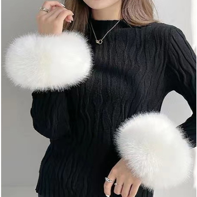 크로스보더 배송 모피 장식 소매 장갑 방풍 소매 보호 팔찌 모조 여우털 보온 소매스토어 가기