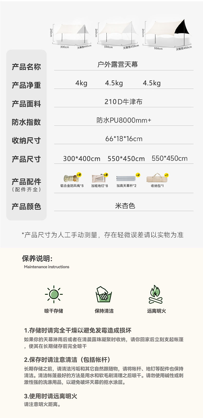 3.帐篷运输途中架子挤压可能会造成少量银胶脱落,属正常现象,介意者勿拍,谢谢