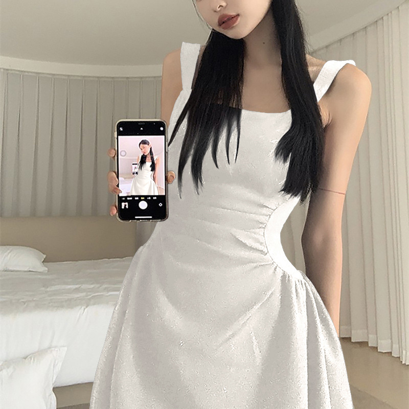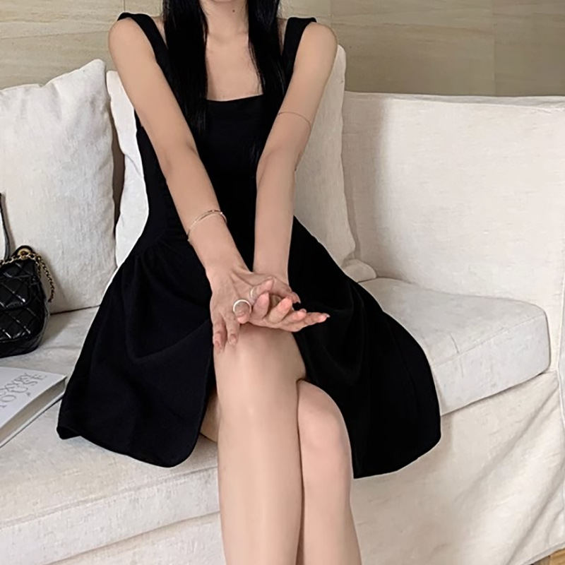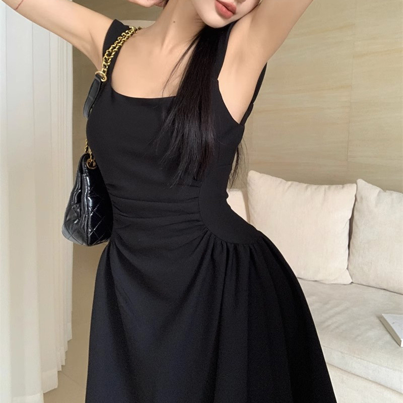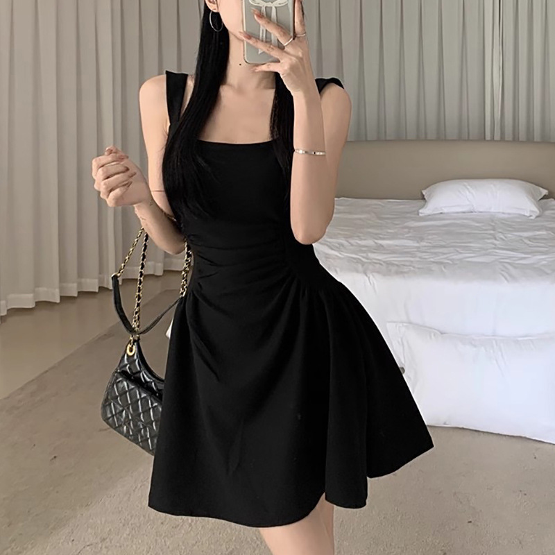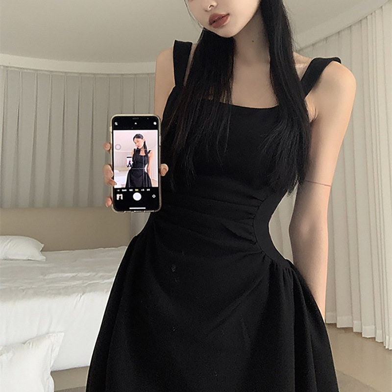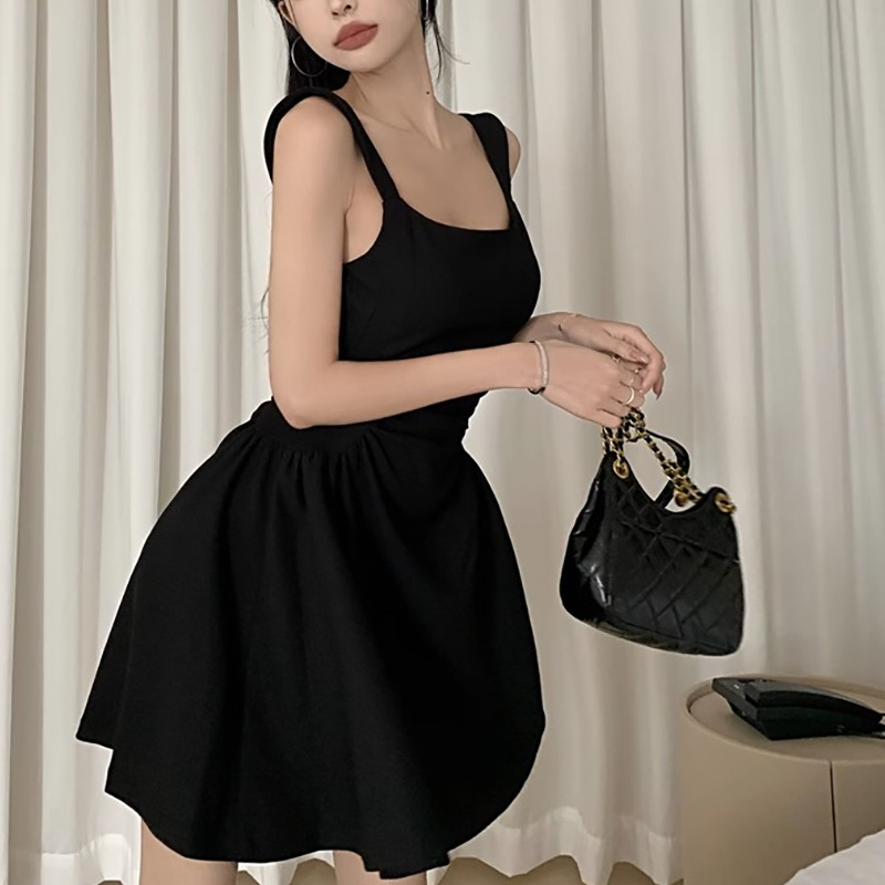 작은 검은 원피스 우아한 조끼 원피스 여성 여름 새로운 헵번 스타일 타이트 허리 슬림 룩 슬립 스커트 A-라인 짧은 스커트 트렌디스토어 가기