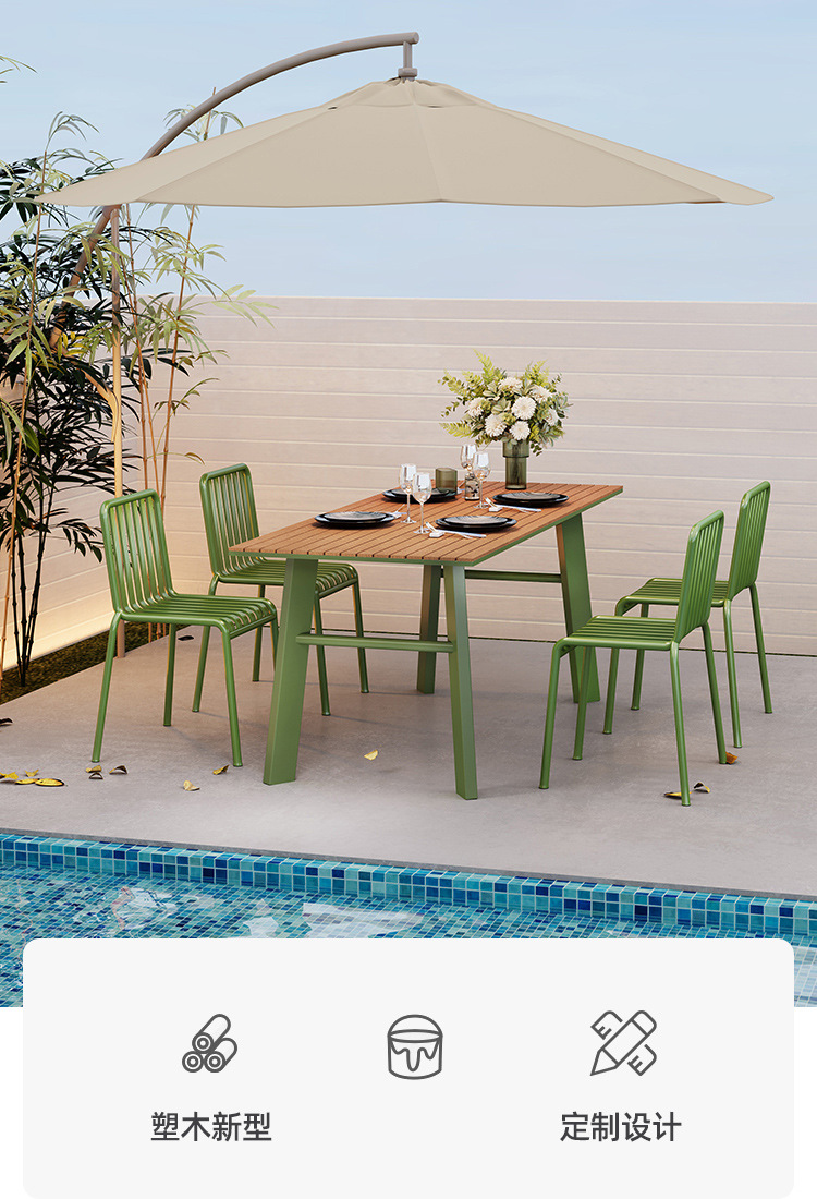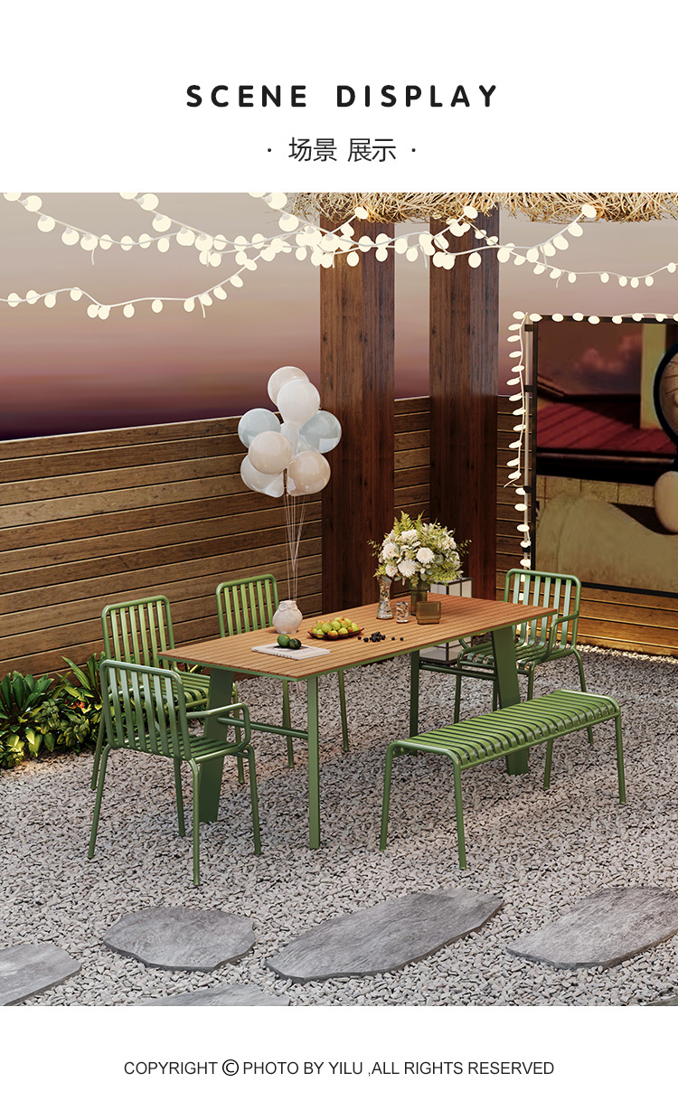 야외 테이블과 의자 야외 플라스틱 나무 직사각형 테이블과 의자 레스토랑 카페 야외 식사 테이블 및 의자 조합 우유 차 가게 안뜰스토어 가기