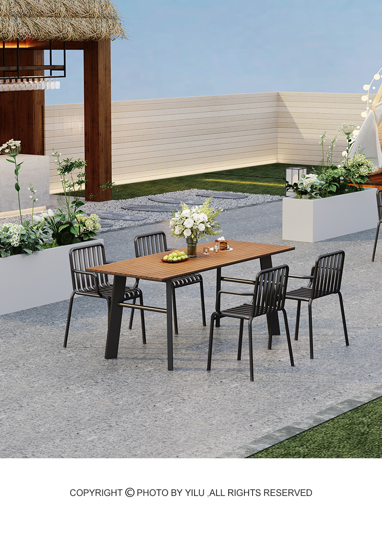 야외 테이블과 의자 야외 플라스틱 나무 직사각형 테이블과 의자 레스토랑 카페 야외 식사 테이블 및 의자 조합 우유 차 가게 안뜰