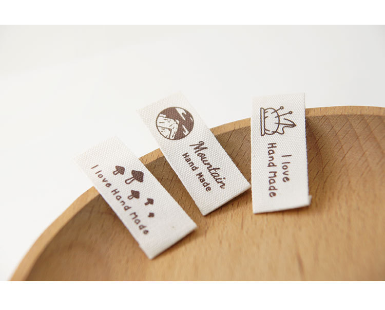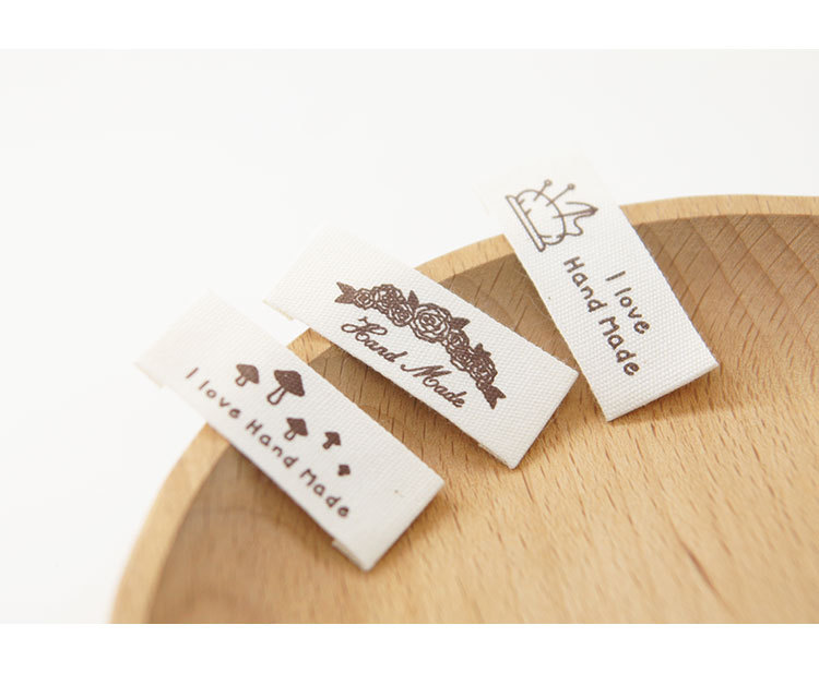 순수한면 재고 손으로 인쇄 마크 헴 천 라벨 바늘 삽입 언덕 버섯 화환 라벨 액세서리 재봉 DIY 액세서리