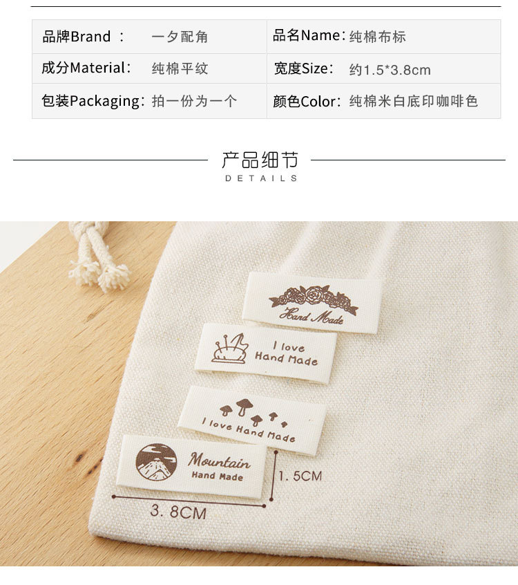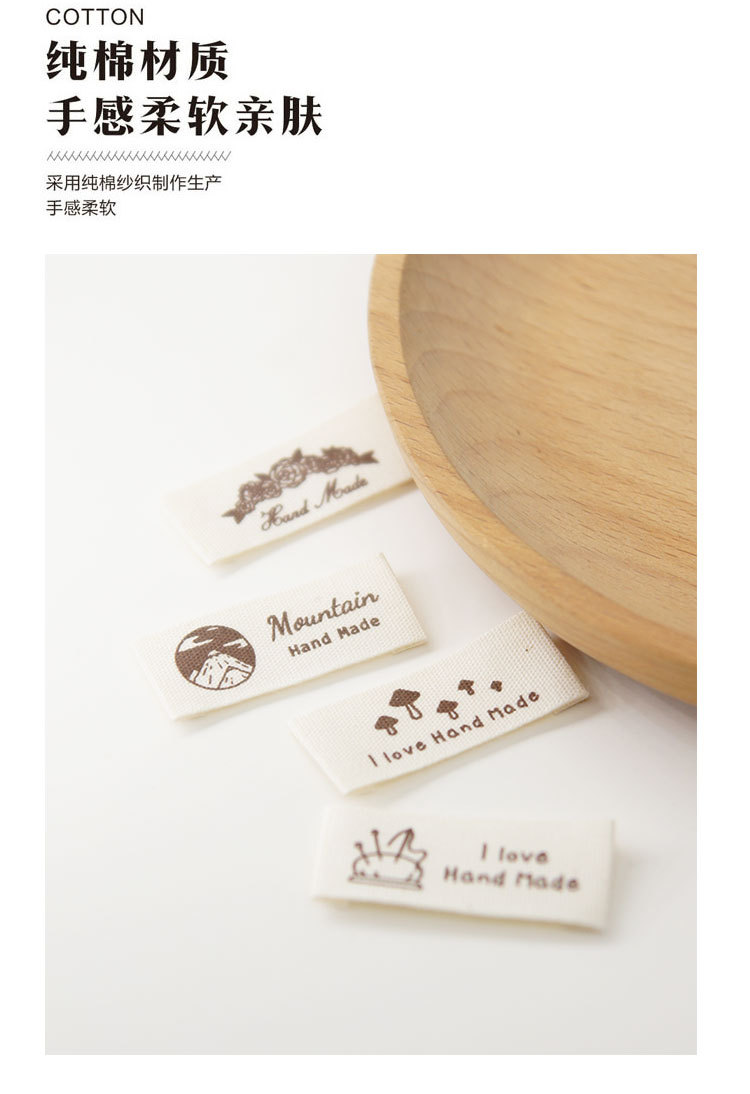 순수한면 재고 손으로 인쇄 마크 헴 천 라벨 바늘 삽입 언덕 버섯 화환 라벨 액세서리 재봉 DIY 액세서리스토어 가기