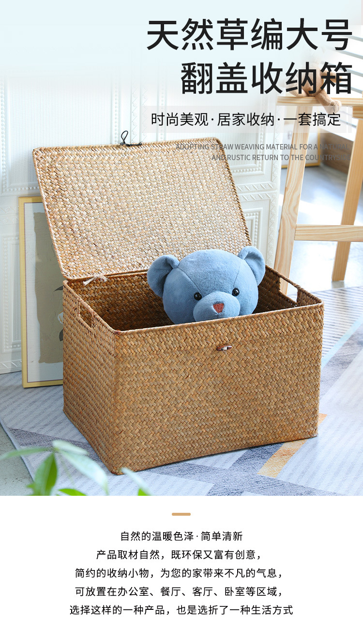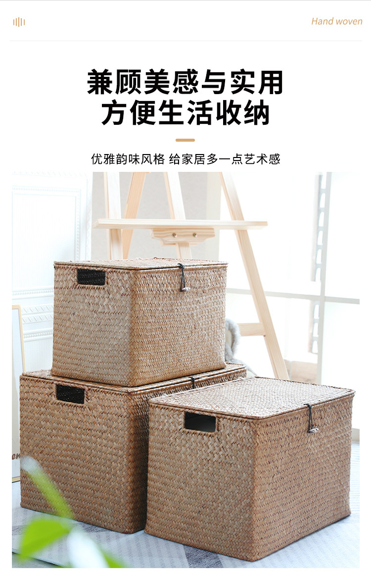 수제 밀짚 장난감 보관 침실 대형 저장 상자 홈 복고풍 저장 상자 옷장 색칠 속옷 상자스토어 가기