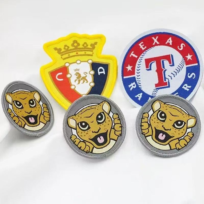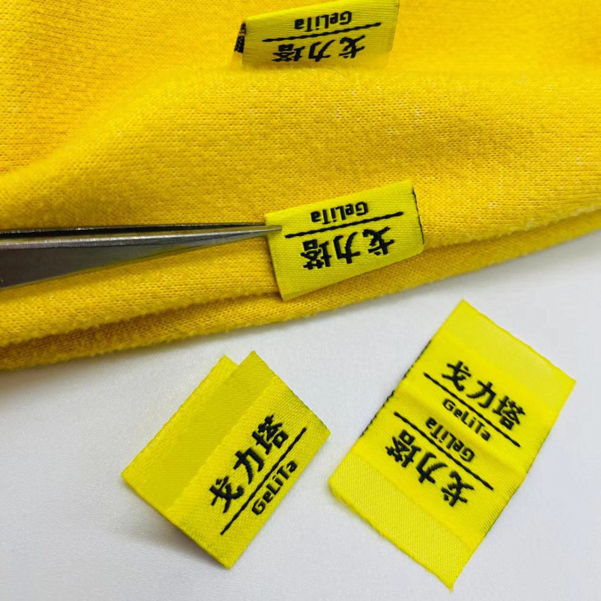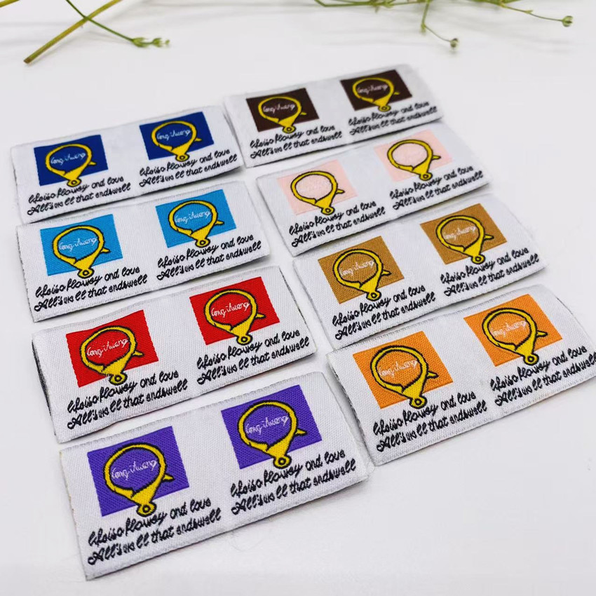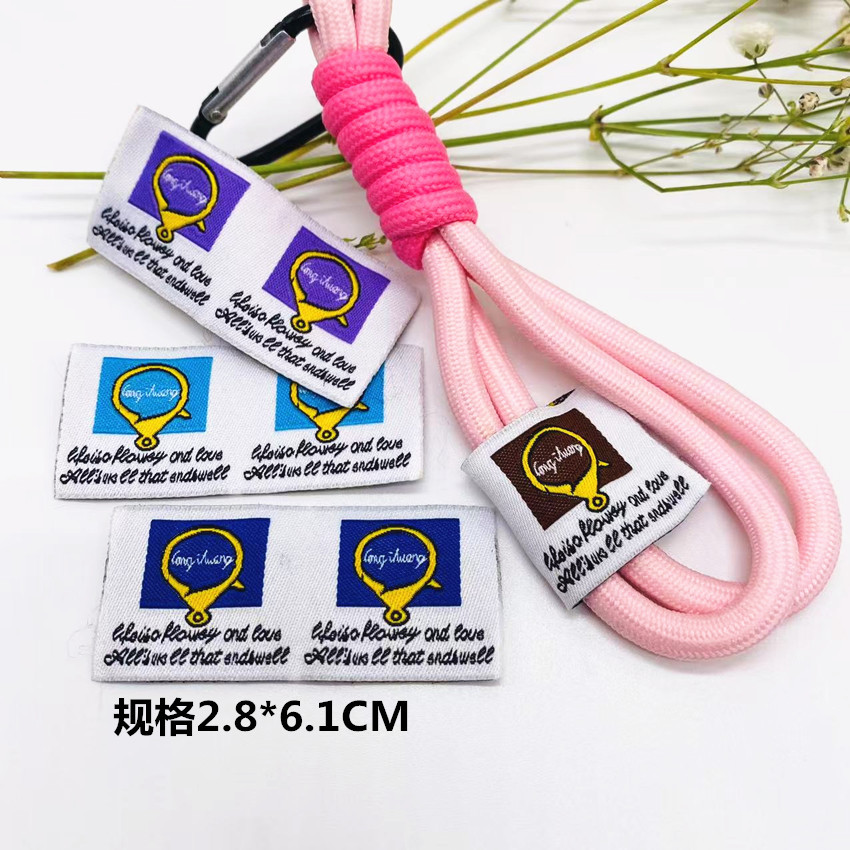 공장 도매 의류 직조 라벨 트렌디 브랜드 칼라 라벨 접이식 직조 라벨 측면 라벨 패브릭 라벨 만화 마크 로고