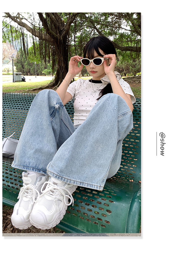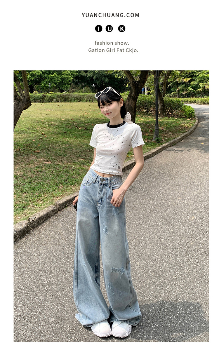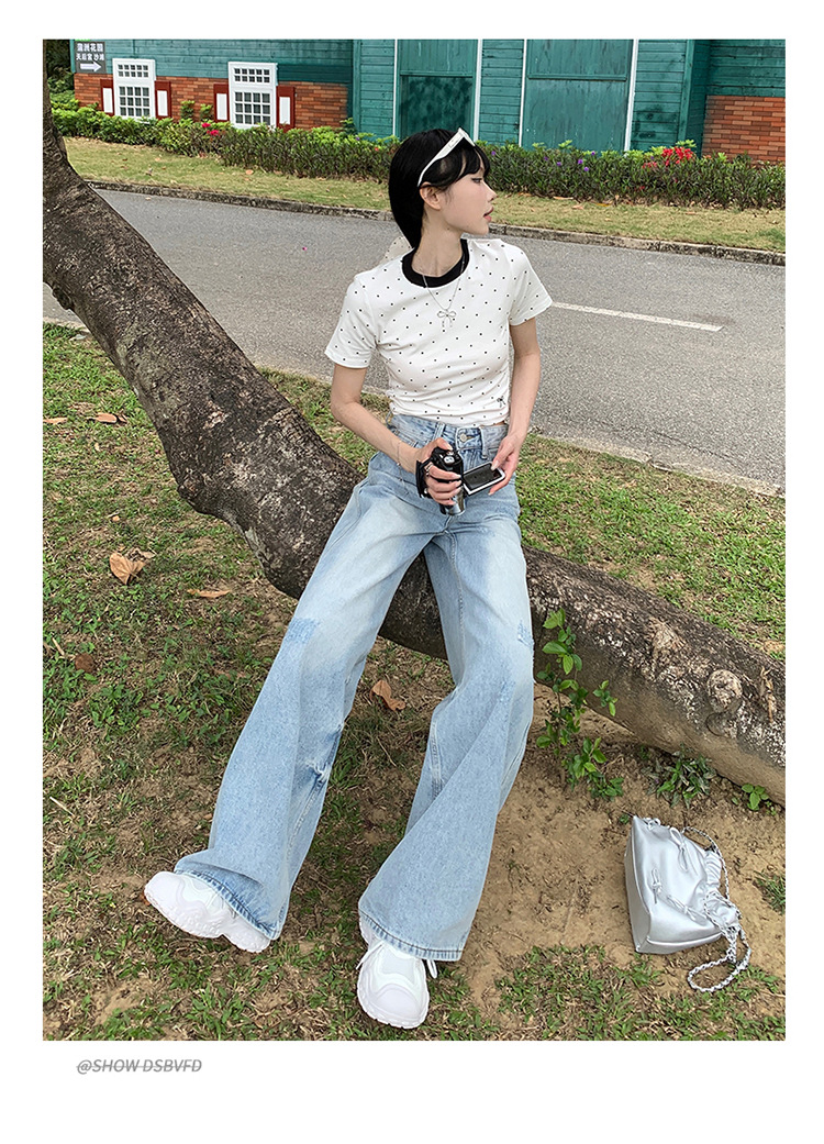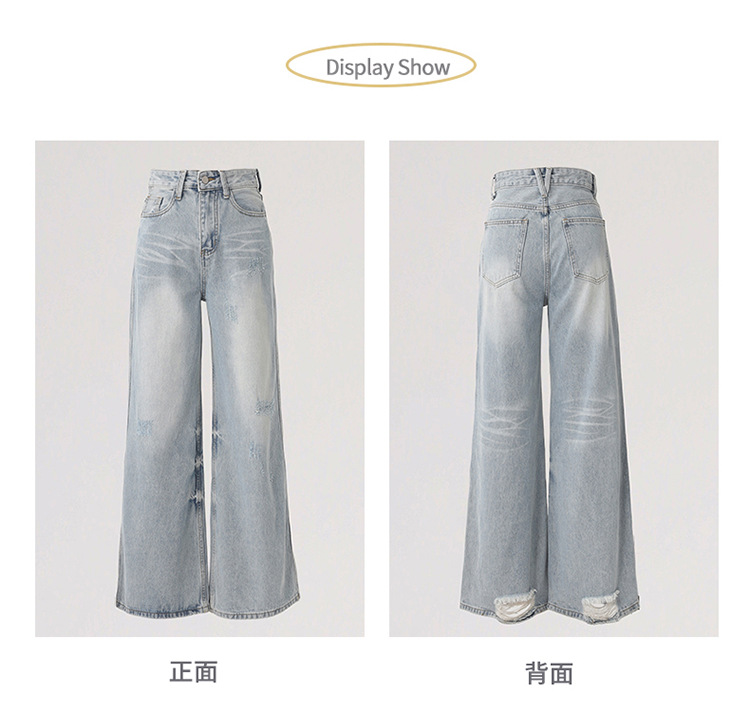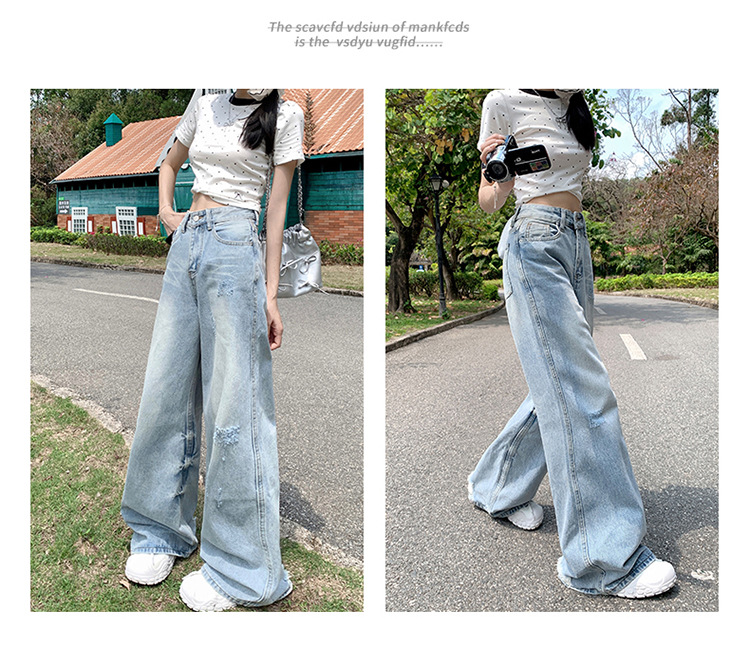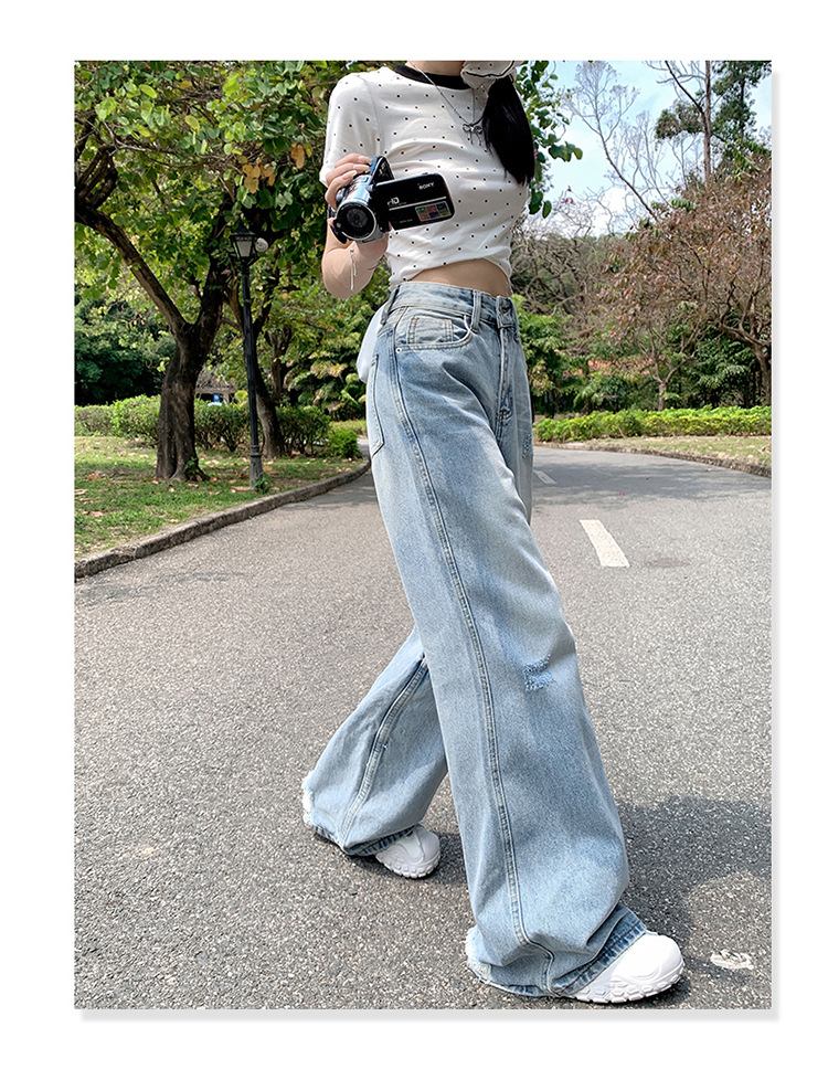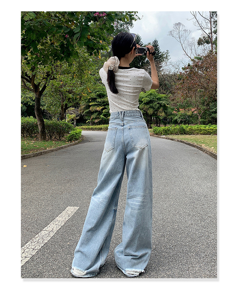 찢어진 와이드 레그 청바지 여자 여름 미국 복고풍 바지 높은 허리 슬리밍 스트레이트 레그프리 마이크로 팬츠스토어 가기