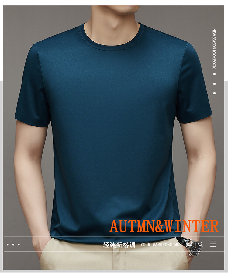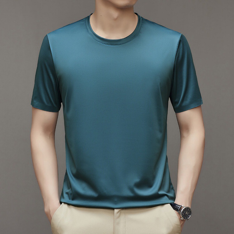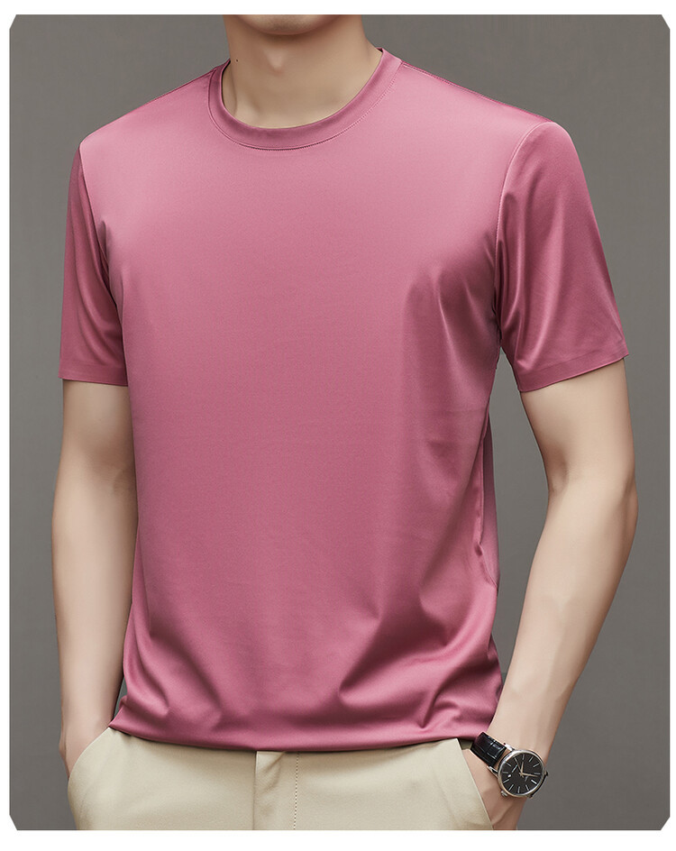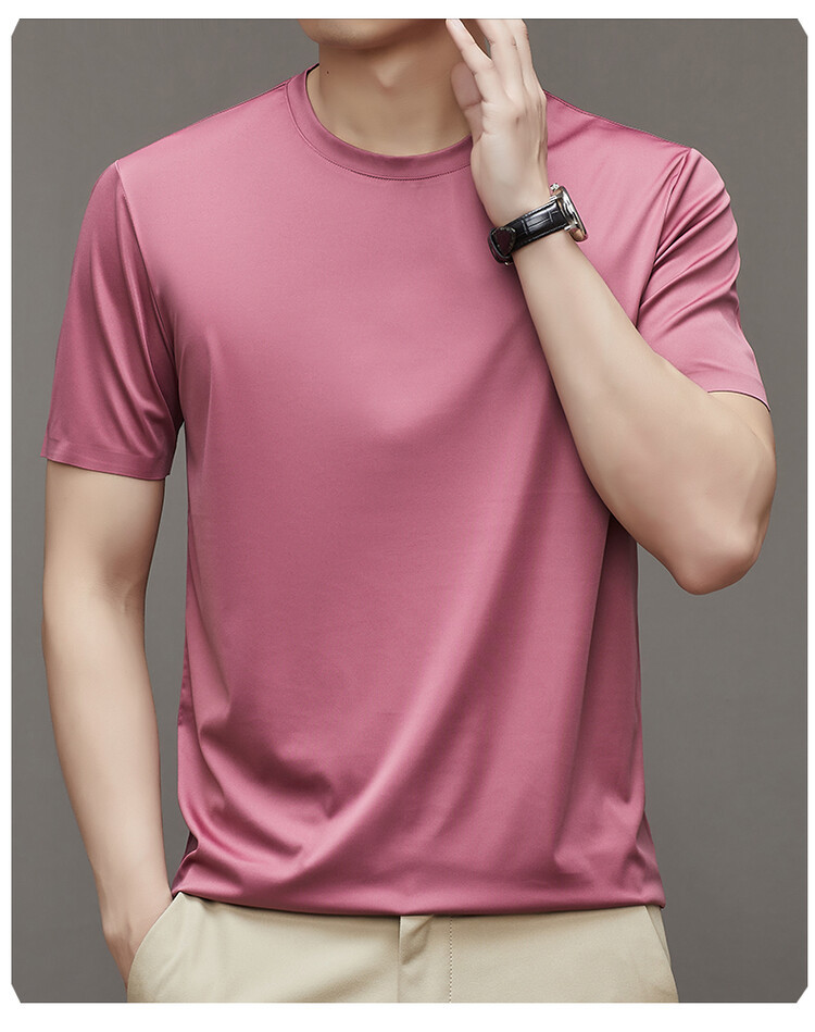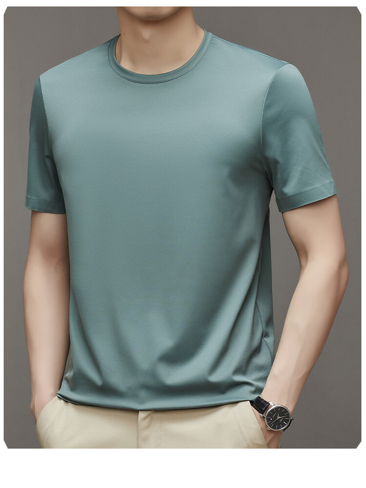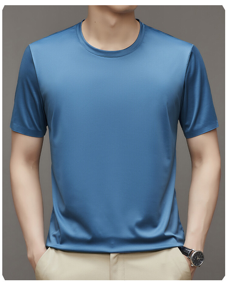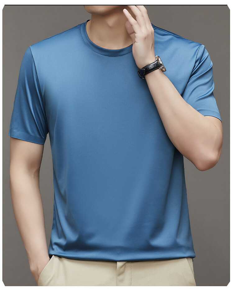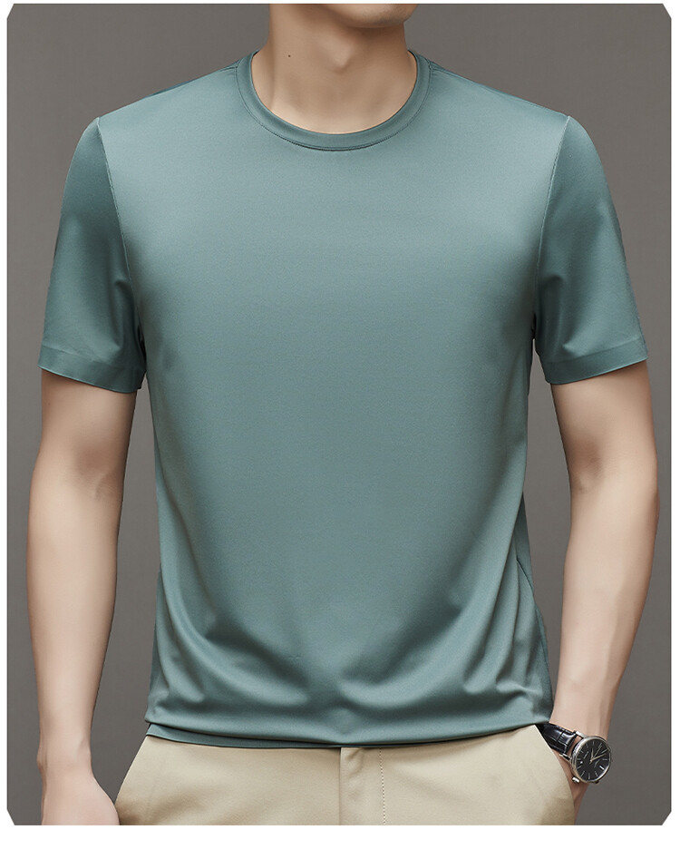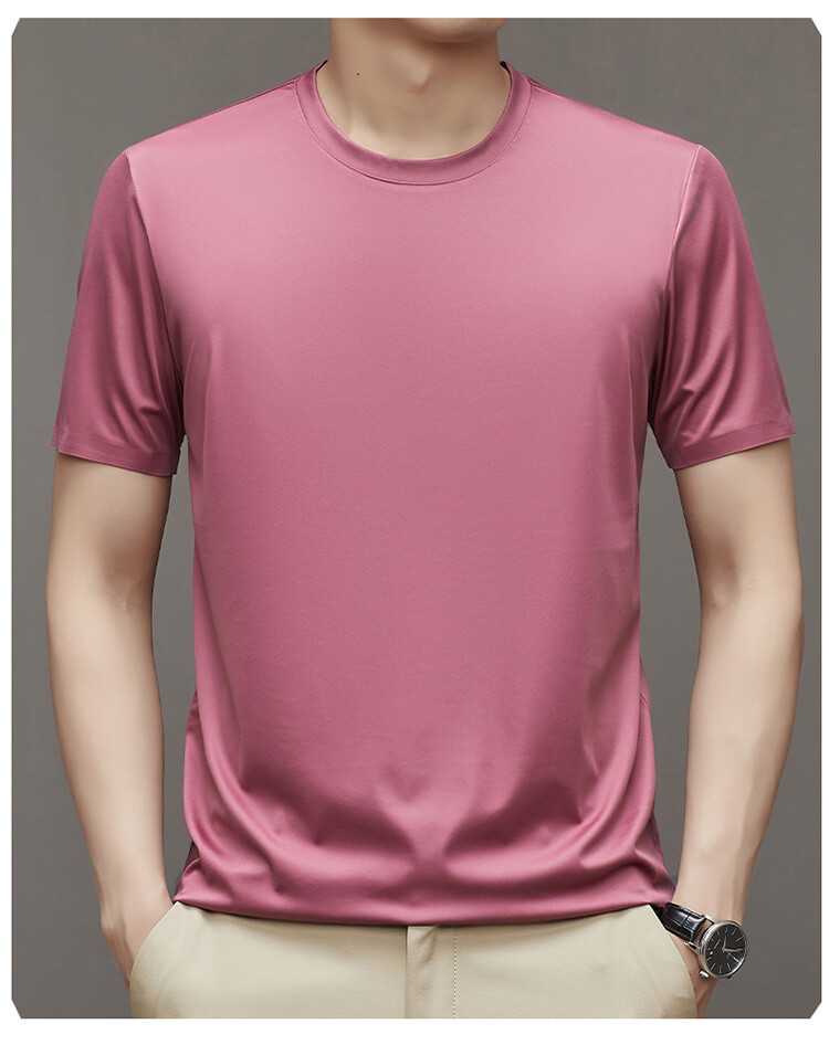 아이스 실크 반팔 남성 티셔츠 솔리드 컬러 티셔츠 여름 새로운 핸들 반소매 한국 스타일 슬림 핏 탑 캐주얼 헤어