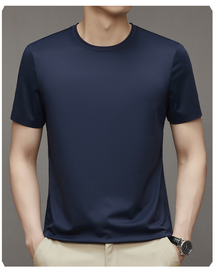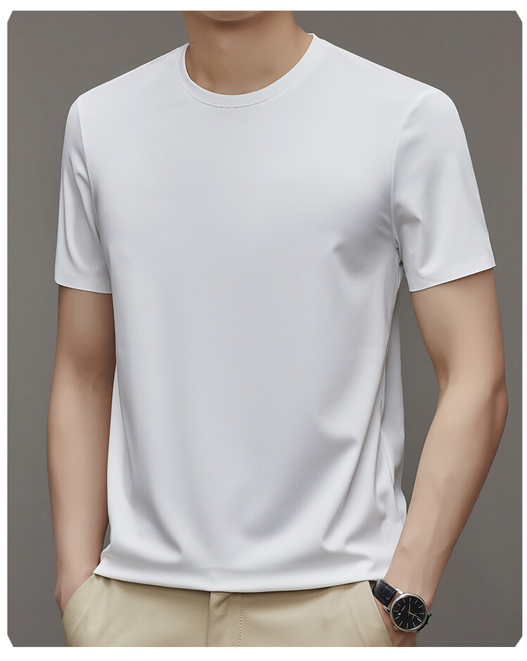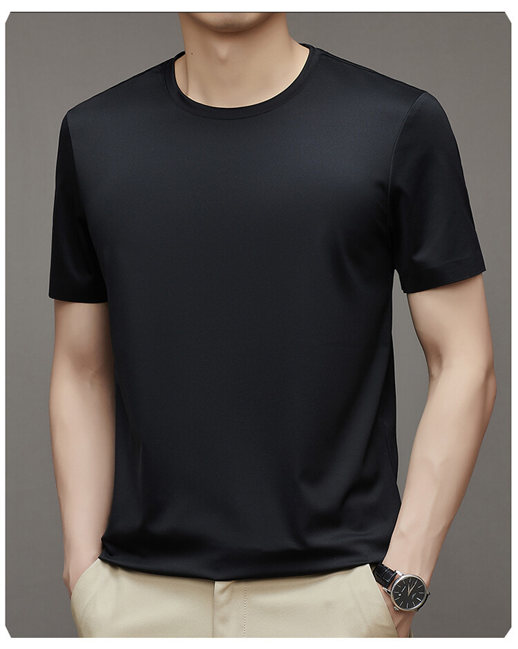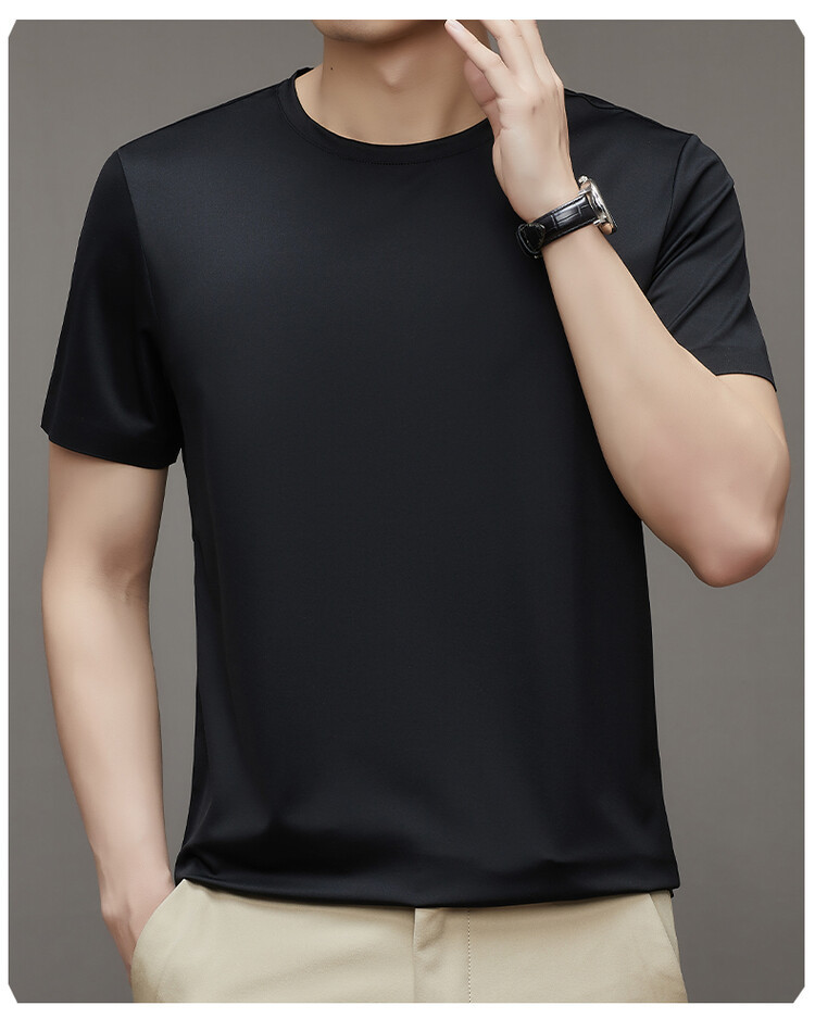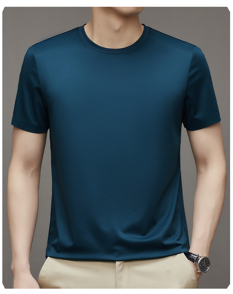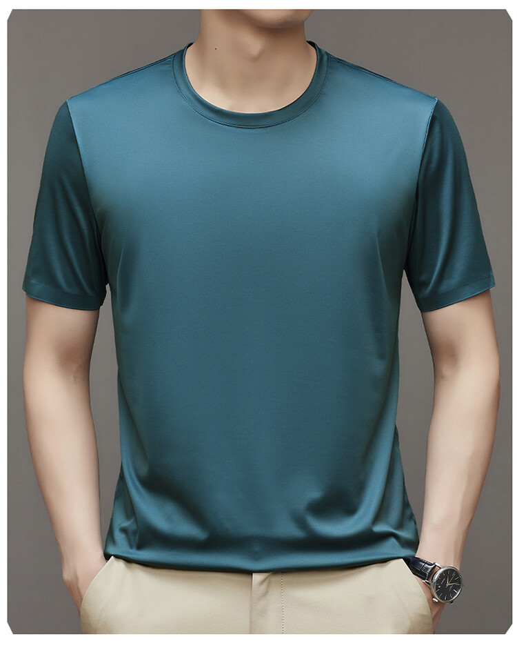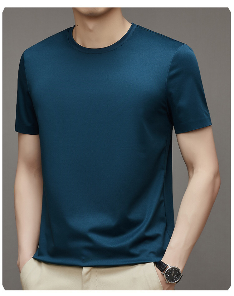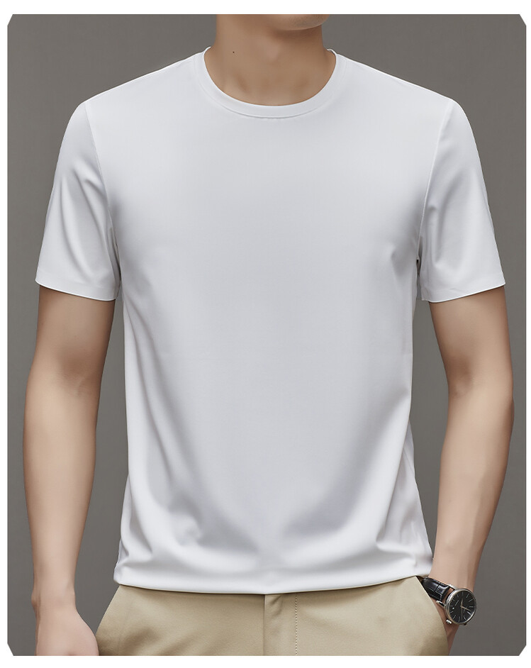 아이스 실크 반팔 남성 티셔츠 솔리드 컬러 티셔츠 여름 새로운 핸들 반소매 한국 스타일 슬림 핏 탑 캐주얼 헤어
