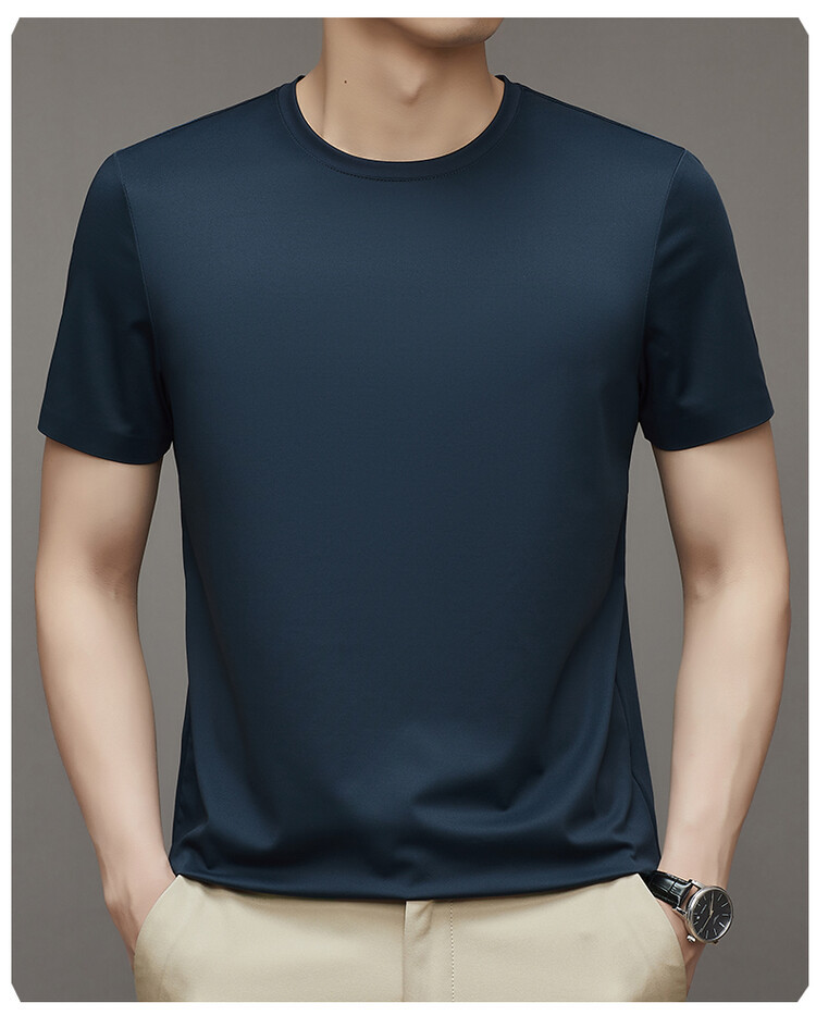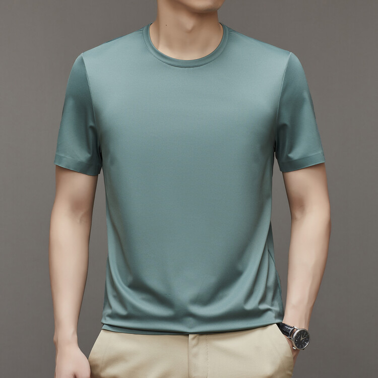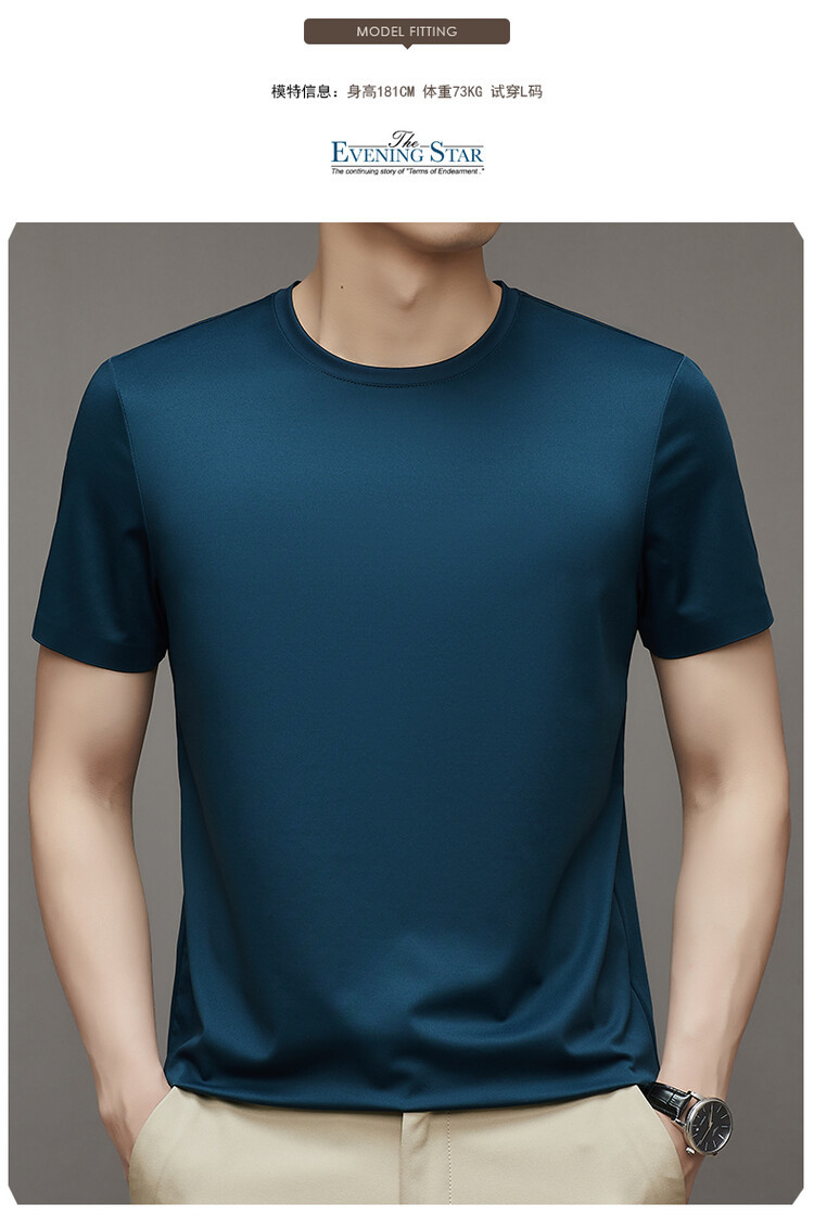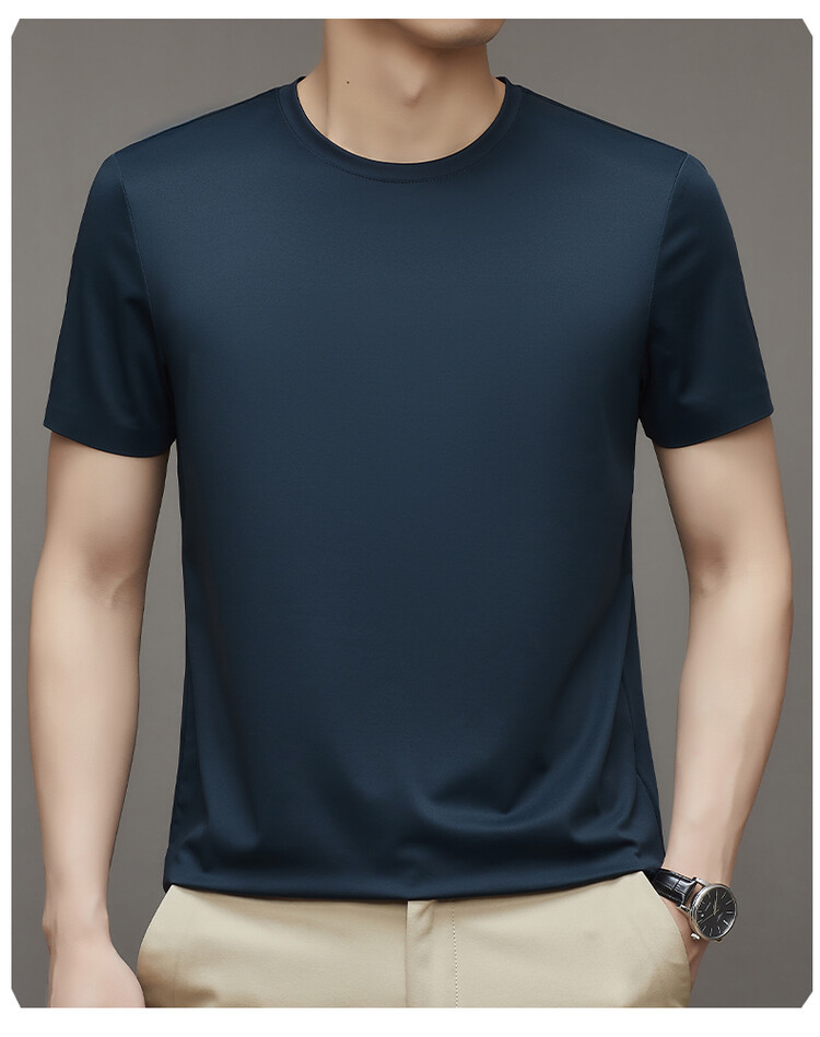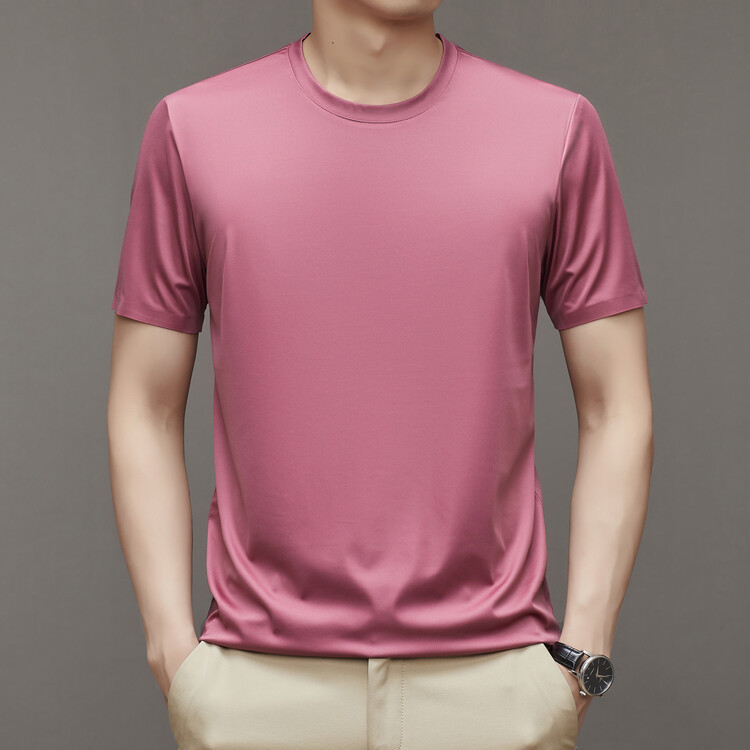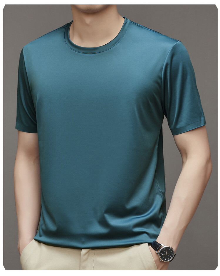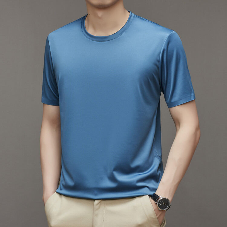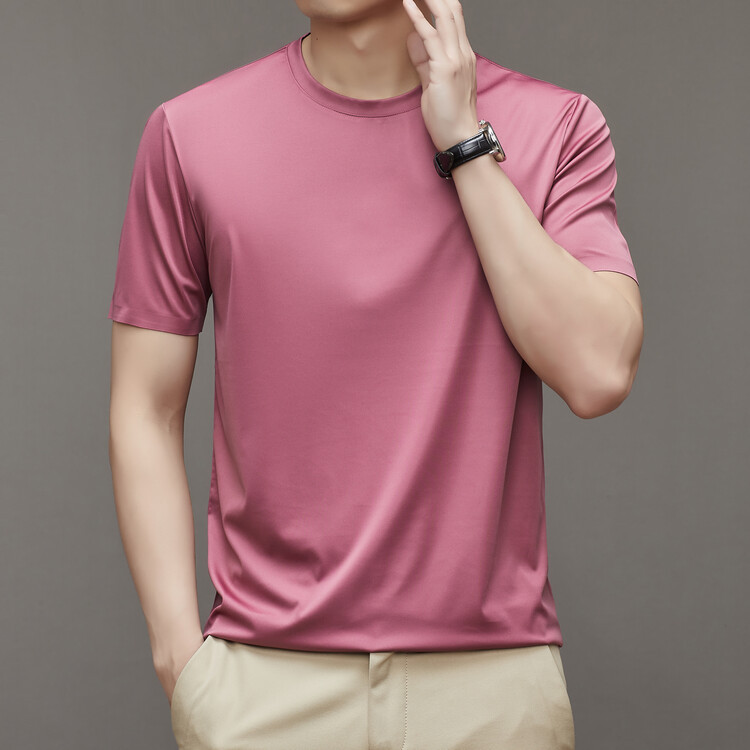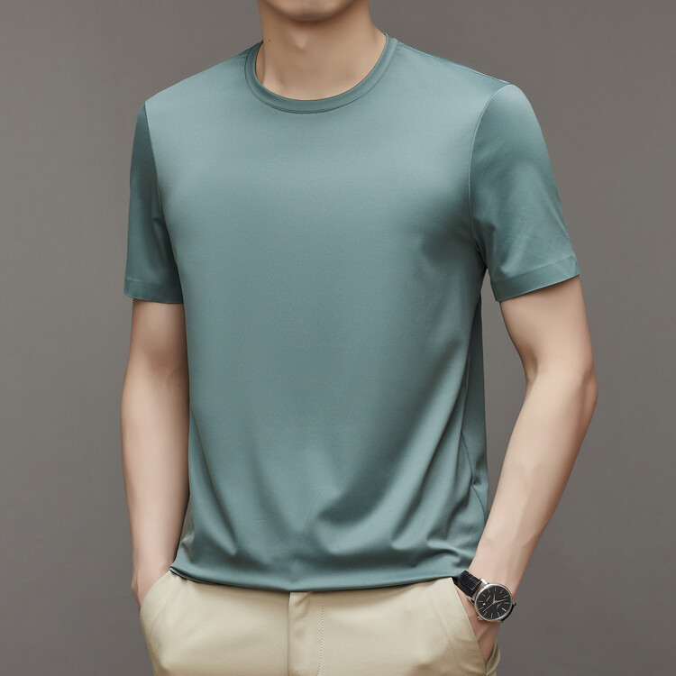 아이스 실크 반팔 남성 티셔츠 솔리드 컬러 티셔츠 여름 새로운 핸들 반소매 한국 스타일 슬림 핏 탑 캐주얼 헤어