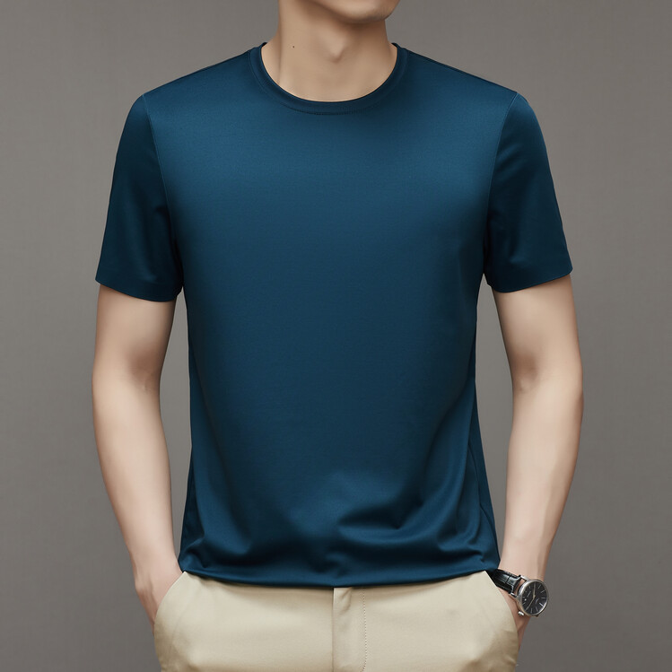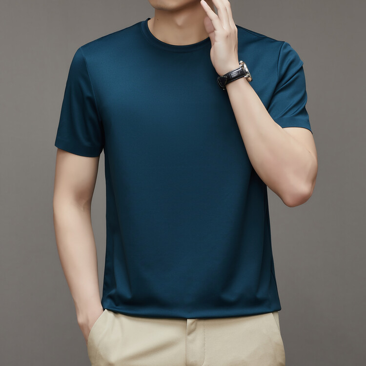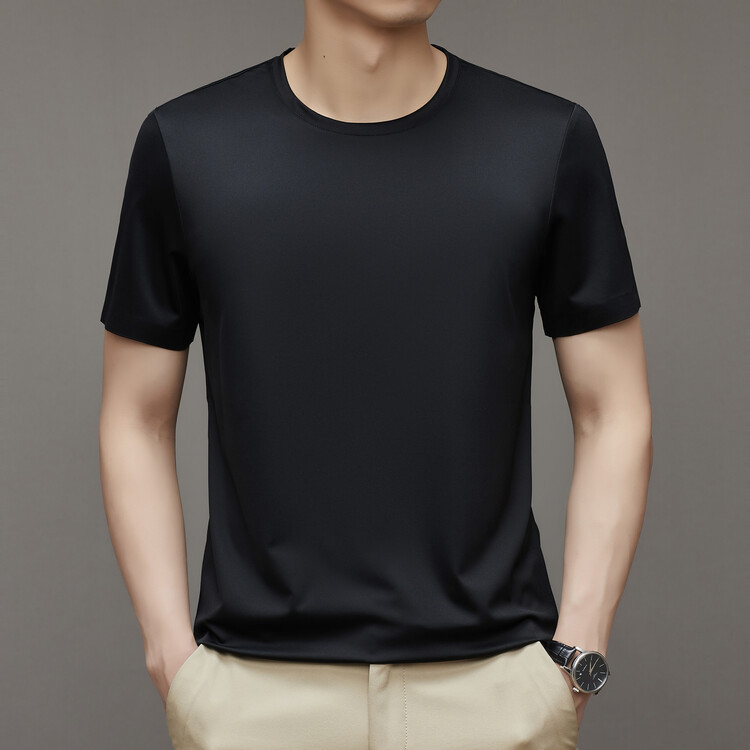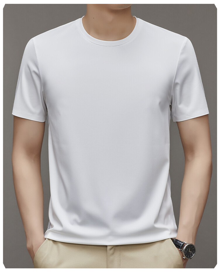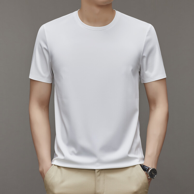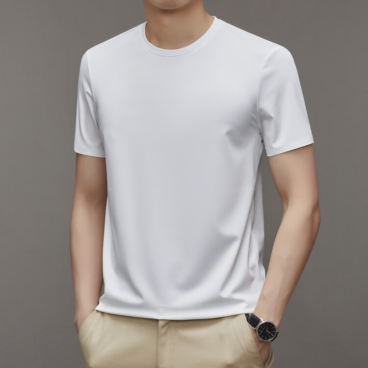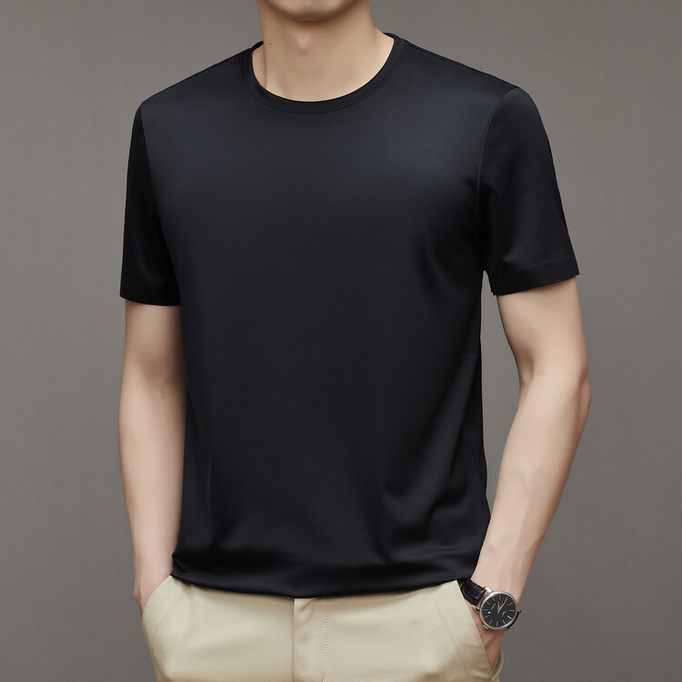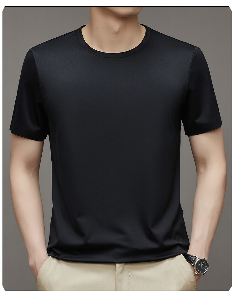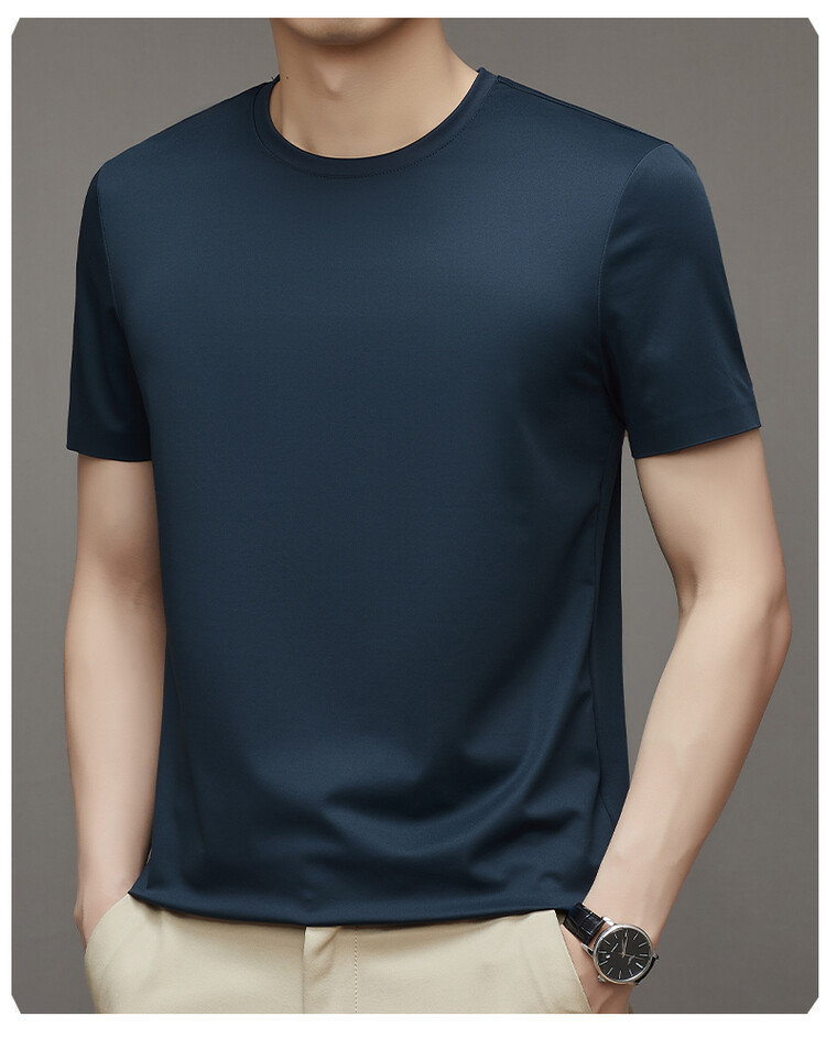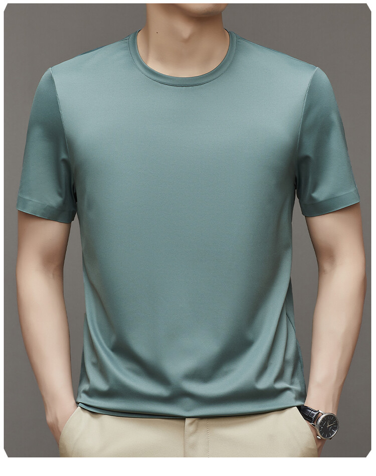 아이스 실크 반팔 남성 티셔츠 솔리드 컬러 티셔츠 여름 새로운 핸들 반소매 한국 스타일 슬림 핏 탑 캐주얼 헤어