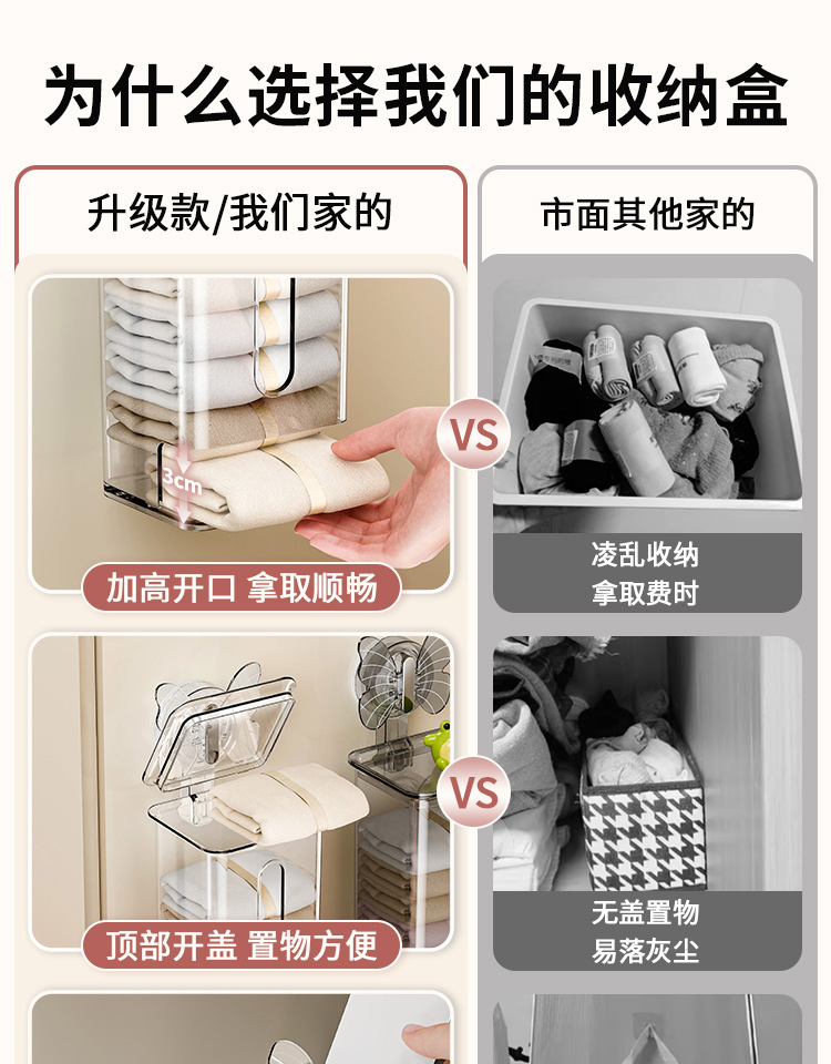 석션 컵 속옷 보관 상자 뚜껑 벽걸이 속옷 주최자 대용량 서랍 형 양말 보관 바구니스토어 가기