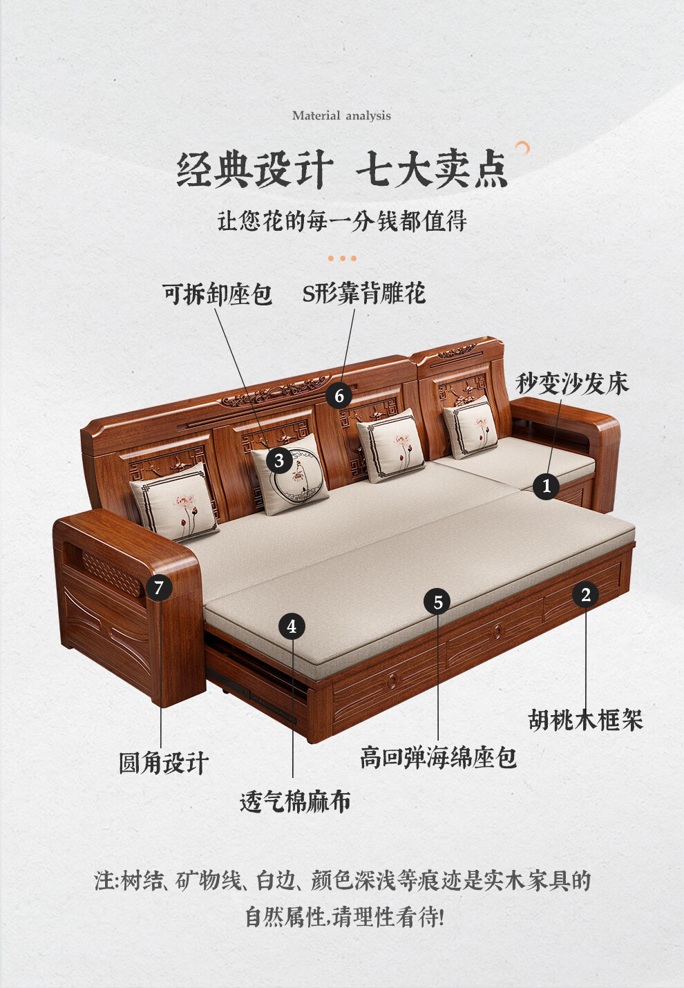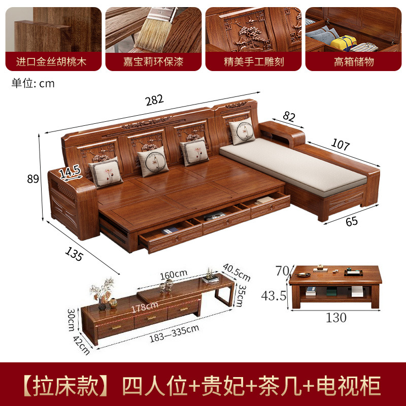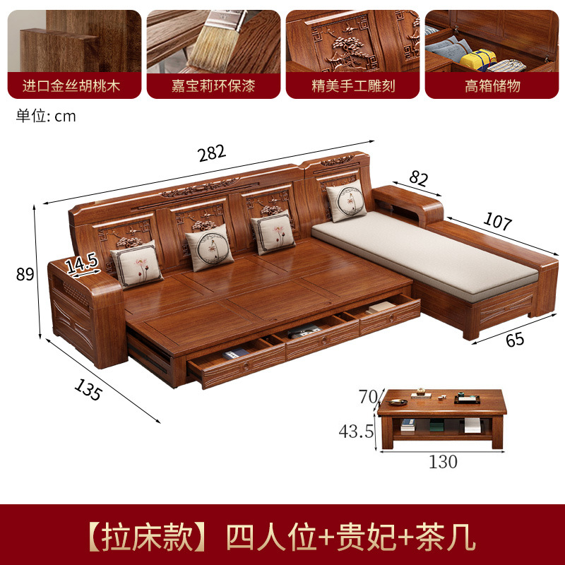 호두 소파 침대 이중 목적 호두 중국 스타일 다기능 겨울/여름 이중 목적 접는 가변 침대 작은 아파트 거실
