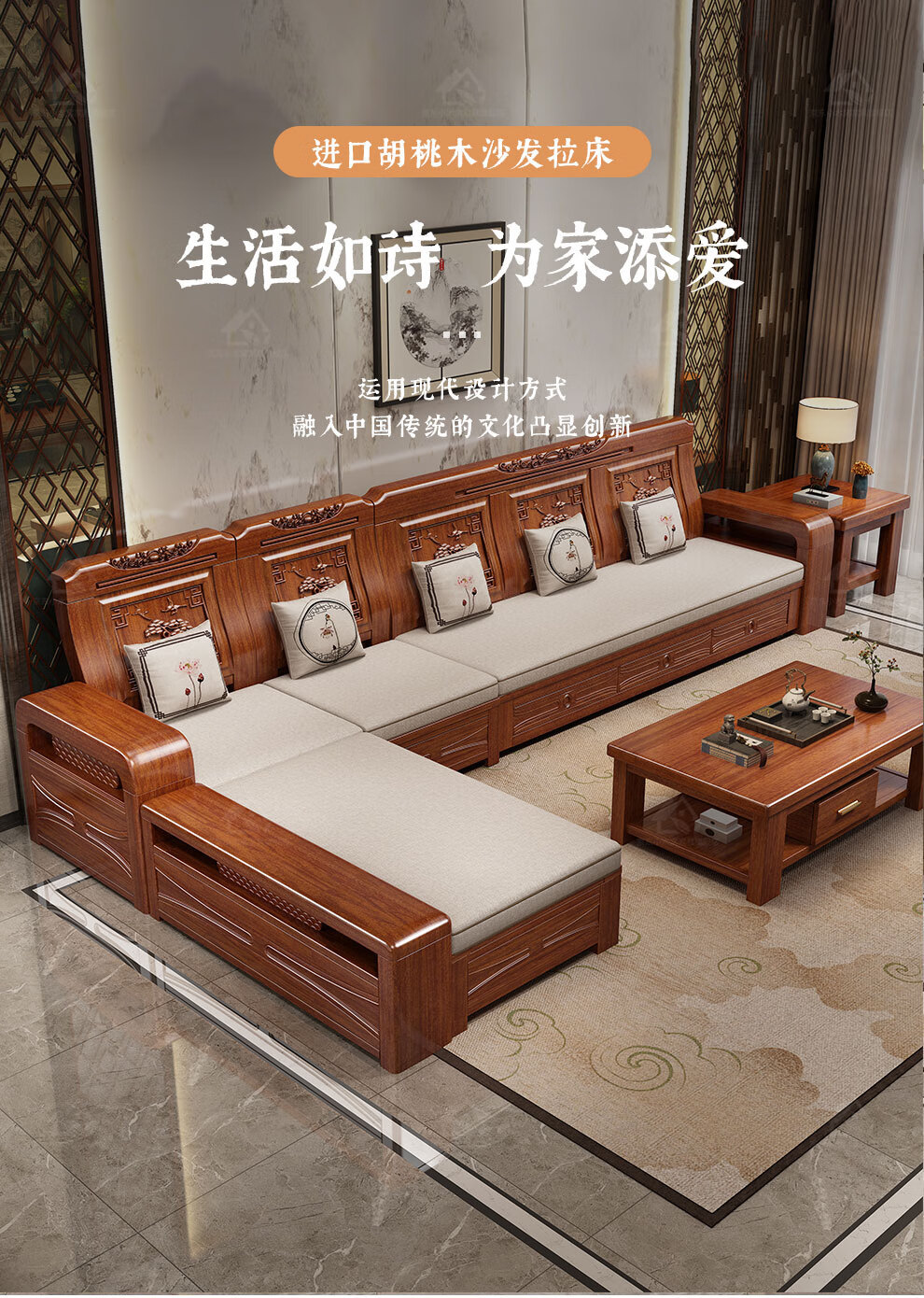 호두 소파 침대 이중 목적 호두 중국 스타일 다기능 겨울/여름 이중 목적 접는 가변 침대 작은 아파트 거실스토어 가기