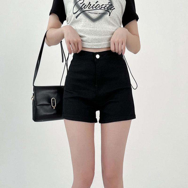 검은 데님 반바지 여성베이스 높은 허리 Ins 트렌디 한 외부 착용이 타이트한 스트레치 A 자형 스트레이트 엉덩이 핫 팬츠