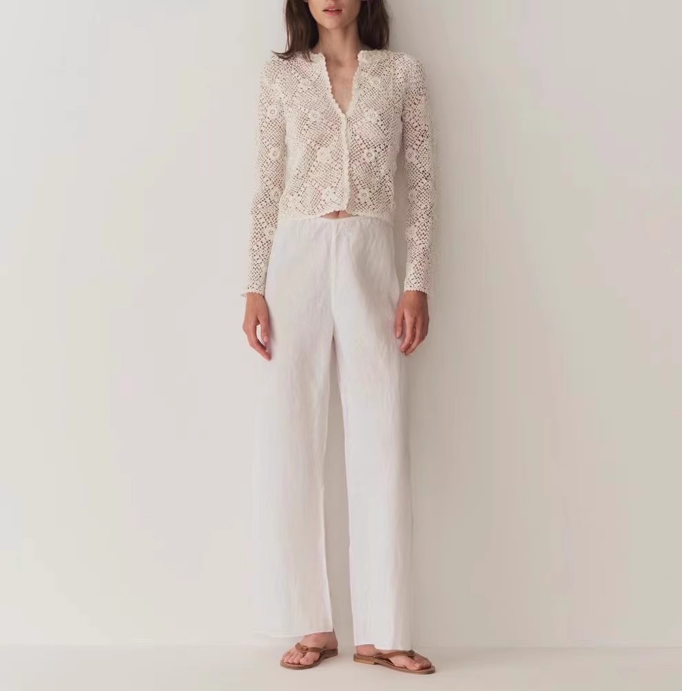 틈새 2024 여름 새로운 패션 올 매치 화이트 바지 편안한 캐주얼 바지 여성 트렌디스토어 가기