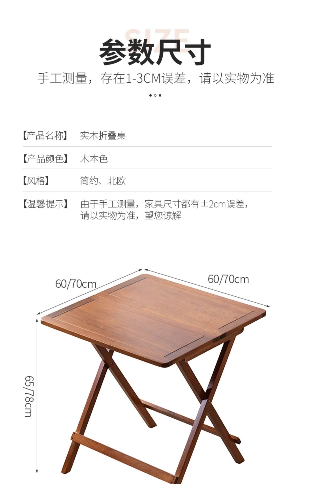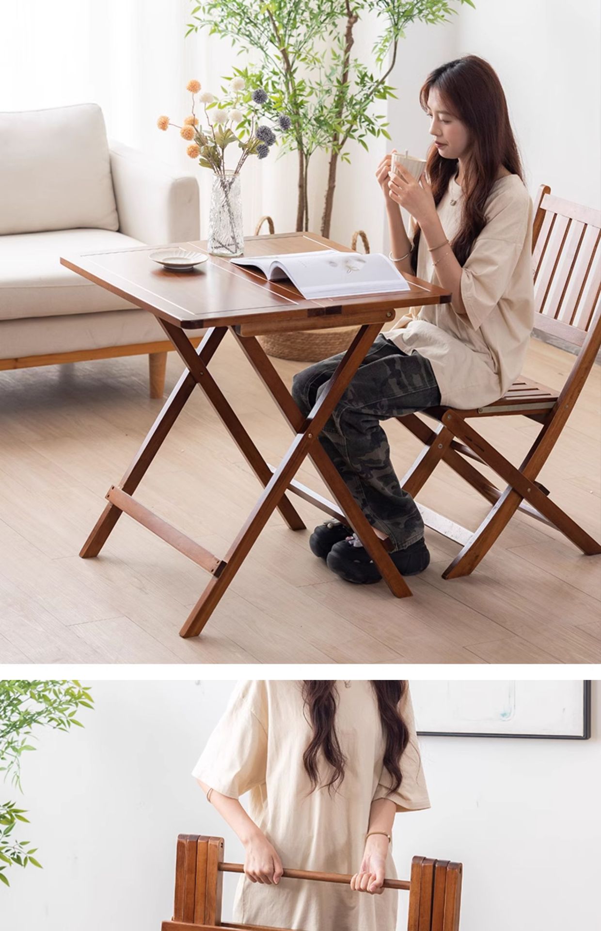 접이식 테이블 작은 아파트 가구 다이닝 스퀘어 테이블 솔리드 우드 간단한 휴대용 야외 발코니 다이닝 테이블 스톨 다이닝 테이블스토어 가기