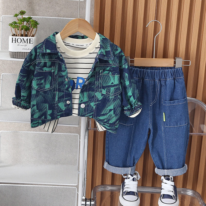 2024 새로운 가을 아동복 데님 조끼 3 피스 어린이 세트 바지 어린이 가을 의류 머리카락 세대스토어 가기