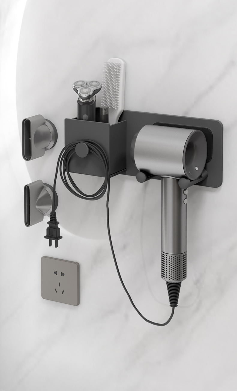 공간 알루미늄 헤어 드라이어 저장 랙 펀치없는 벽 매달려 오른쪽 헤어 드라이어 옷걸이 빗 다이슨 헤어 드라이어 브래킷