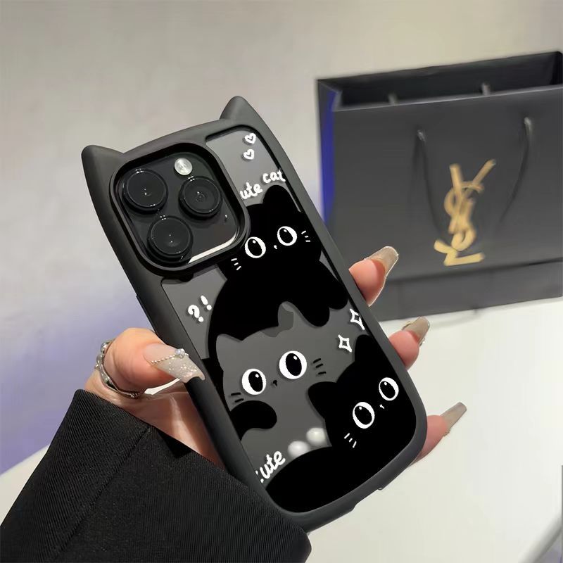 만화 고양이 애플 16 휴대 전화 케이스 iPhone15Pro 새로운 14/13 3 차원 고양이 귀 12 세대 머리카락스토어 가기