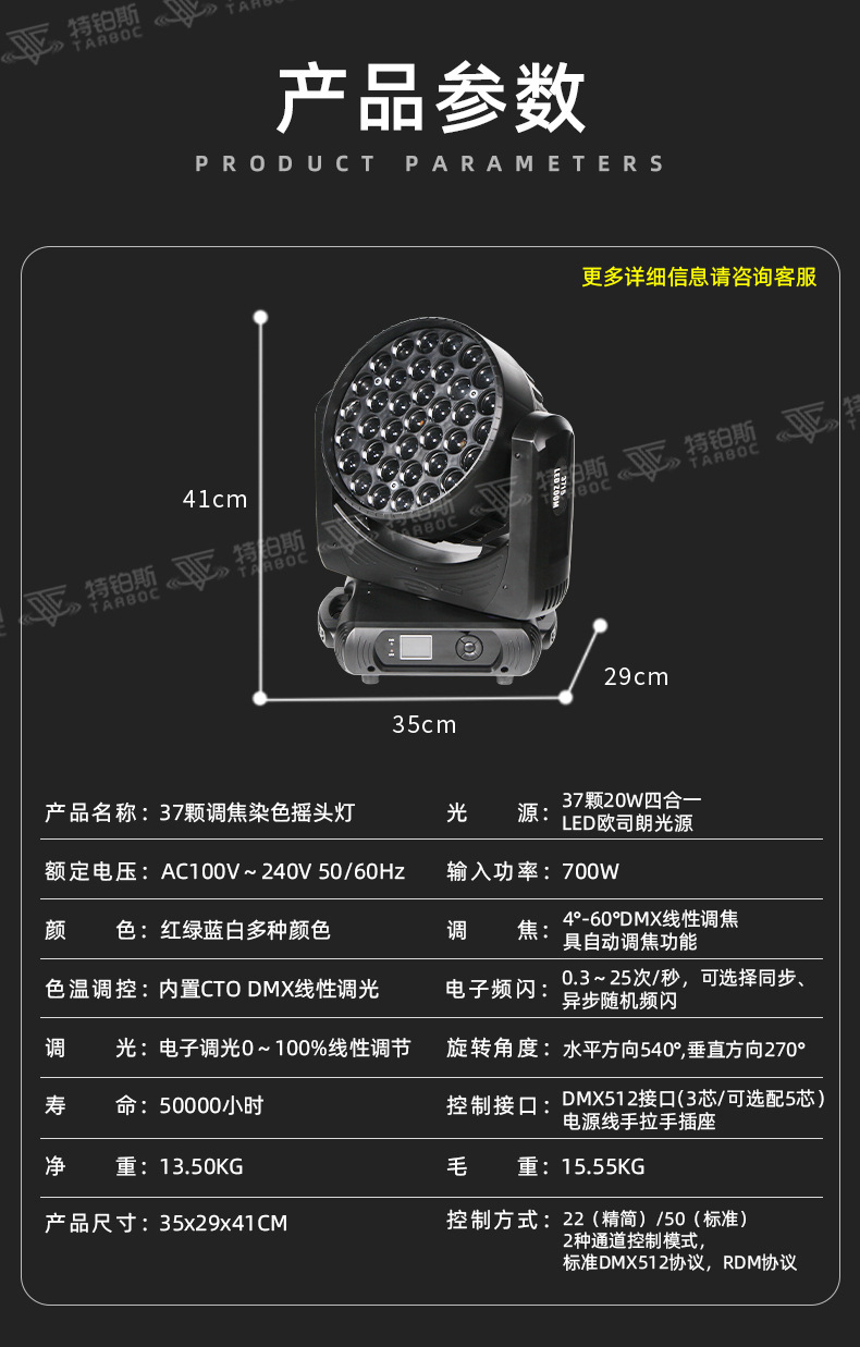 37 20W 초점 흔들리는 머리 염색 램프 웨딩 바 컴퓨터 램프 야외 경치 좋은 장소 램프 무대 조명 장비