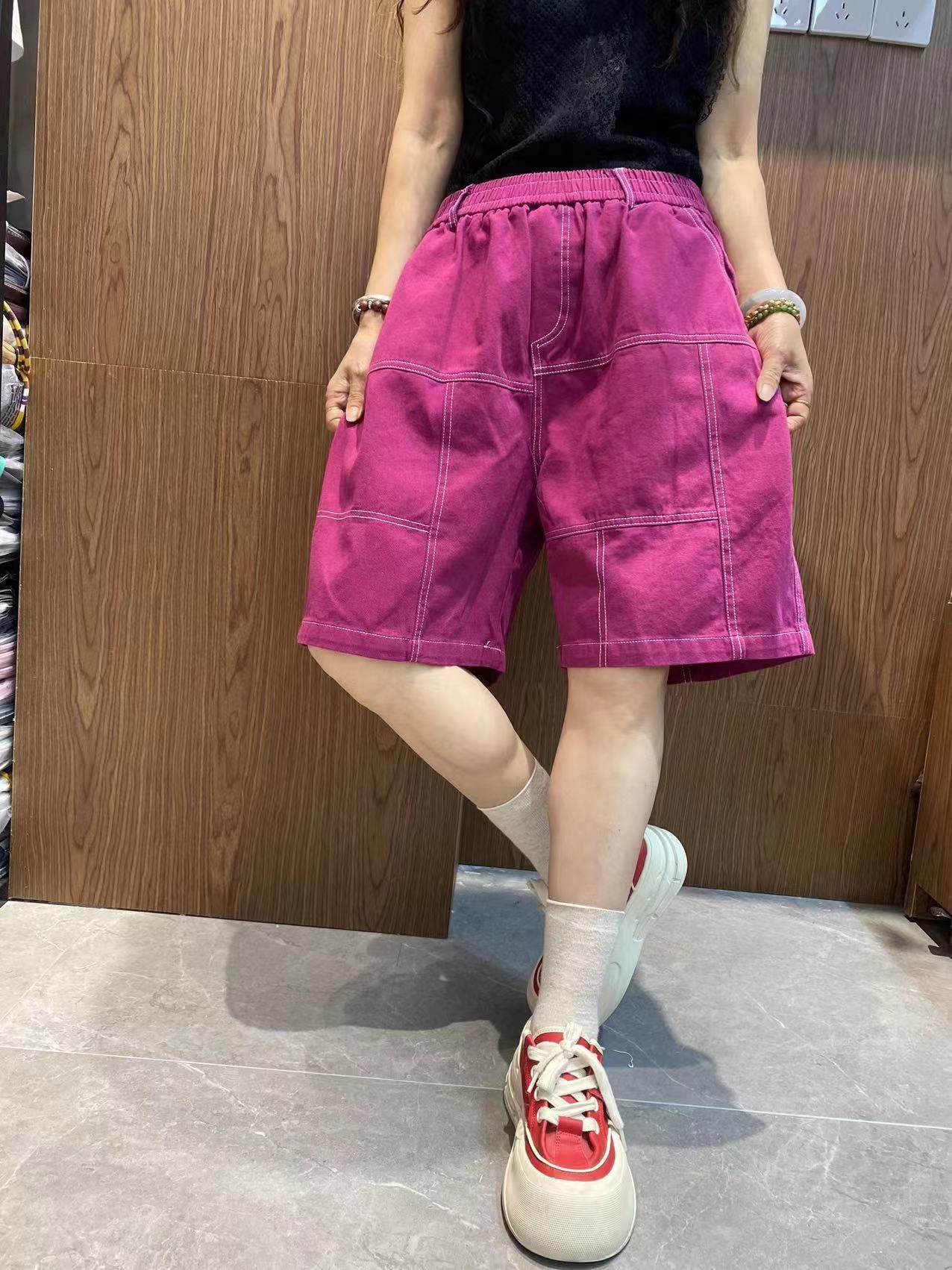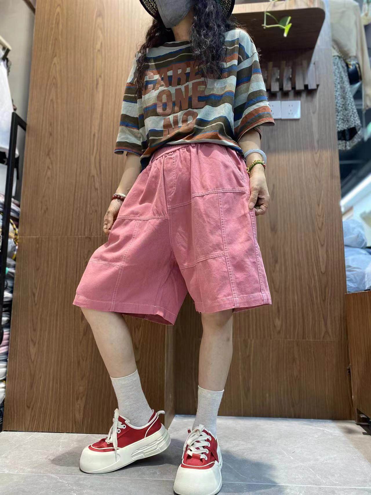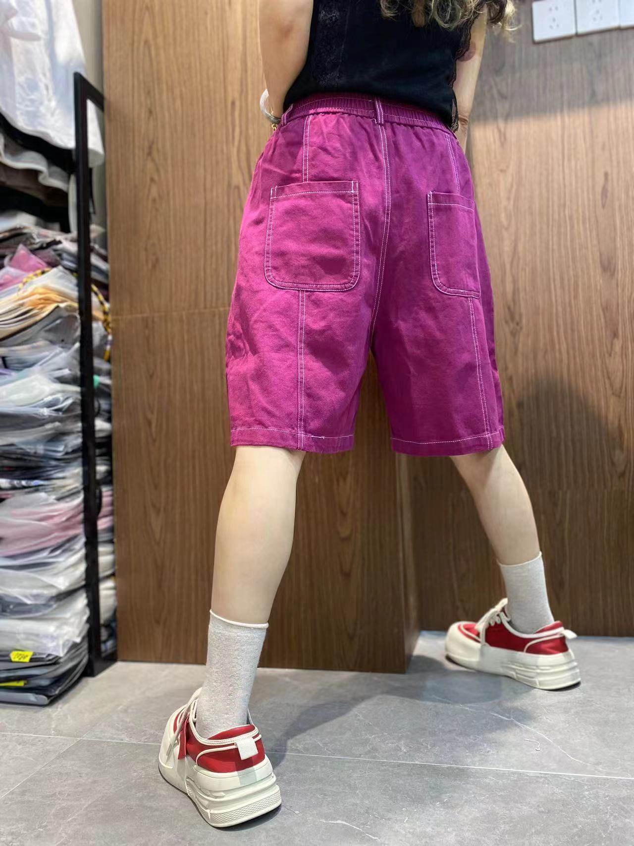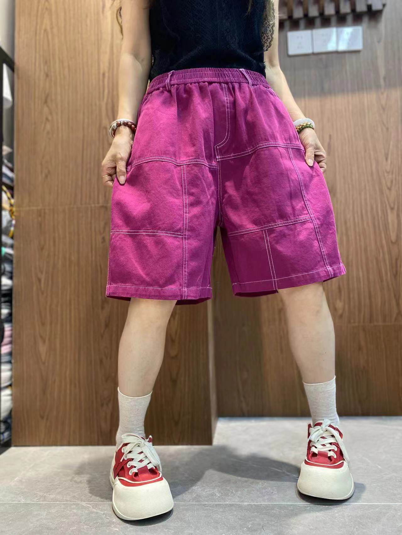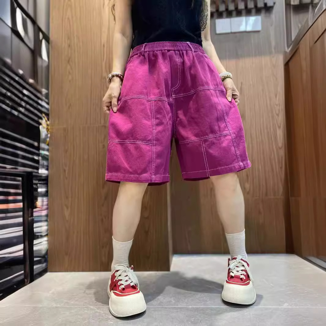 느슨한 대형 캐주얼 반바지 5 점 팬츠 유행 캔디 컬러 스티칭 완조 허리 스트레이트 반바지 여름 스타일스토어 가기