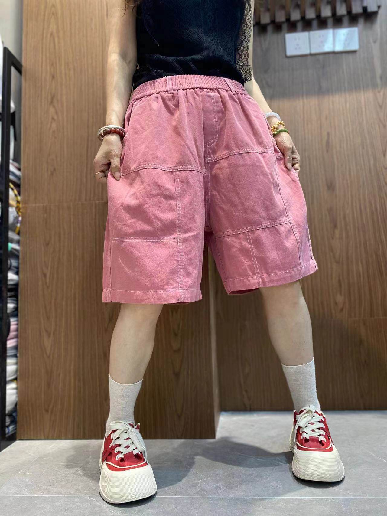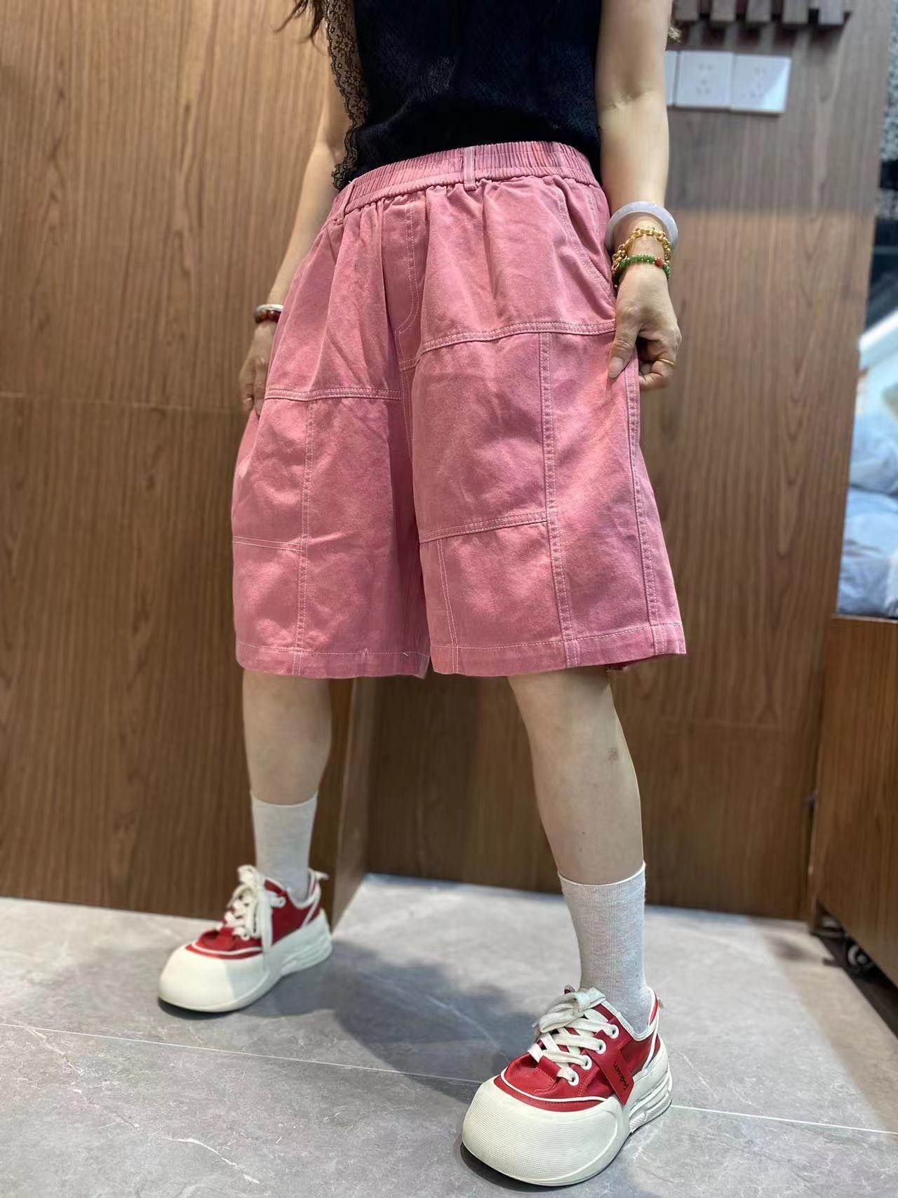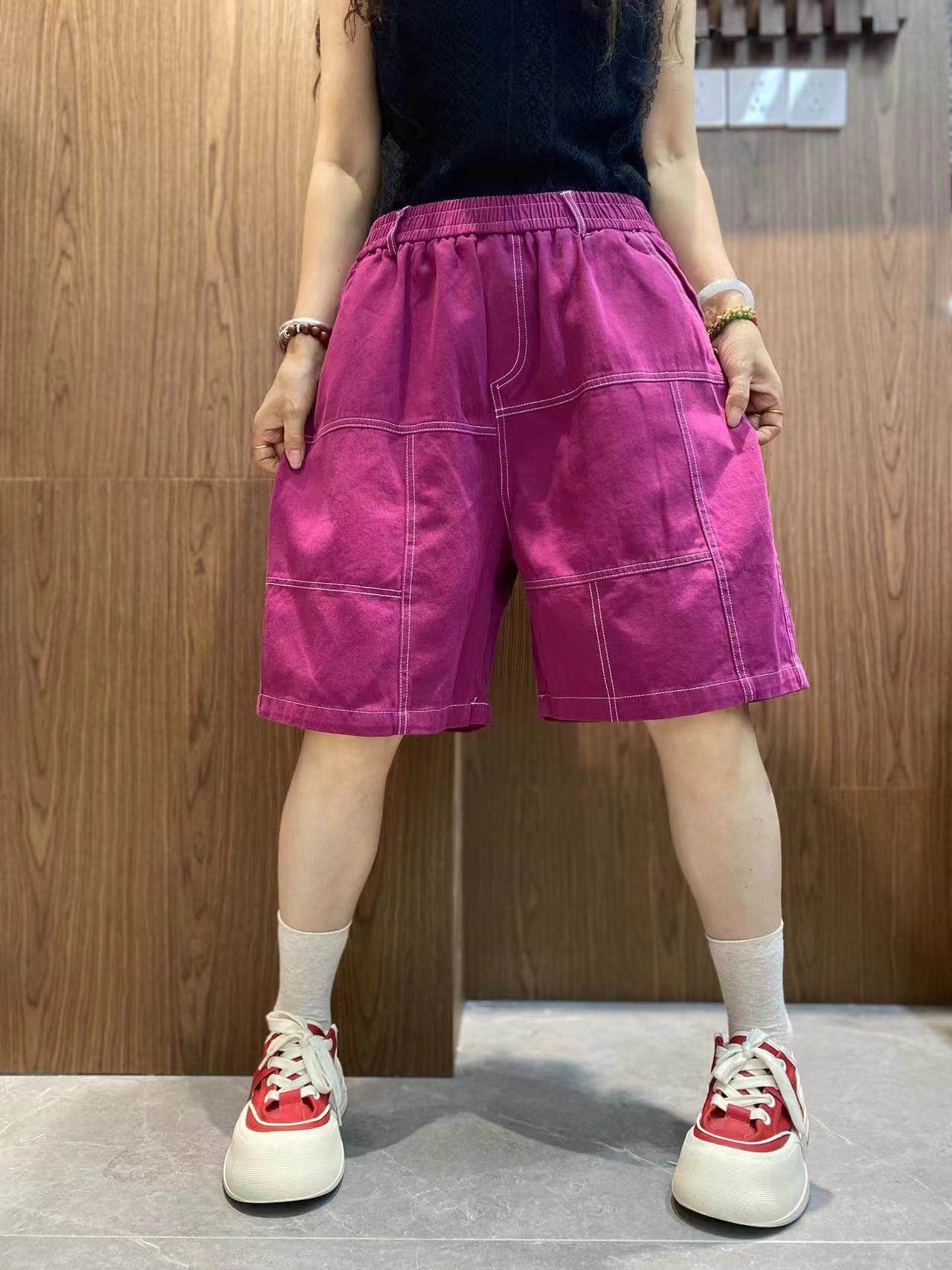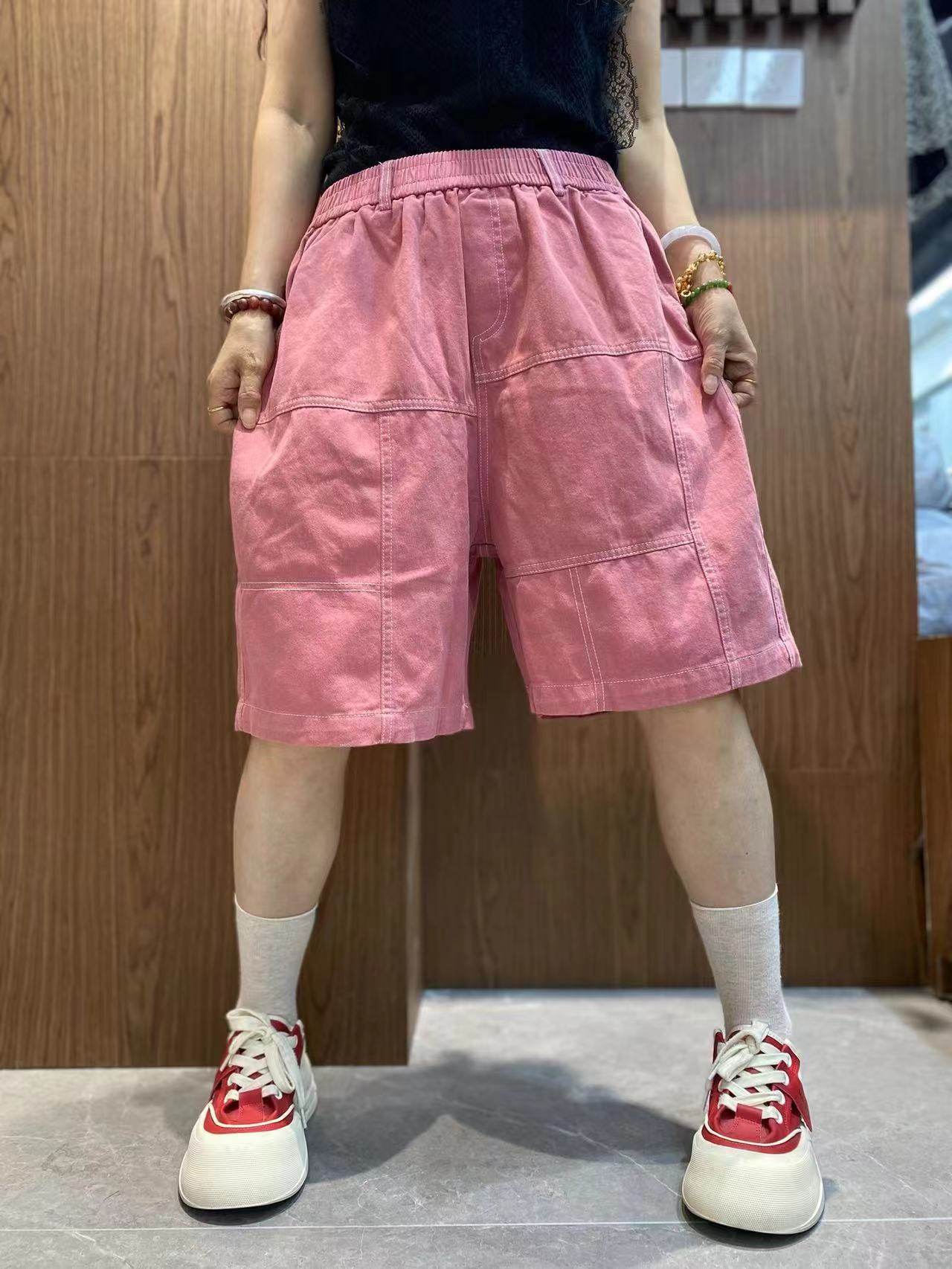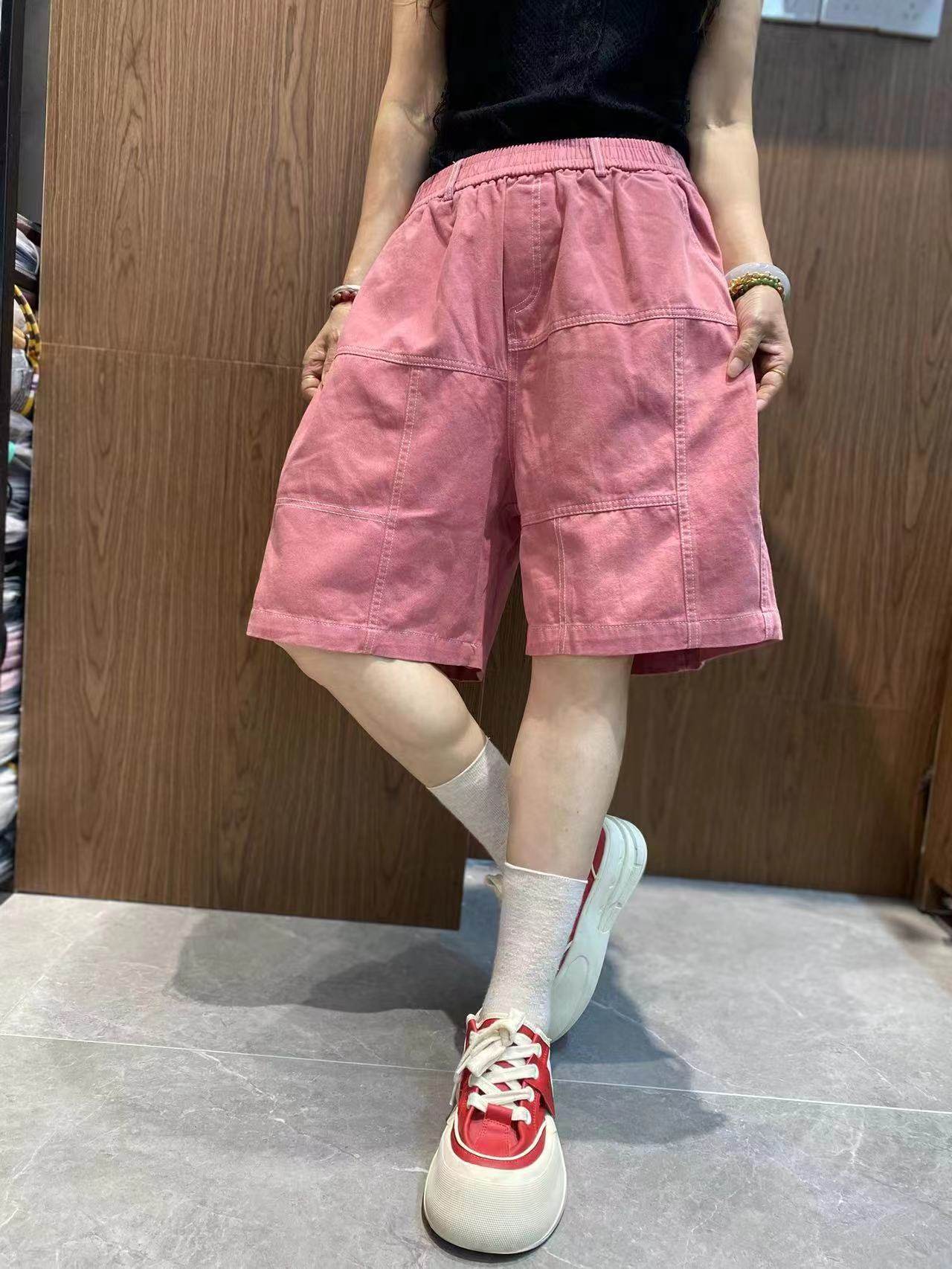 느슨한 대형 캐주얼 반바지 5 점 팬츠 유행 캔디 컬러 스티칭 완조 허리 스트레이트 반바지 여름 스타일스토어 가기