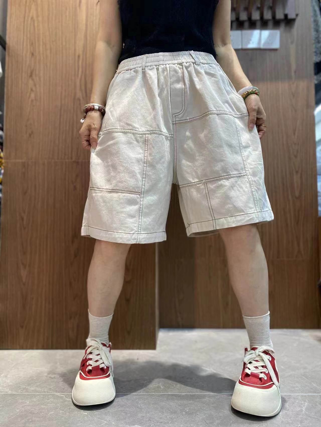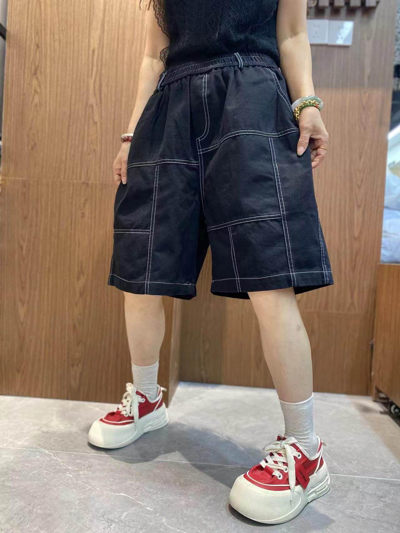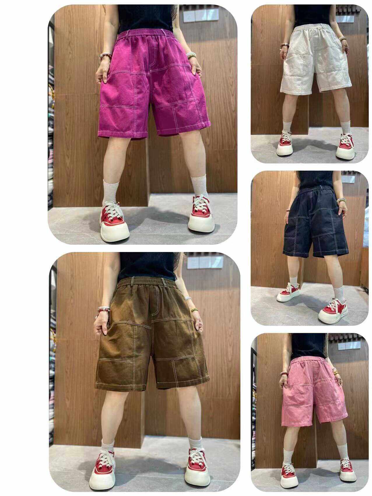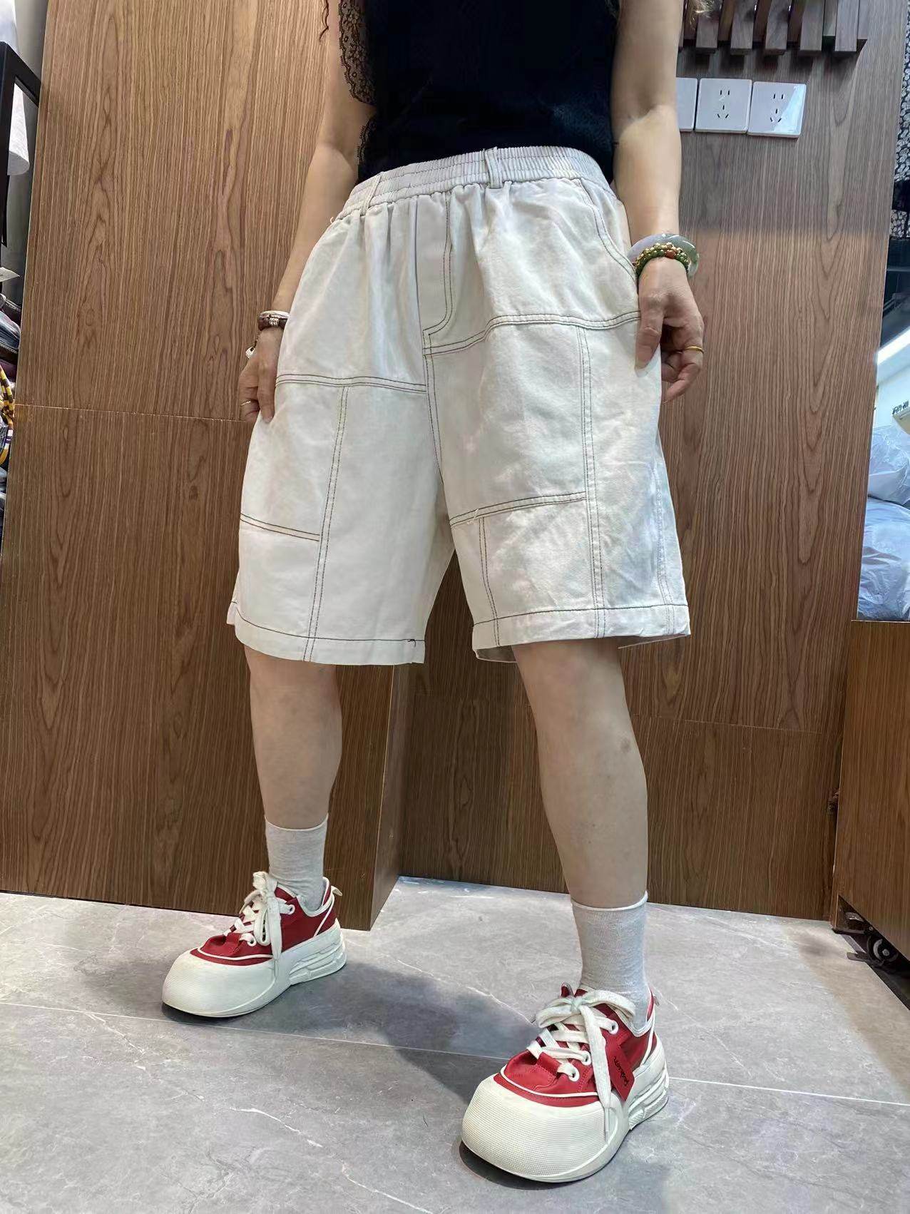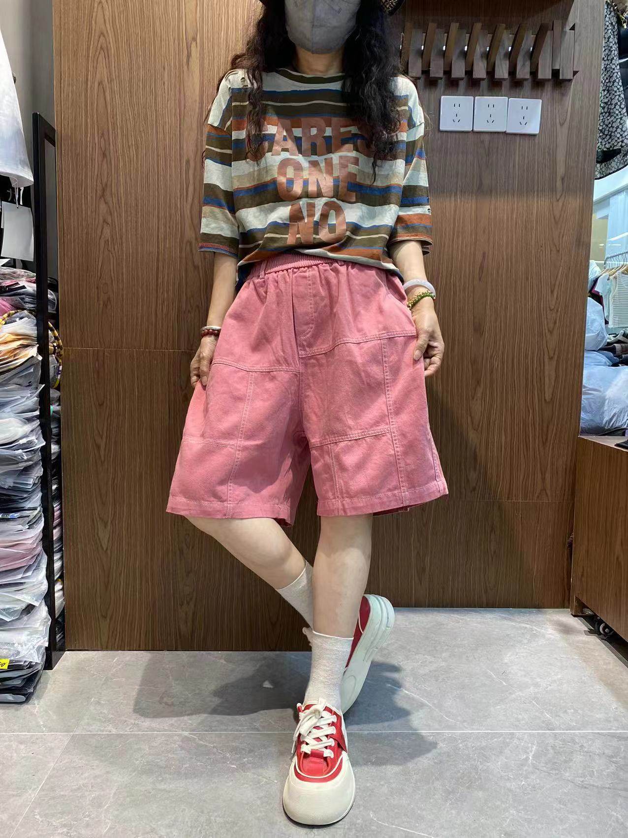 느슨한 대형 캐주얼 반바지 5 점 팬츠 유행 캔디 컬러 스티칭 완조 허리 스트레이트 반바지 여름 스타일스토어 가기