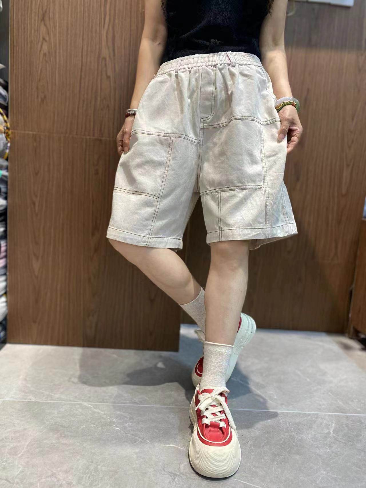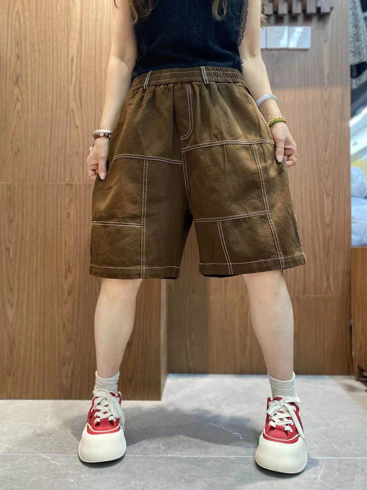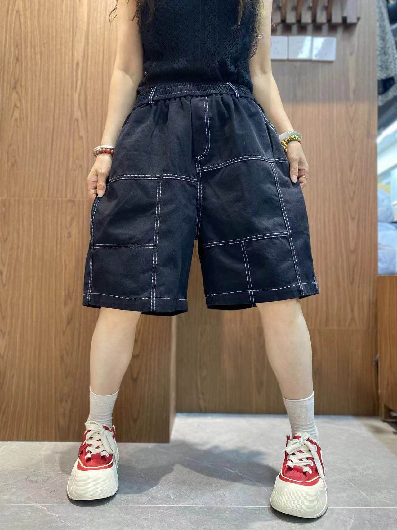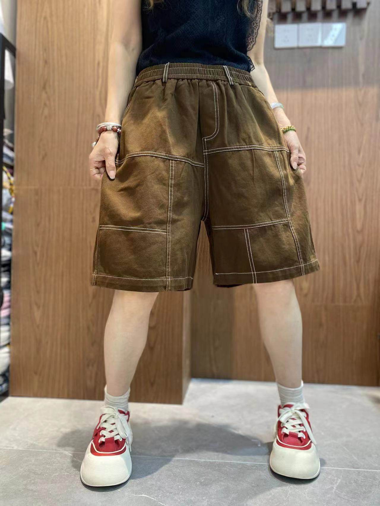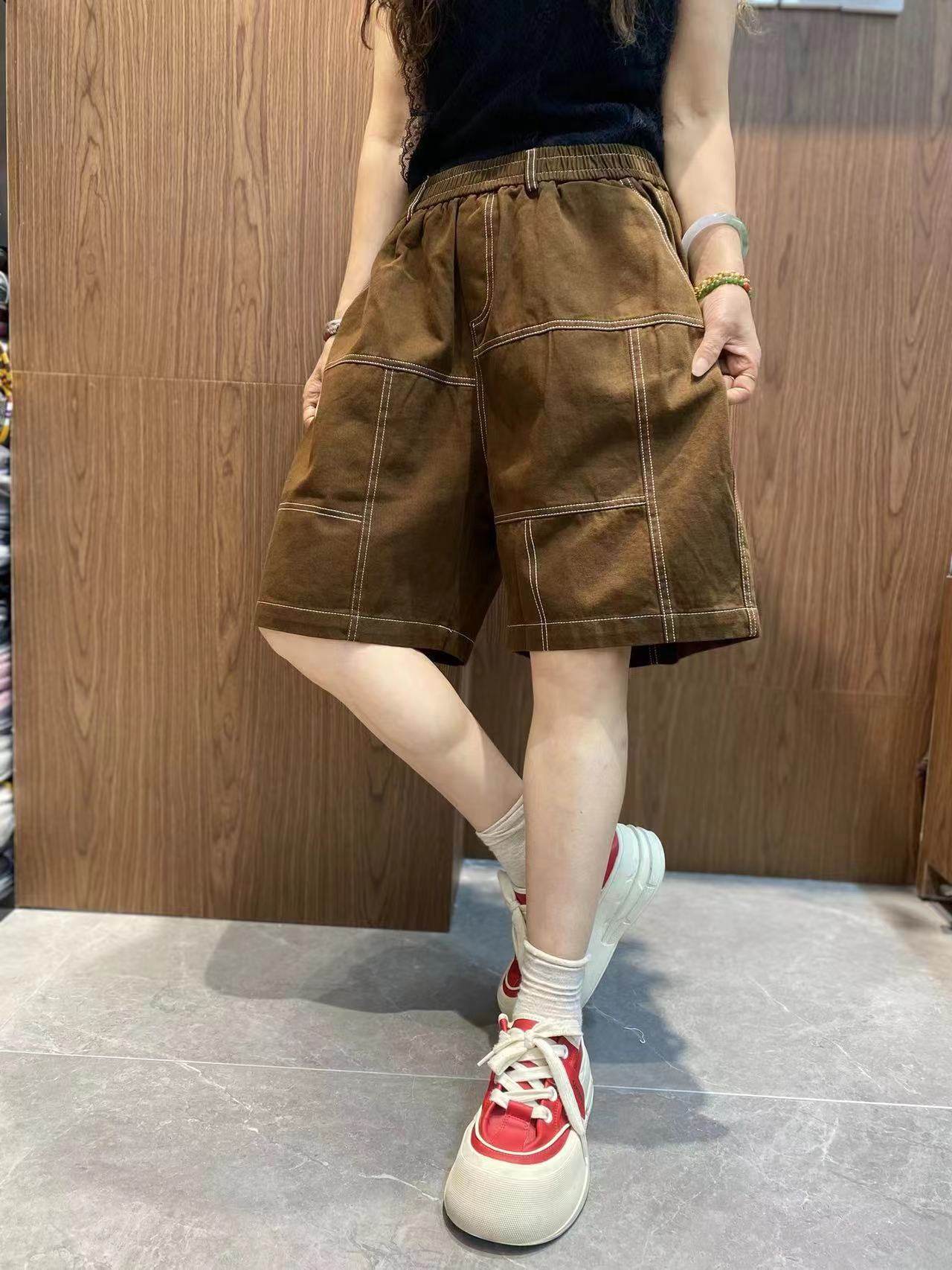 느슨한 대형 캐주얼 반바지 5 점 팬츠 유행 캔디 컬러 스티칭 완조 허리 스트레이트 반바지 여름 스타일스토어 가기