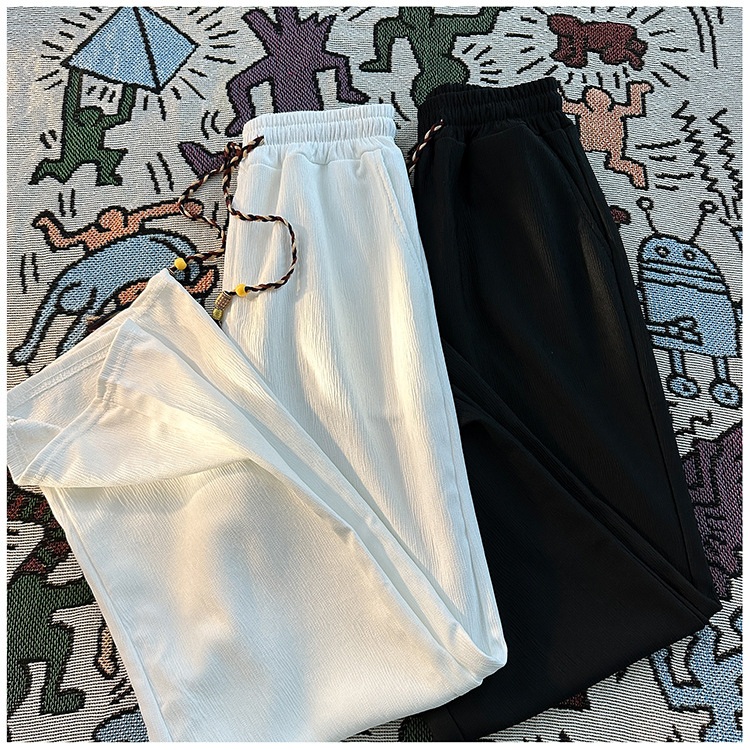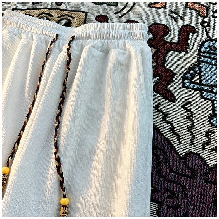 새로운 중국 스타일 국가 스타일 화이트 아이스 실크 바지 남성 여름 얇은 쿨 일본 스타일 디자인 고급 와이드 다리 바지